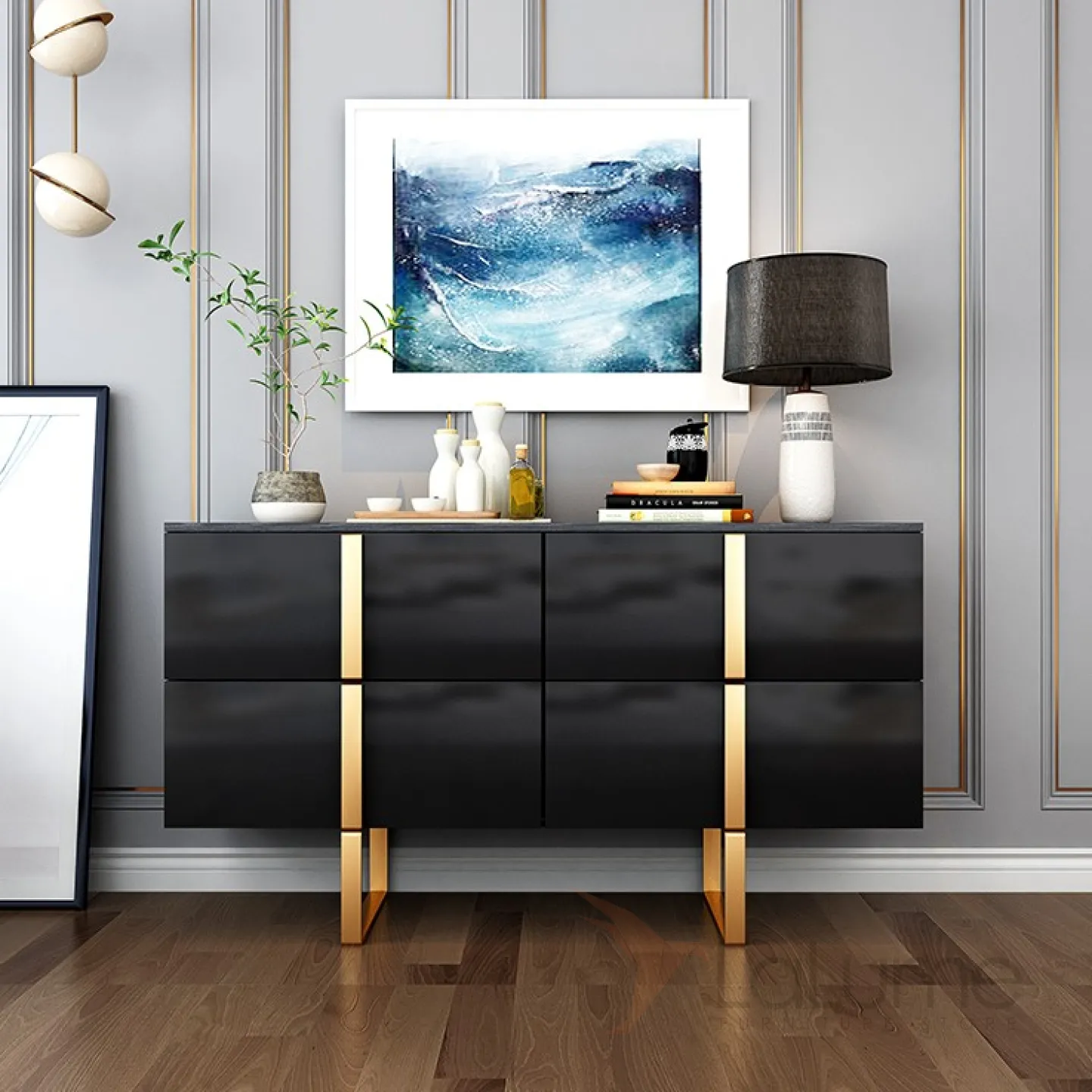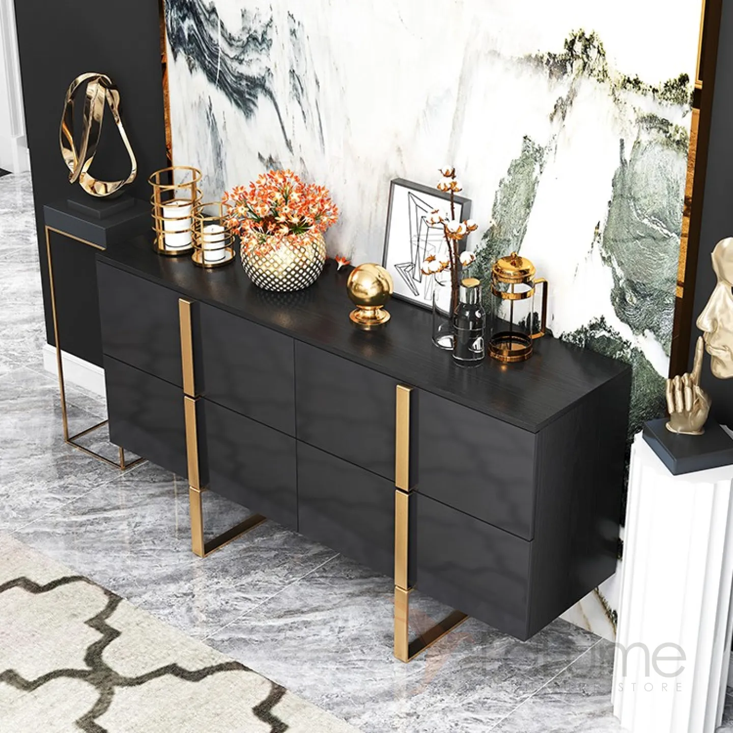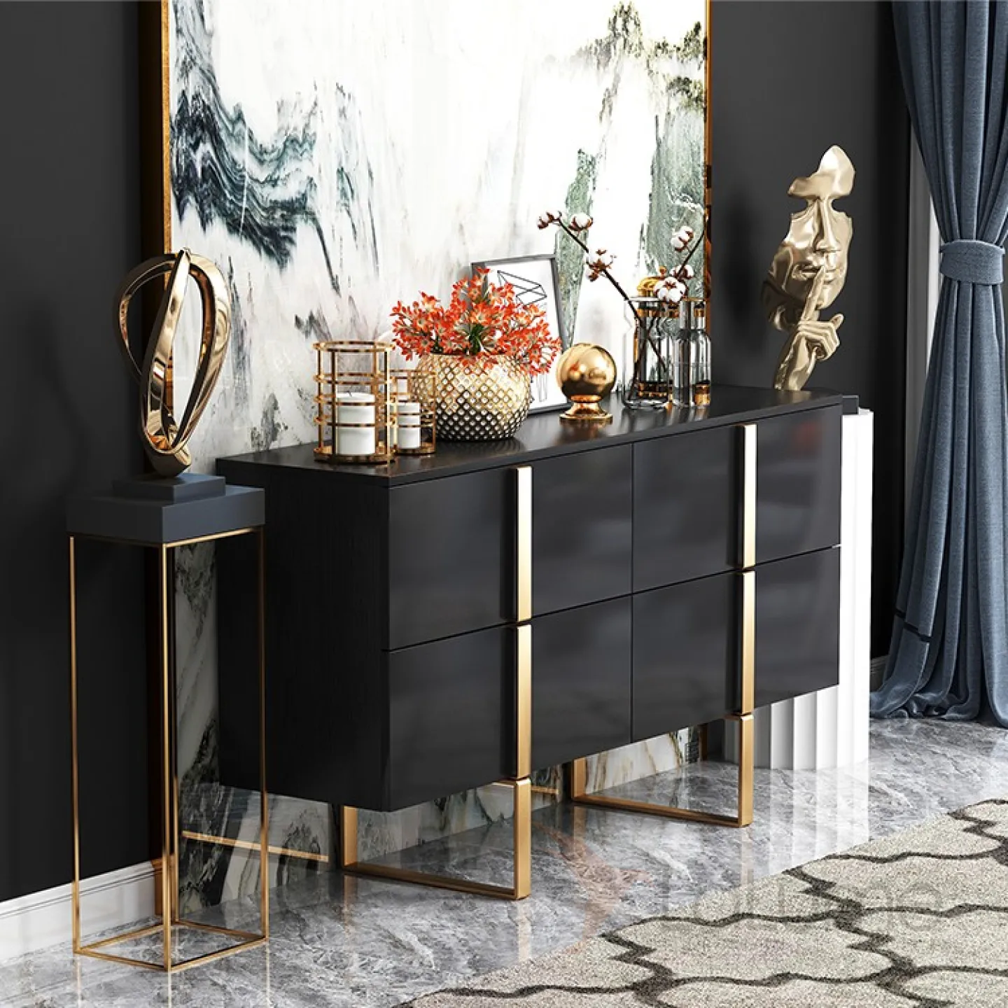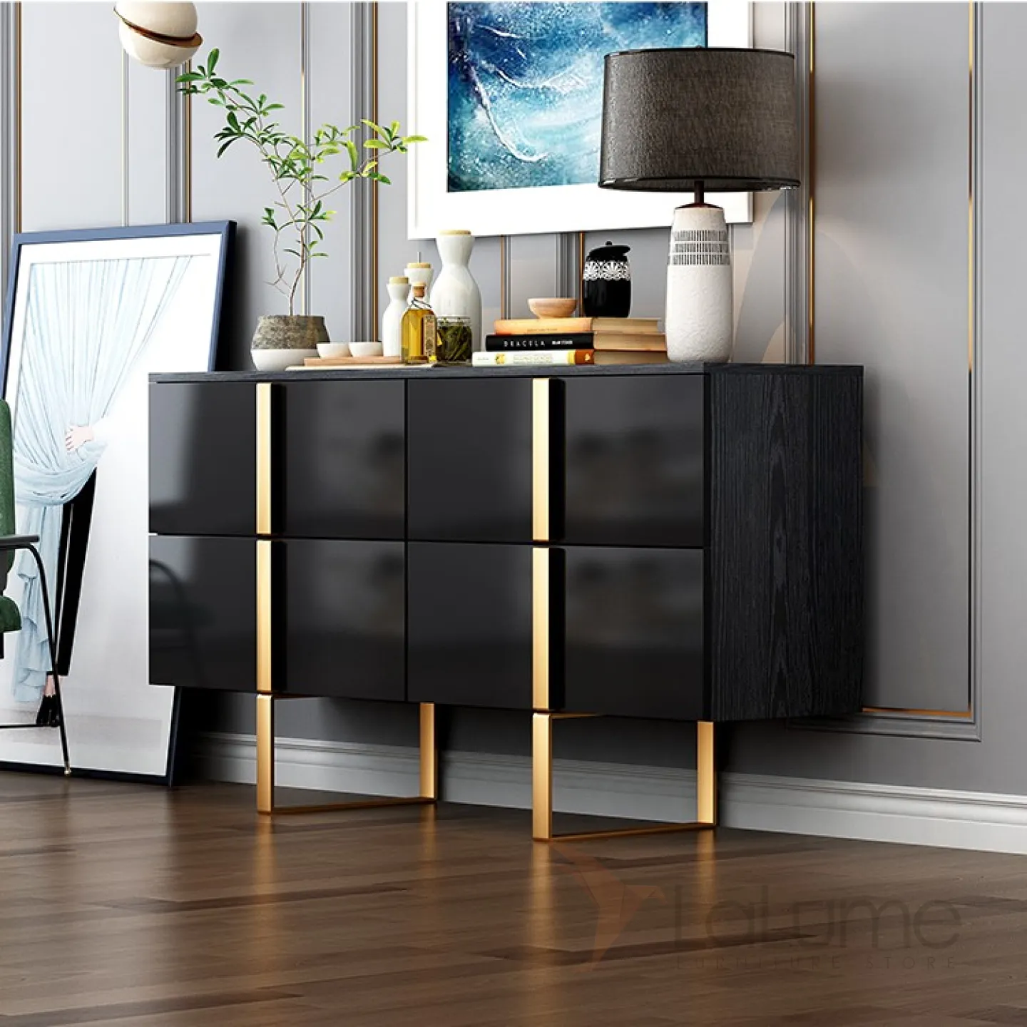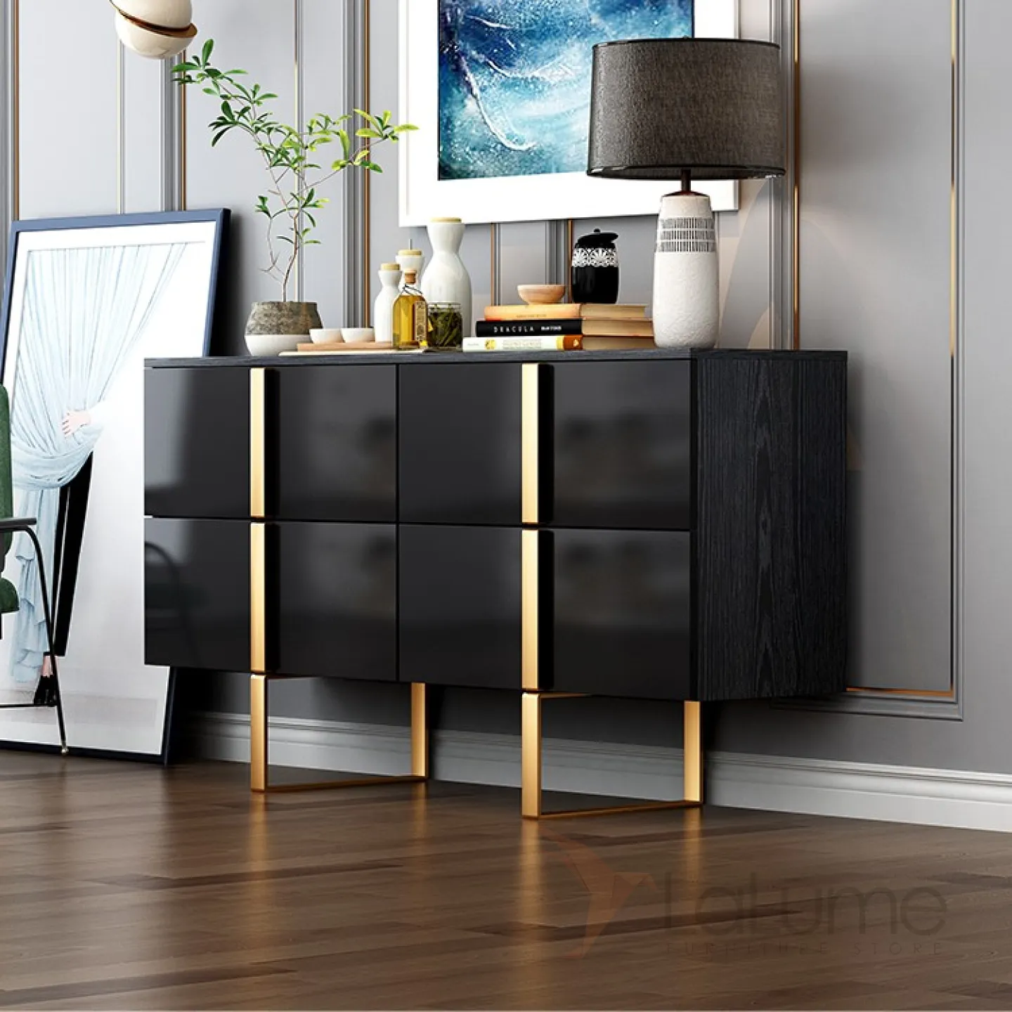 Роскошный чёрный комод для гостиной LaLume MB20749-23