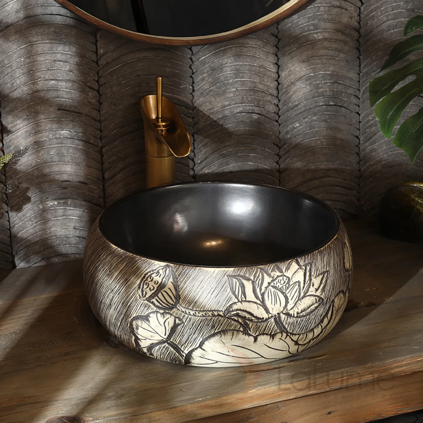Керамический умывальник с узором для ванной комнаты LaLume MB20762-23