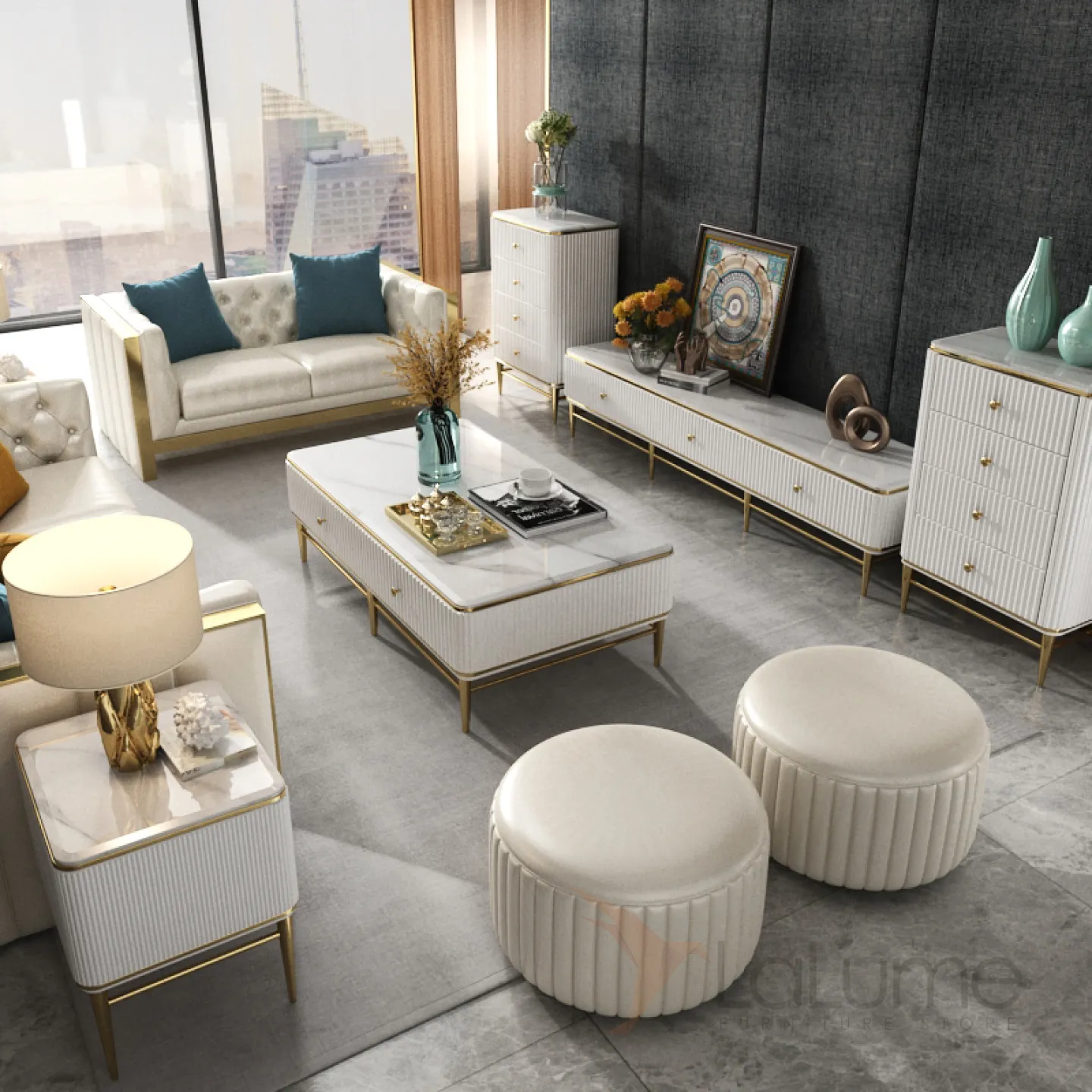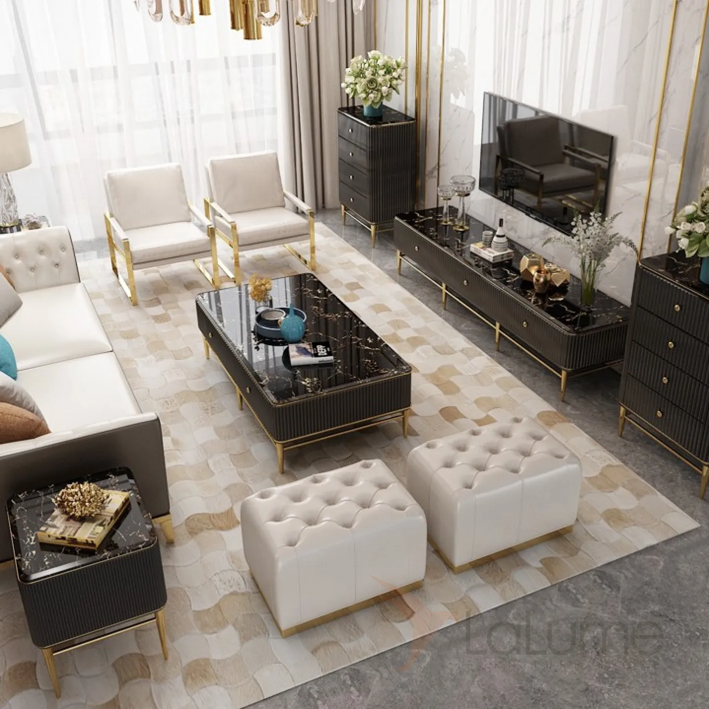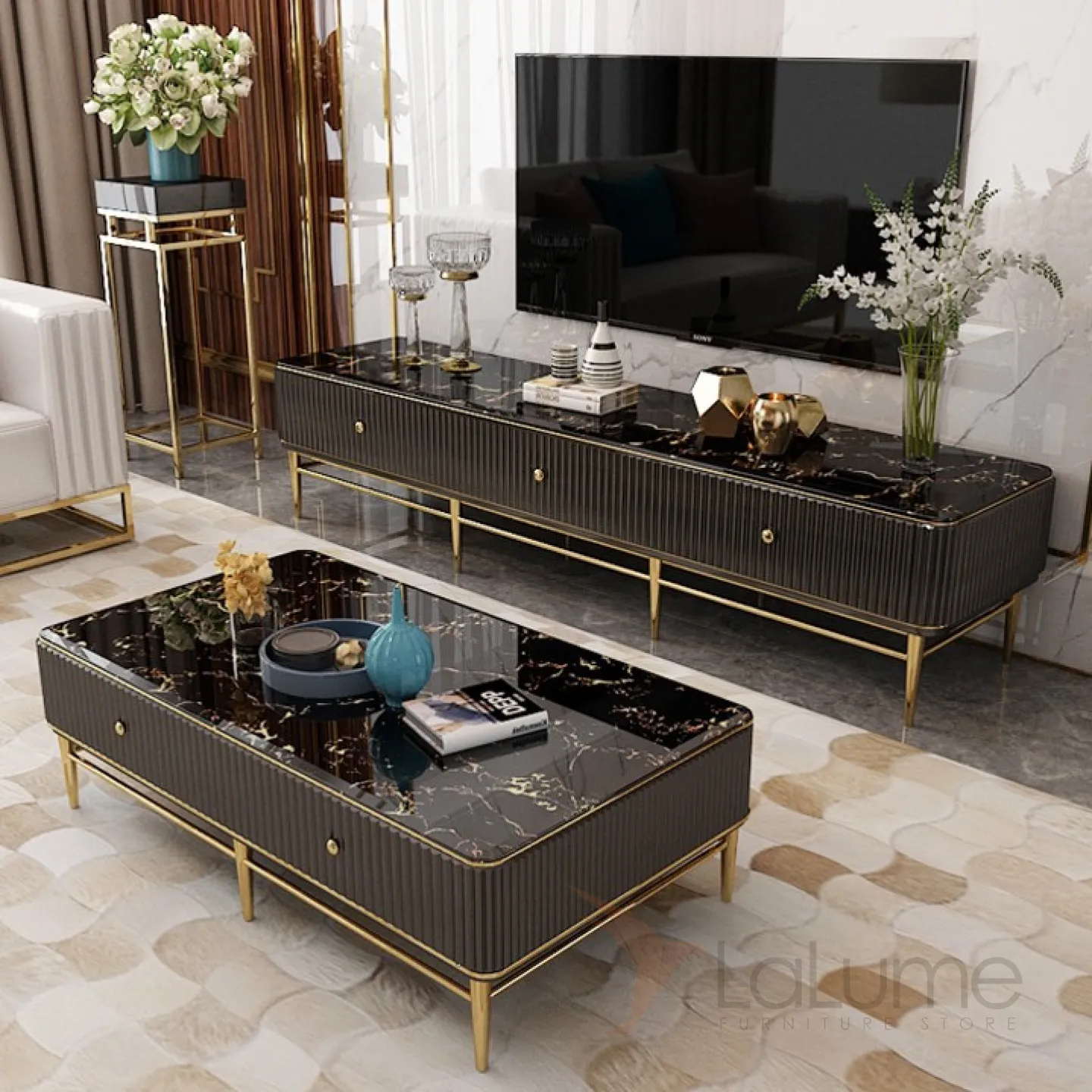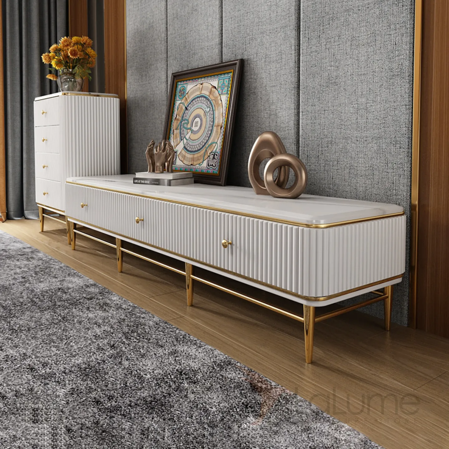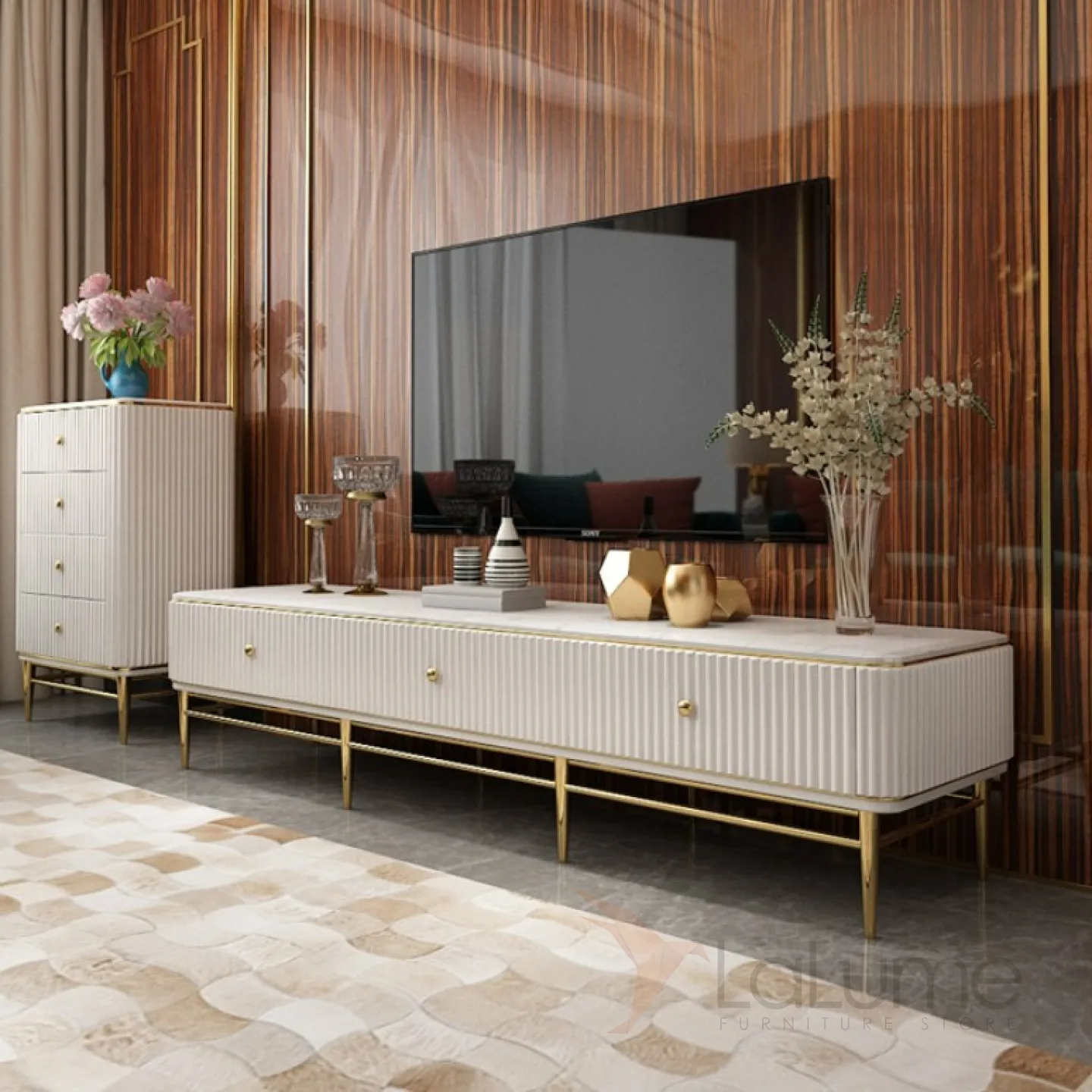 Мраморный комод под ТВ для гостиной LaLume MB20972-23