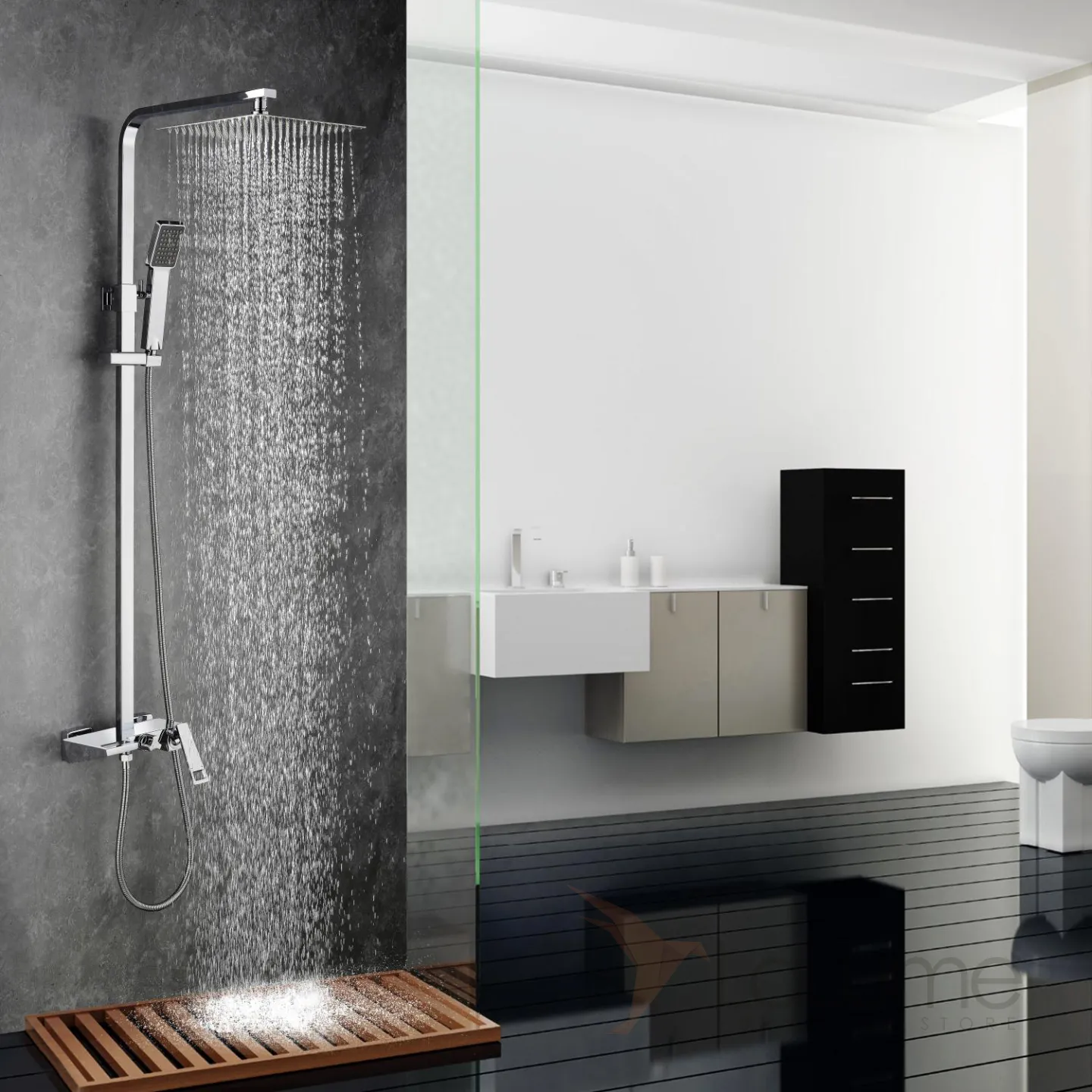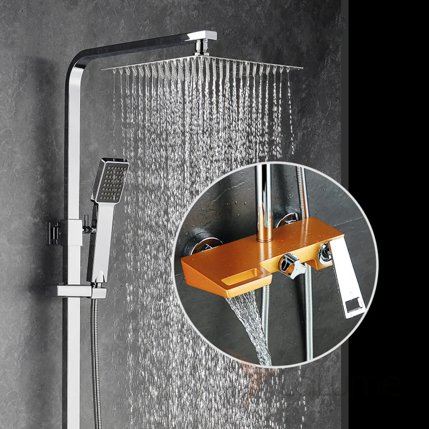 Водопадный латунный смеситель с тропическим душем для ванной в Современном стиле LaLume MB21143-23
