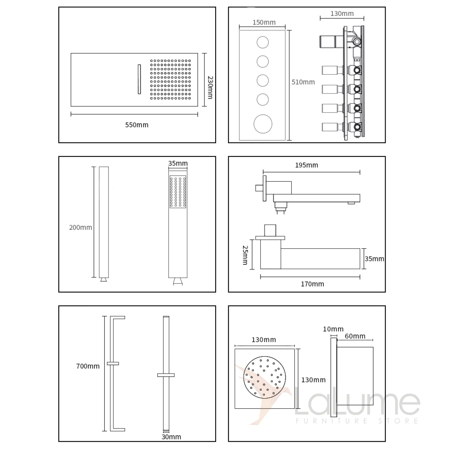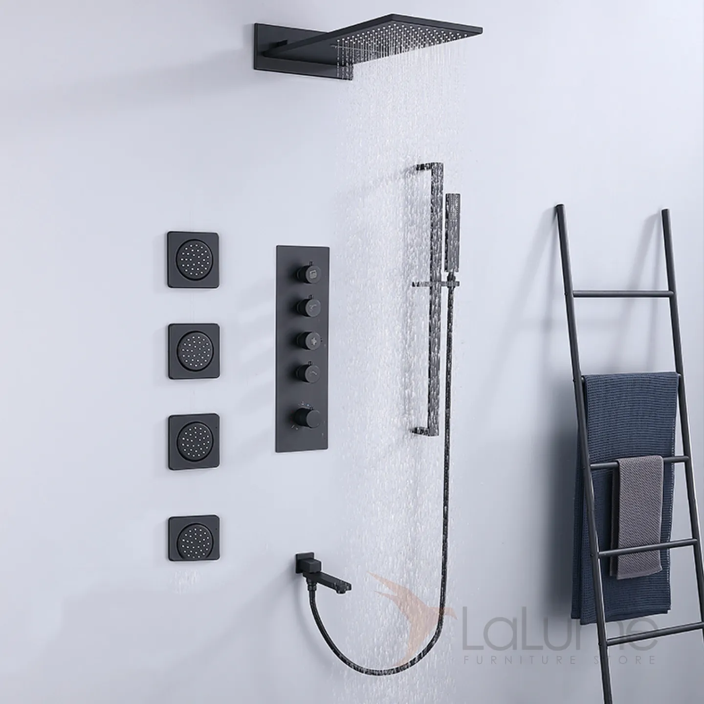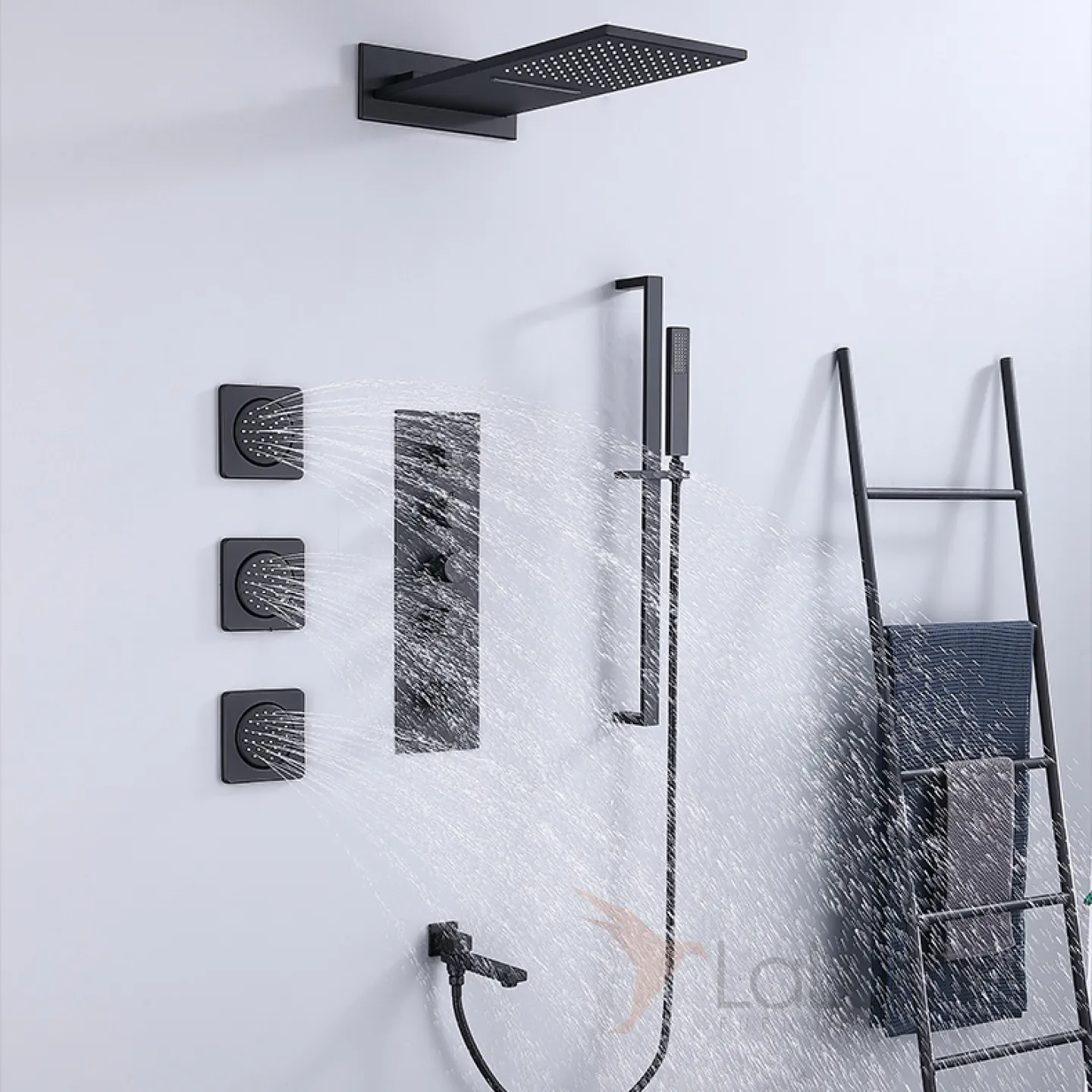 Изящный латунный смеситель с тропическим душем для ванной в Современном стиле LaLume MB21175-23