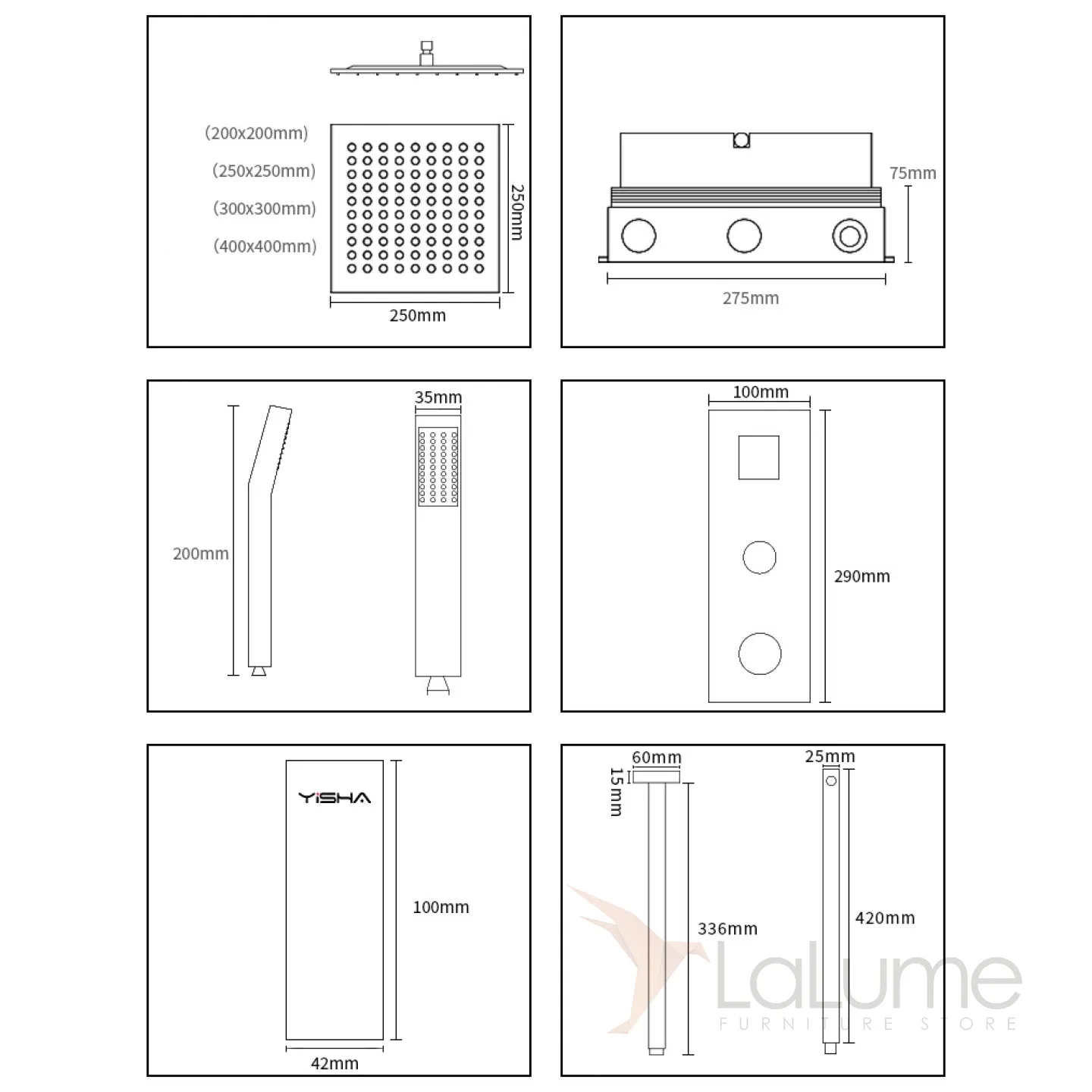 Минималистичный латунный смеситель с тропическим душем для ванной в Современном стиле LaLume MB21176-23