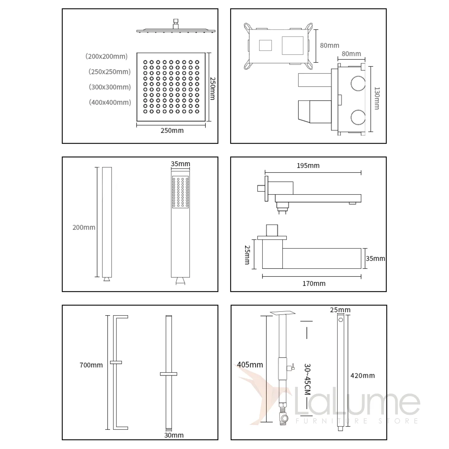 Роскошный латунный смеситель с тропическим душем для ванной в Современном стиле LaLume MB21177-23
