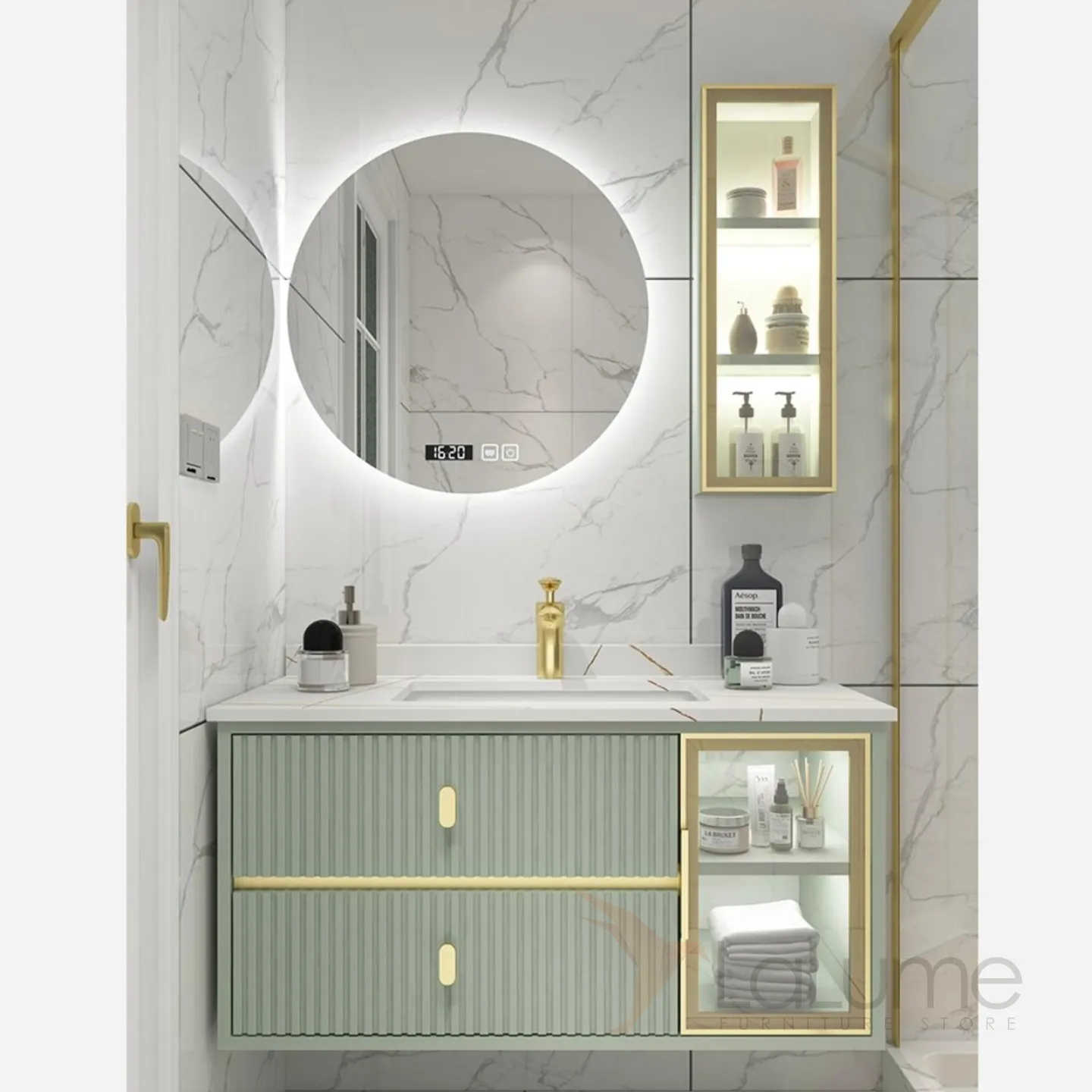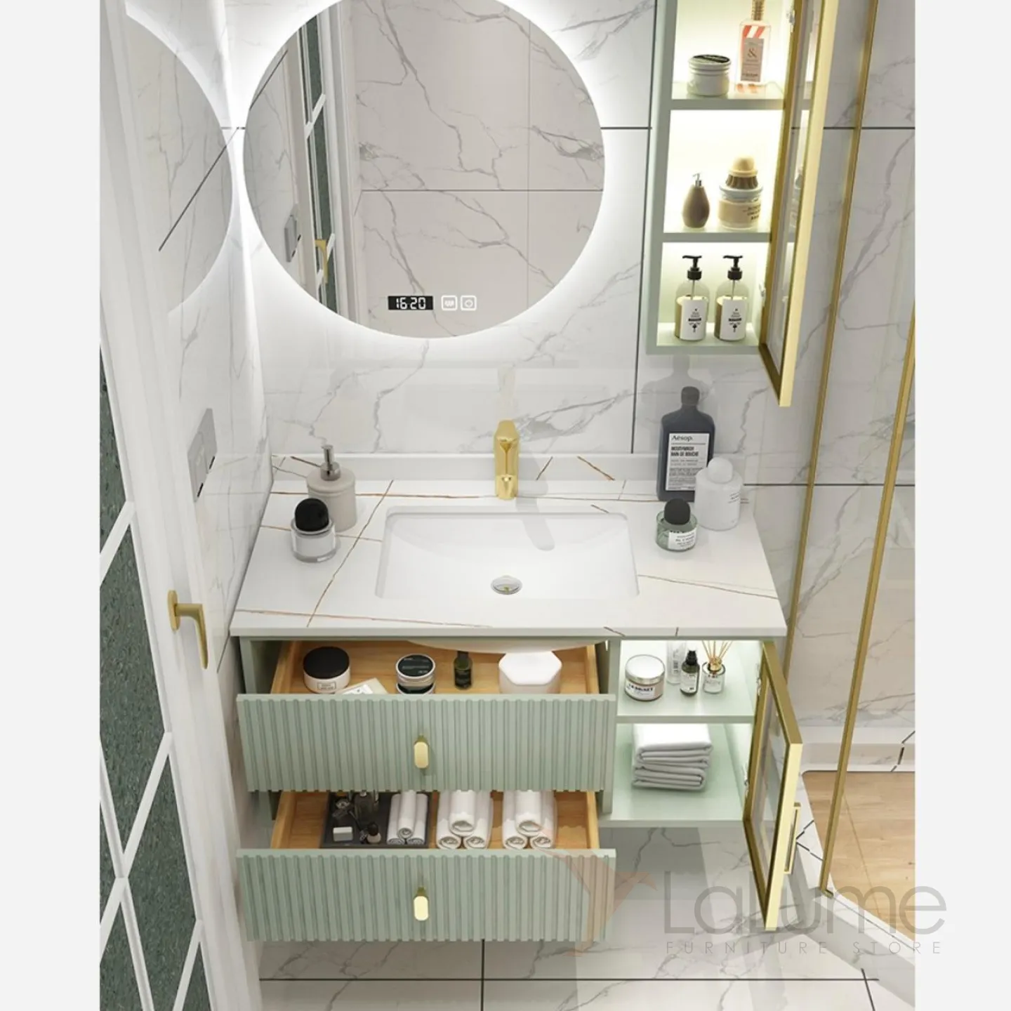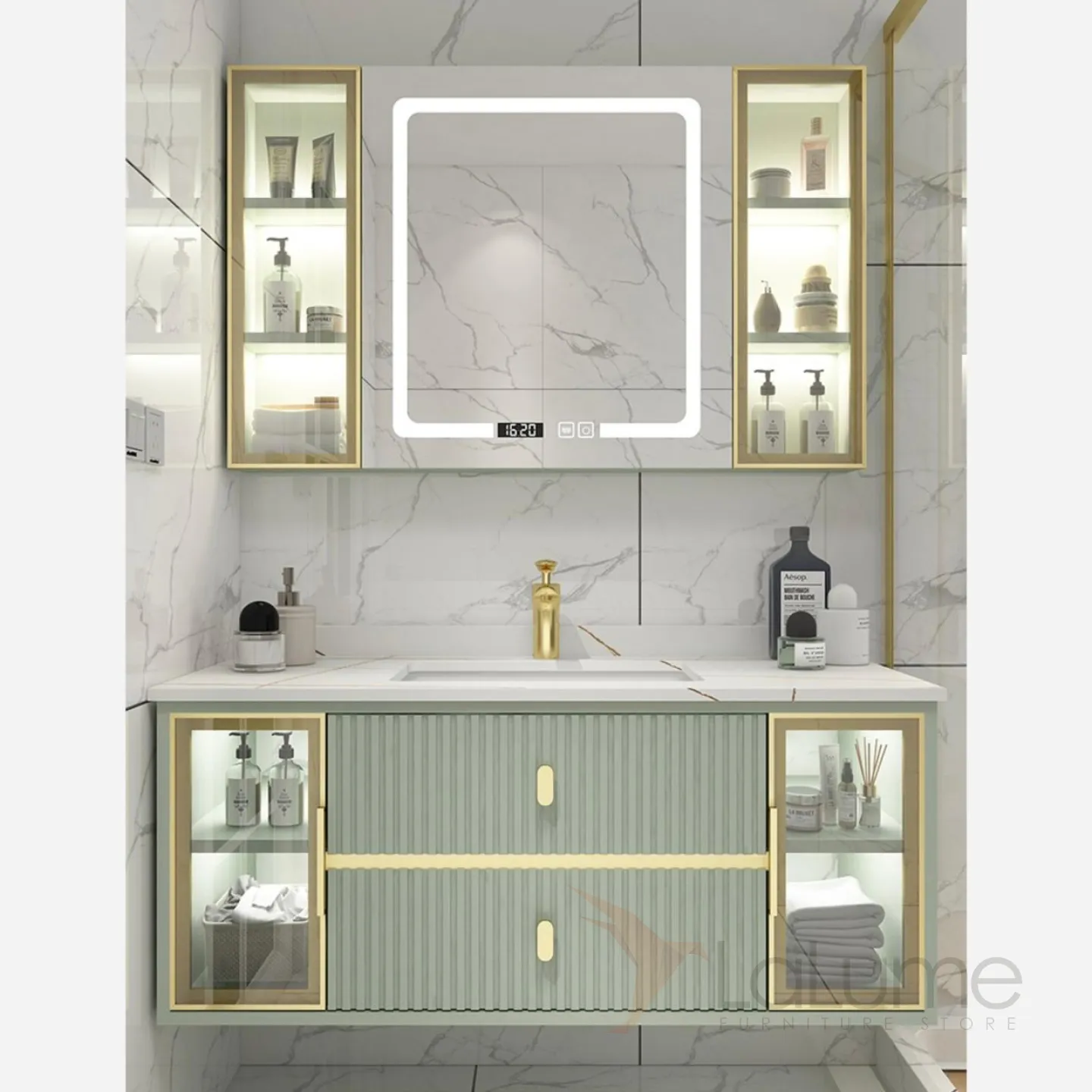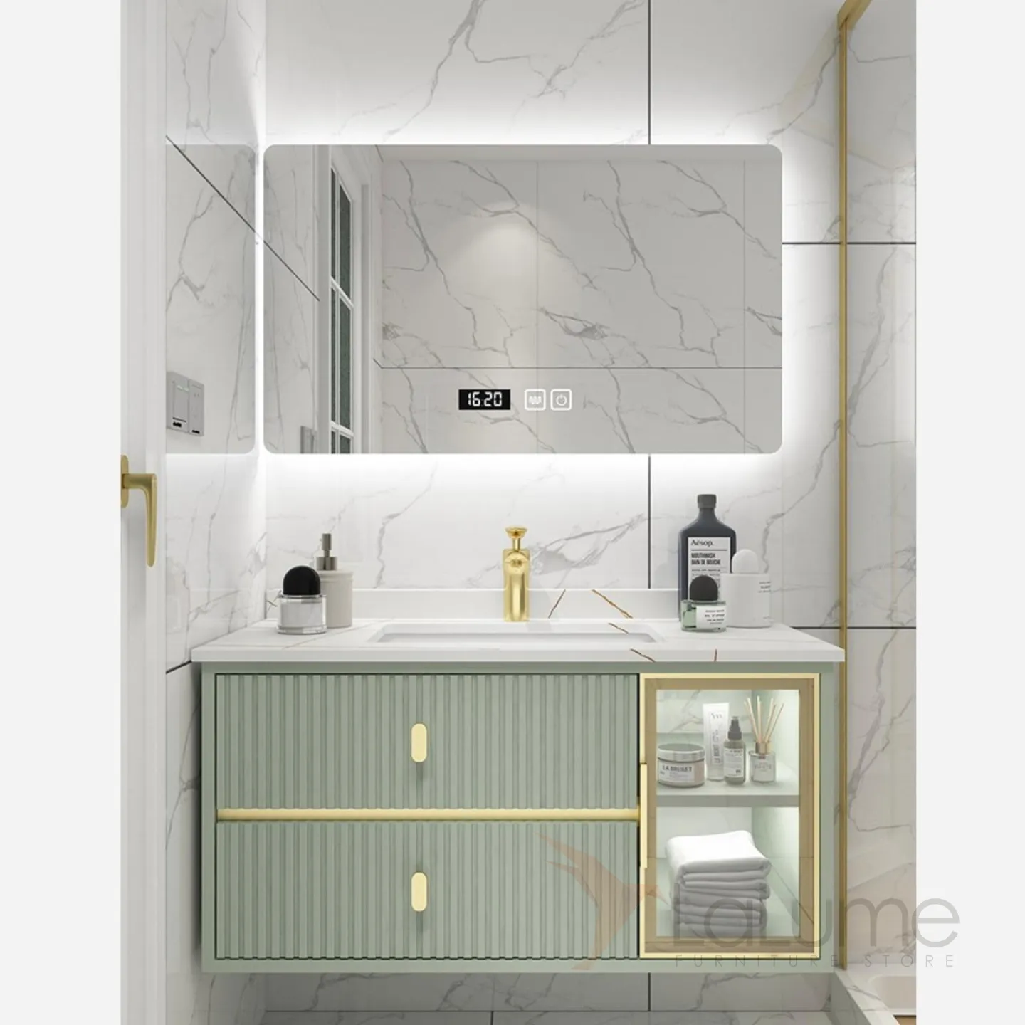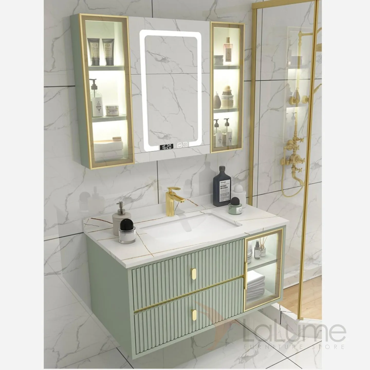 Мебель для ванной LaLume AR22169-23 из экологически чистой влагостойкой древесины. Зонированное хранилище, сенсорное зеркало с функцией от запотевания.