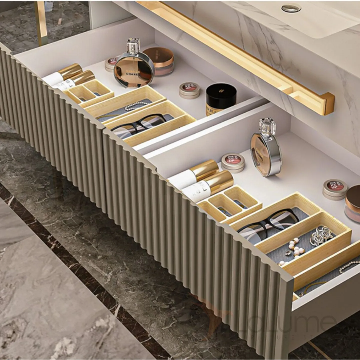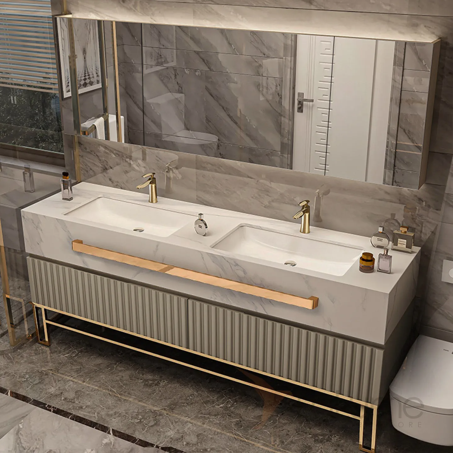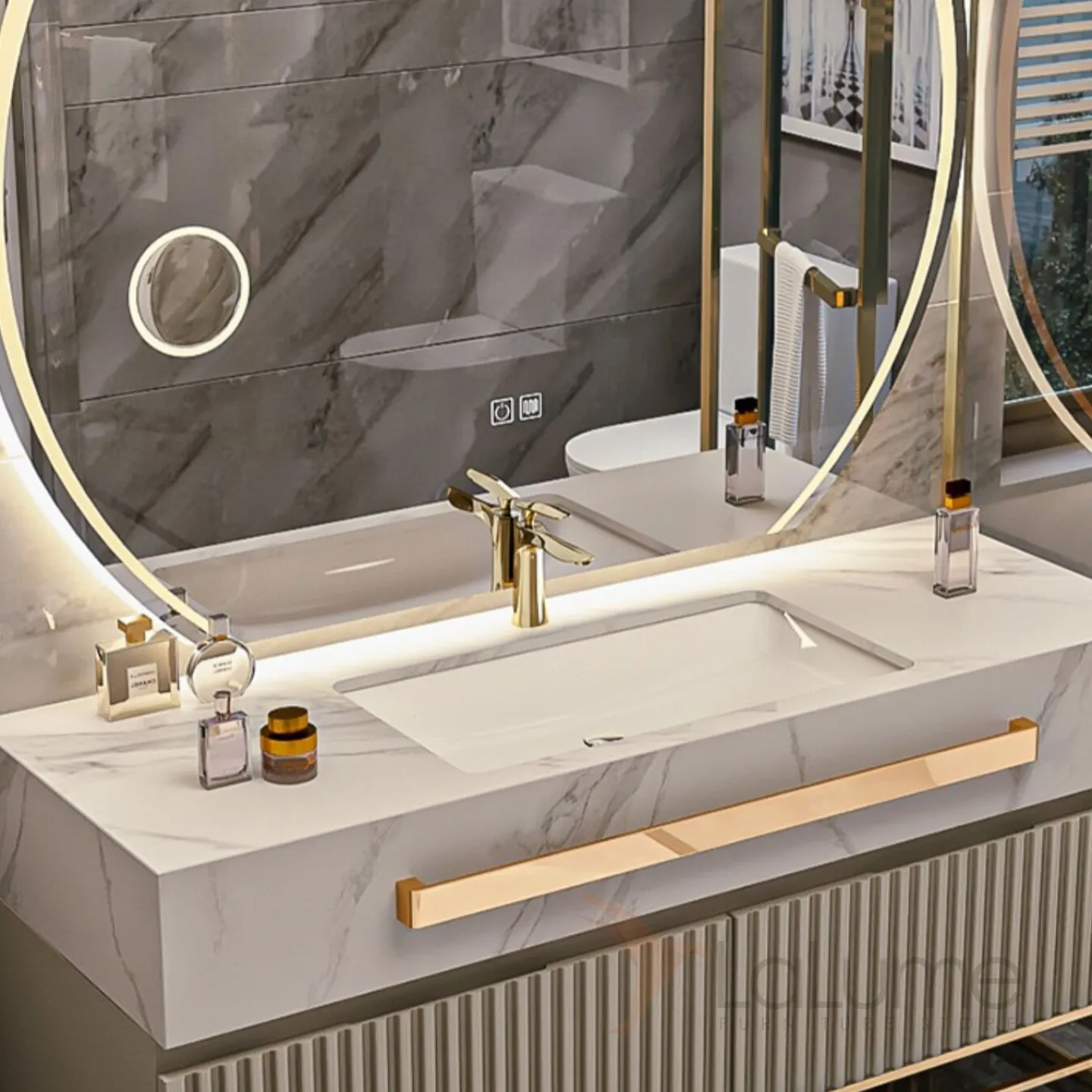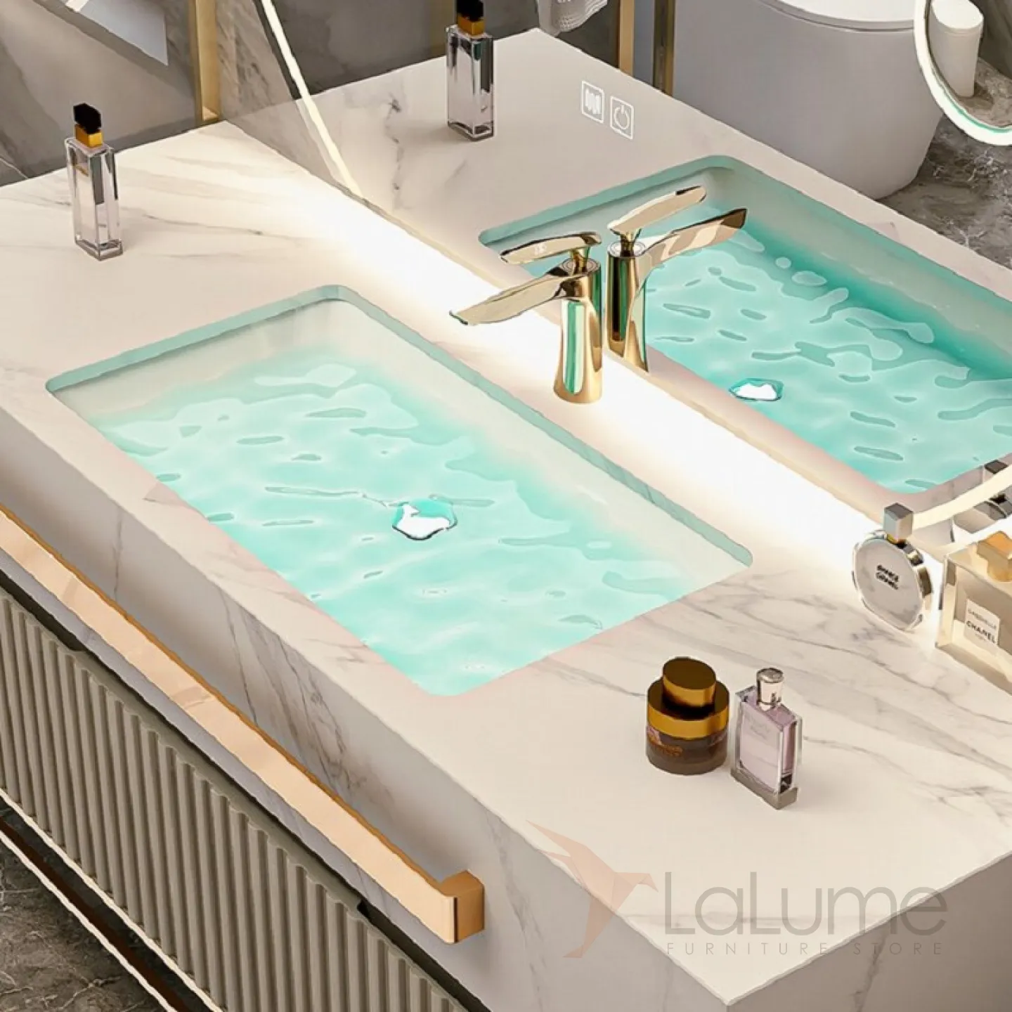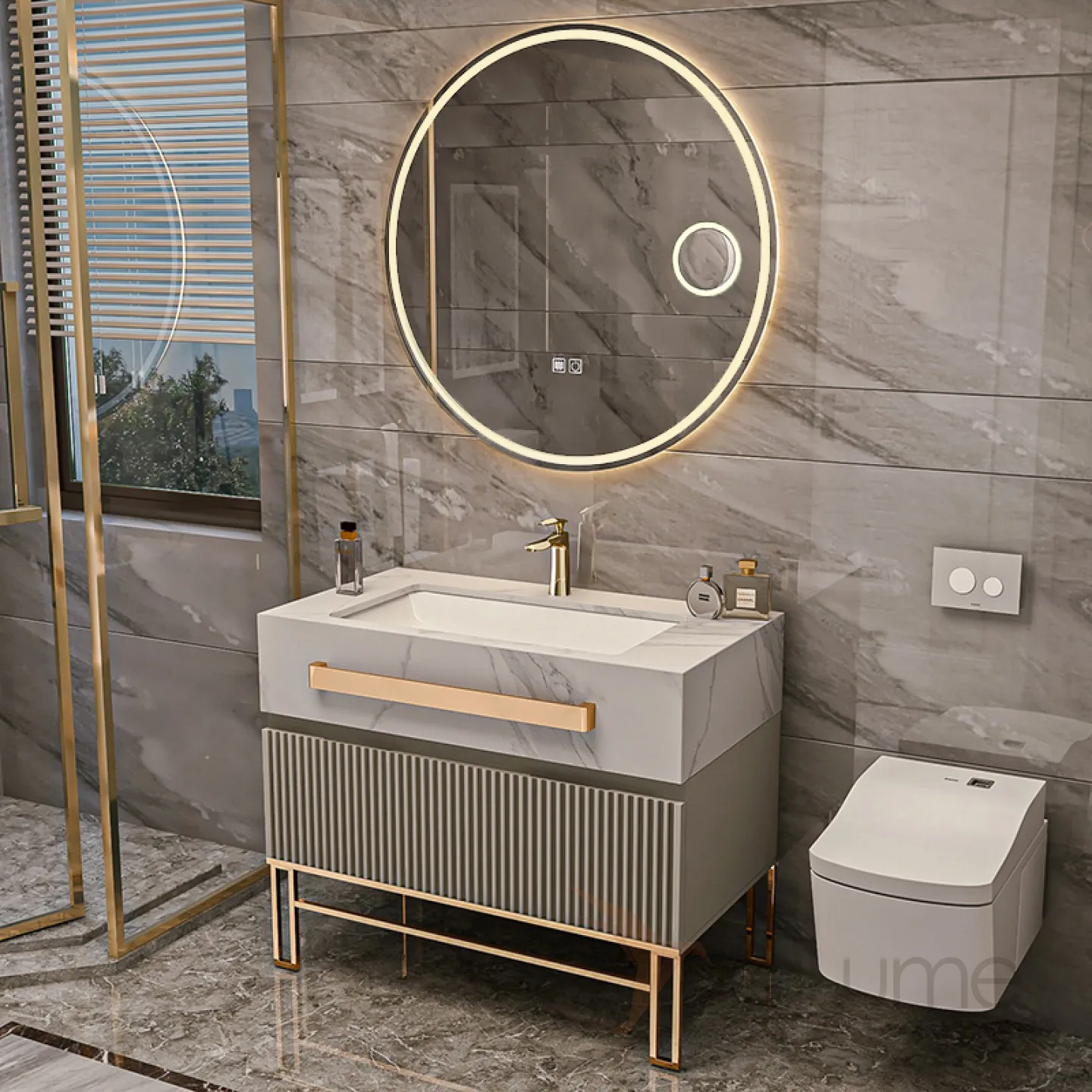 Мебель для ванной LaLume AR22181-23 из экологически чистой влагостойкой древесины. Зонированное хранилище, сенсорное зеркало с функцией от запотевания.