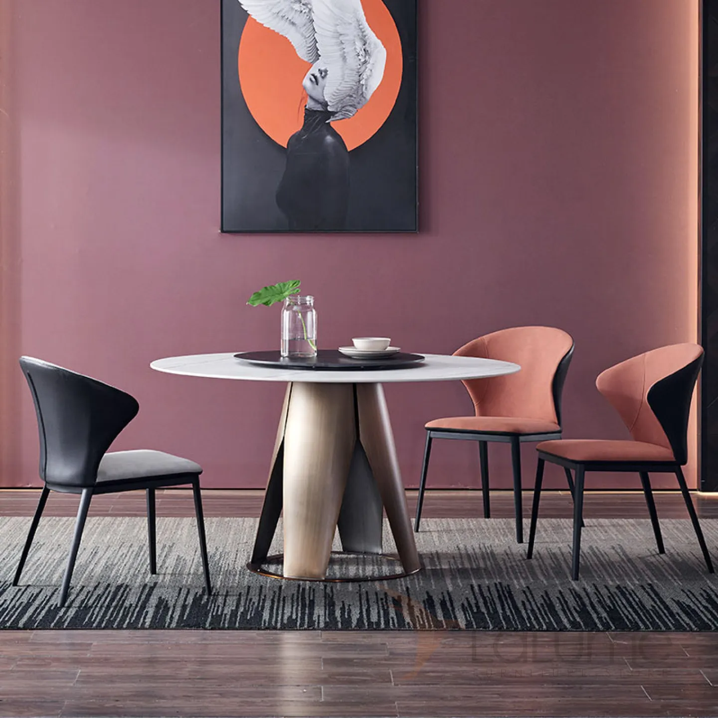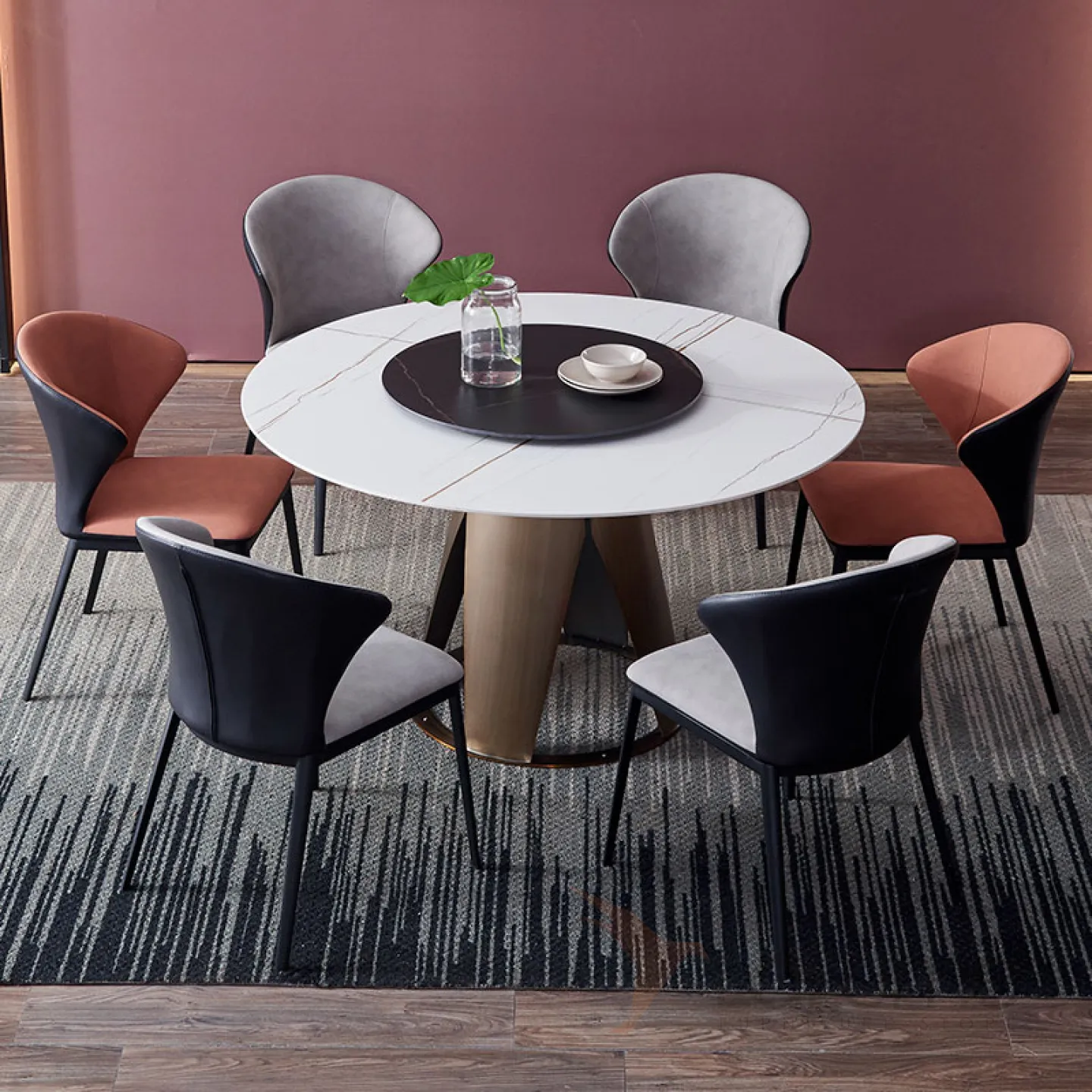 Необычный круглый обеденный стол с вращающейся серединой в стиле Минимализм LaLume AR22299-23