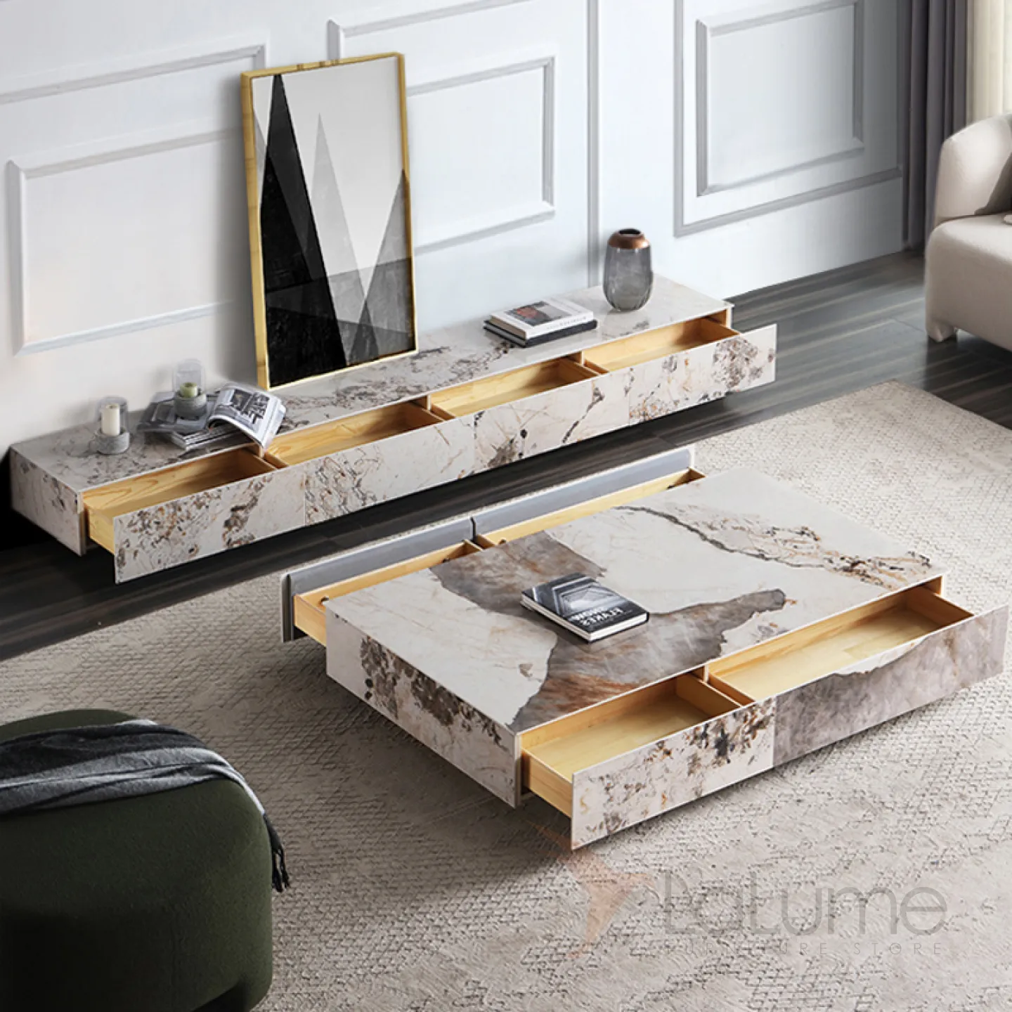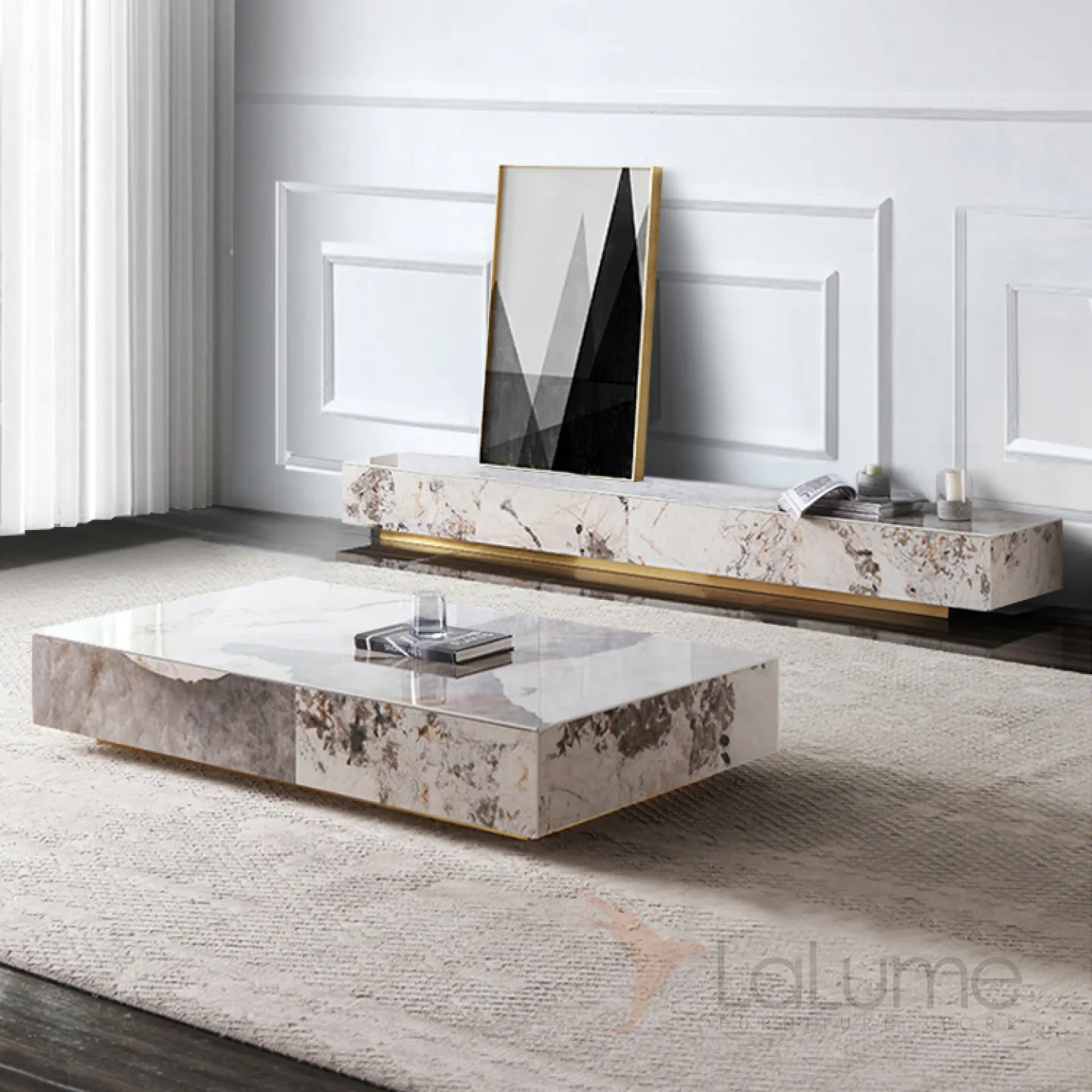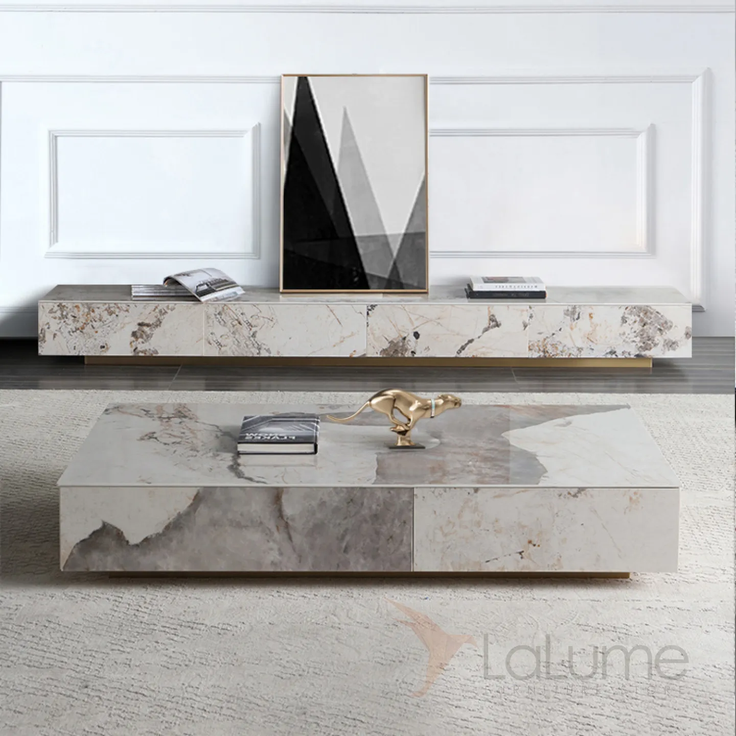 Минималистичная яркая каменная тумба для телевизора в Итальянском стиле LaLume AR22311-23