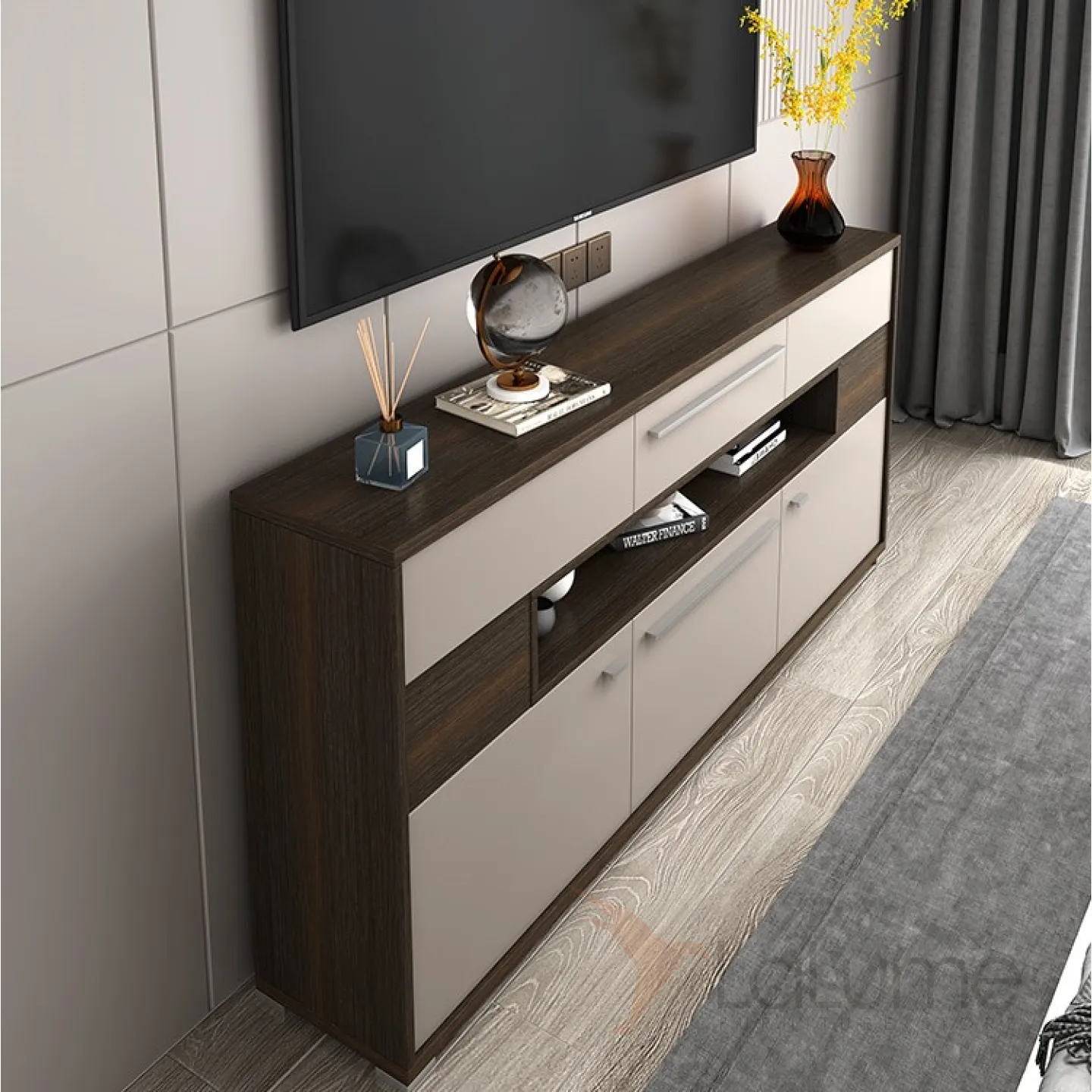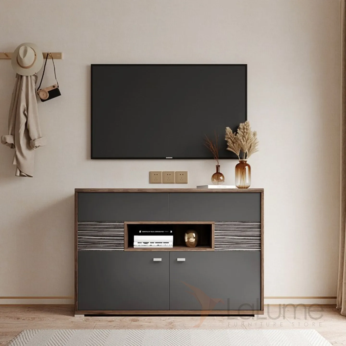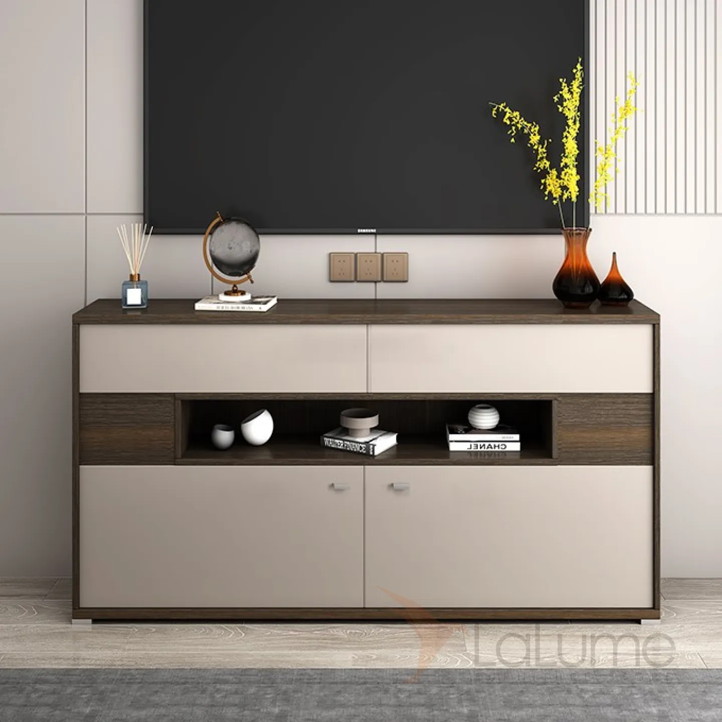 Шкаф-буфет от LaLume выполнен в минималистическом стиле.