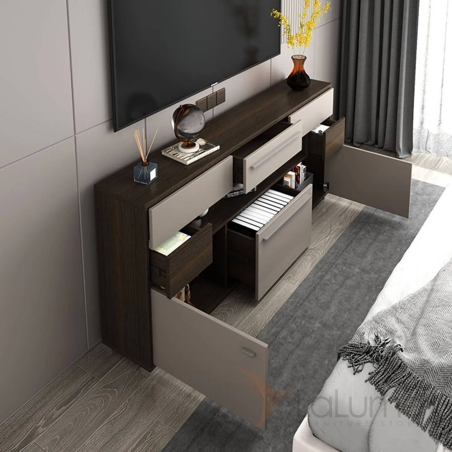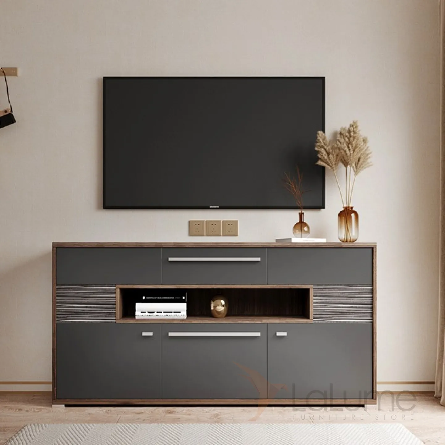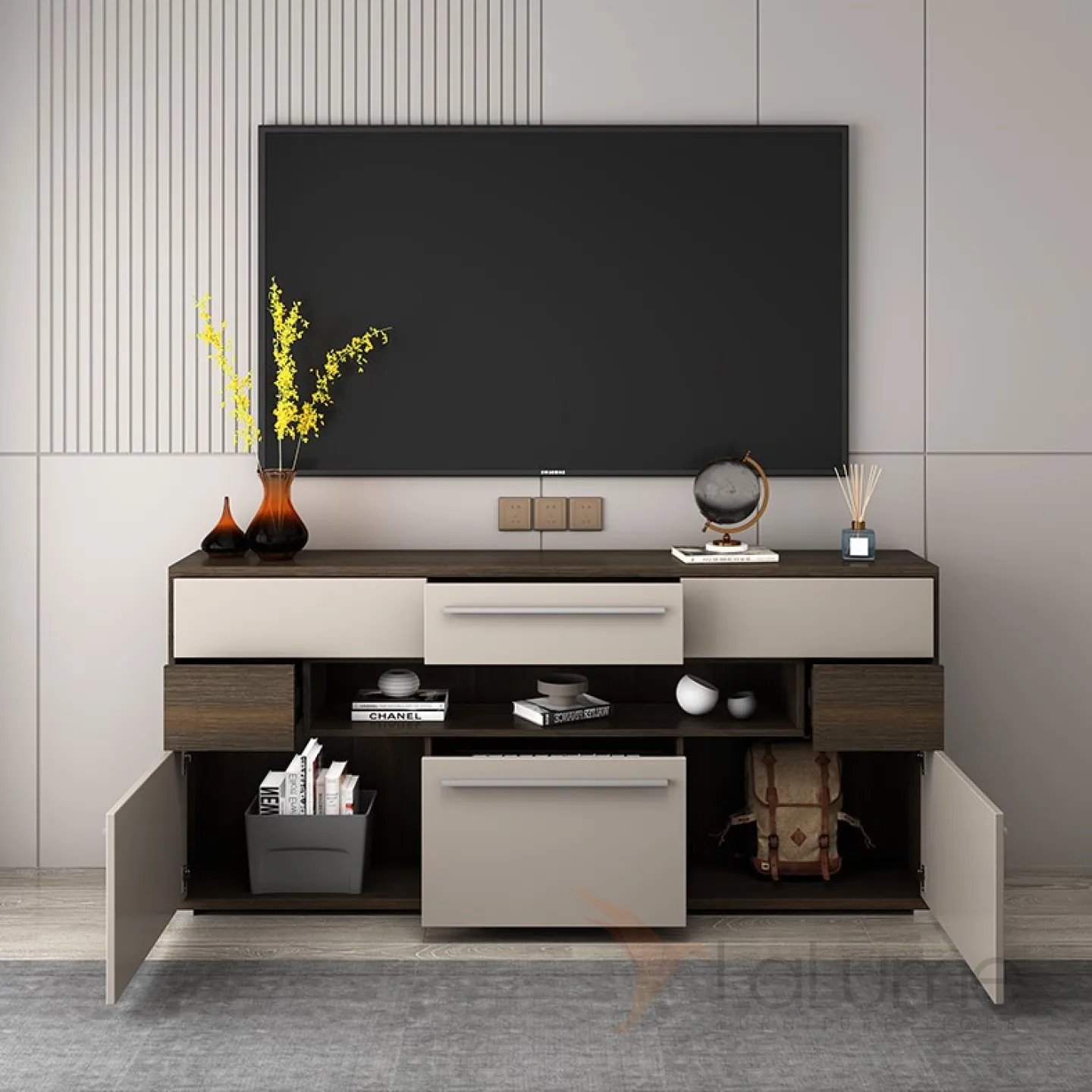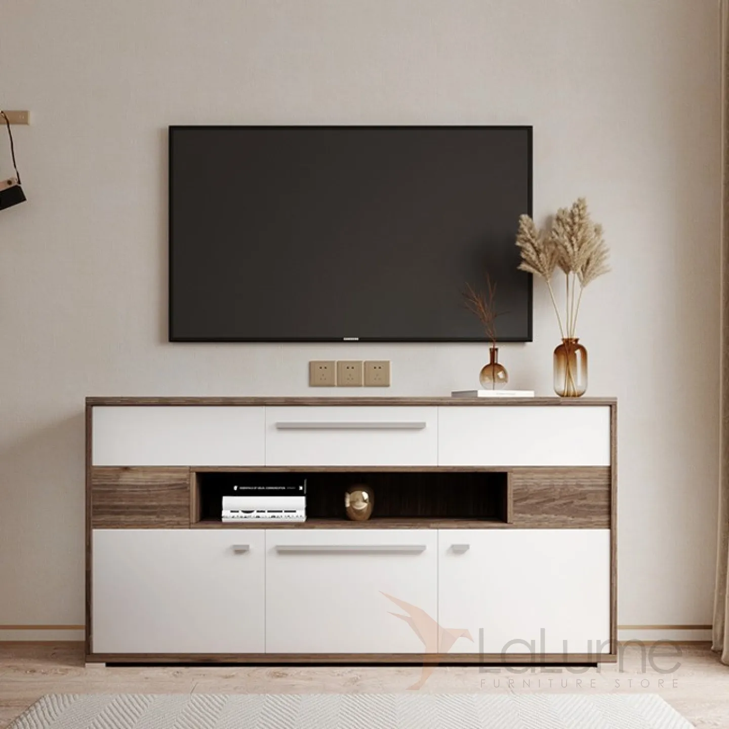 Шкаф-буфет от LaLume выполнен в минималистическом стиле.
