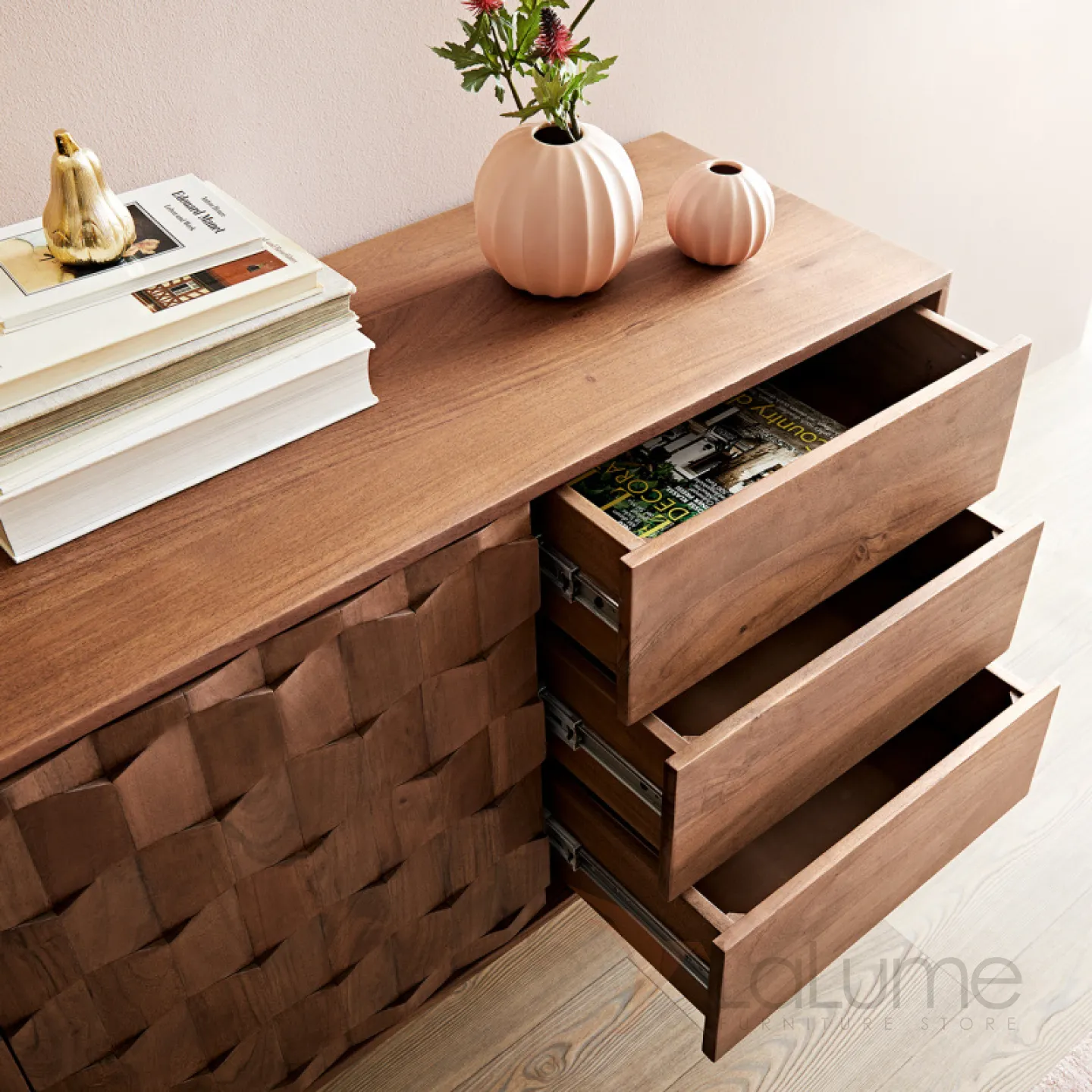 Представляем вашему вниманию комод с дизайнерской отделкой в виде геометрической резьбы.
