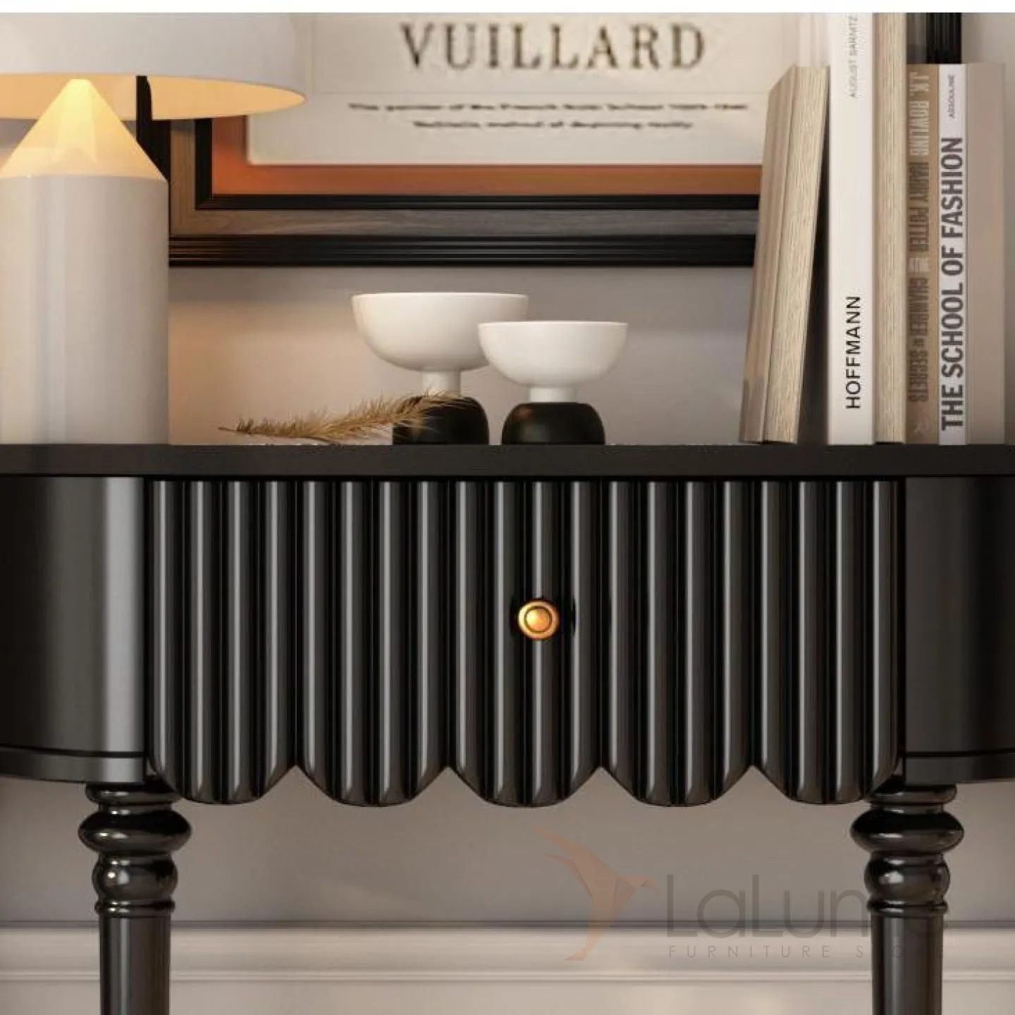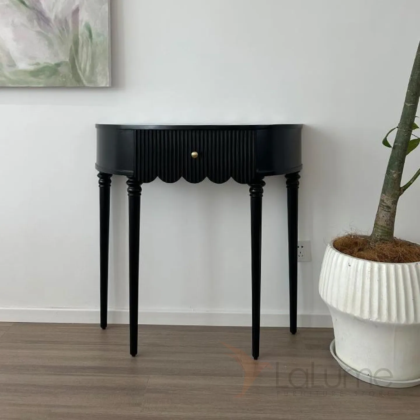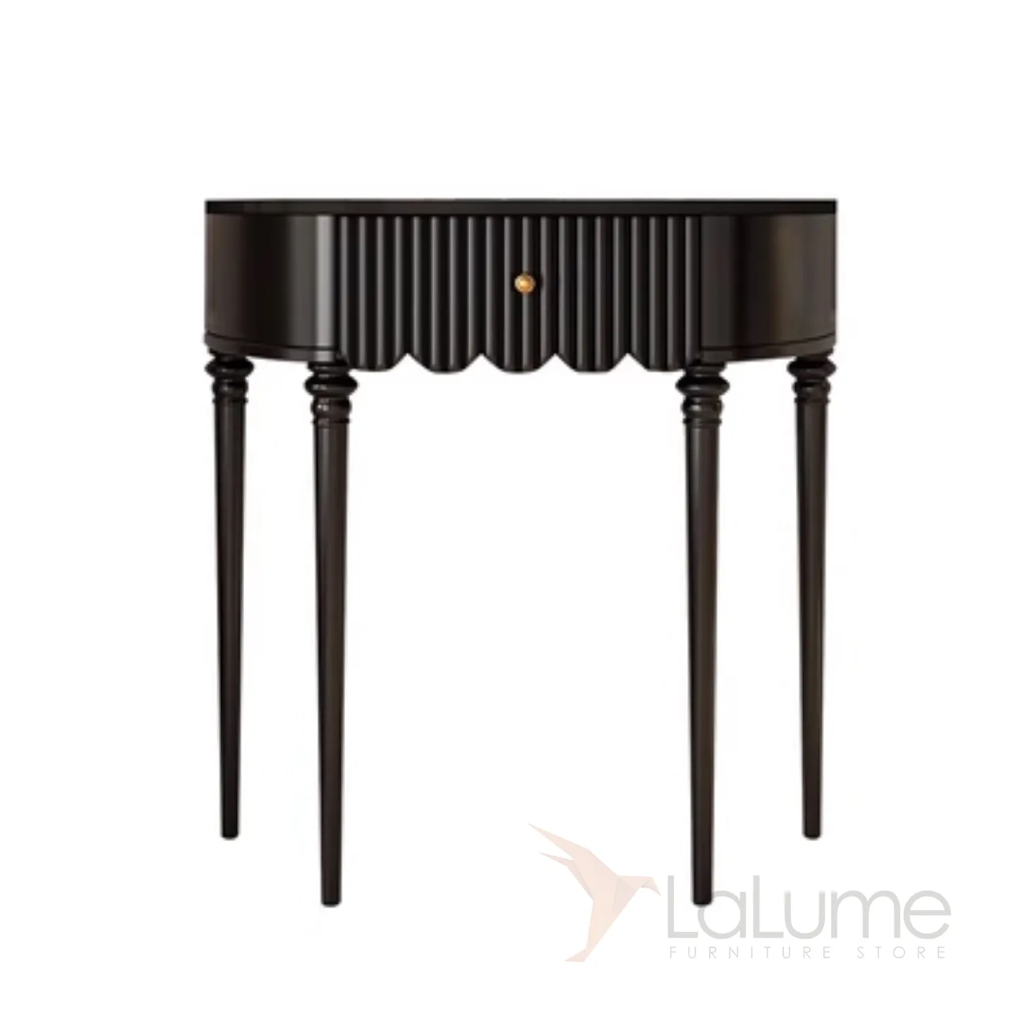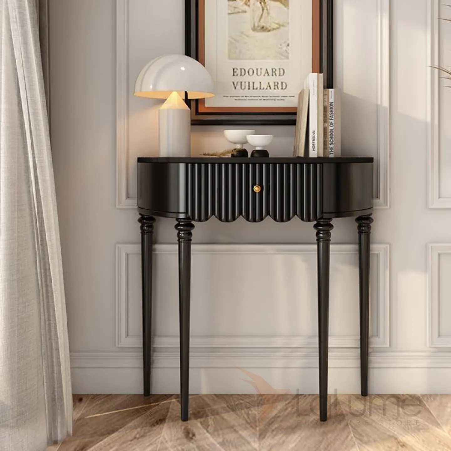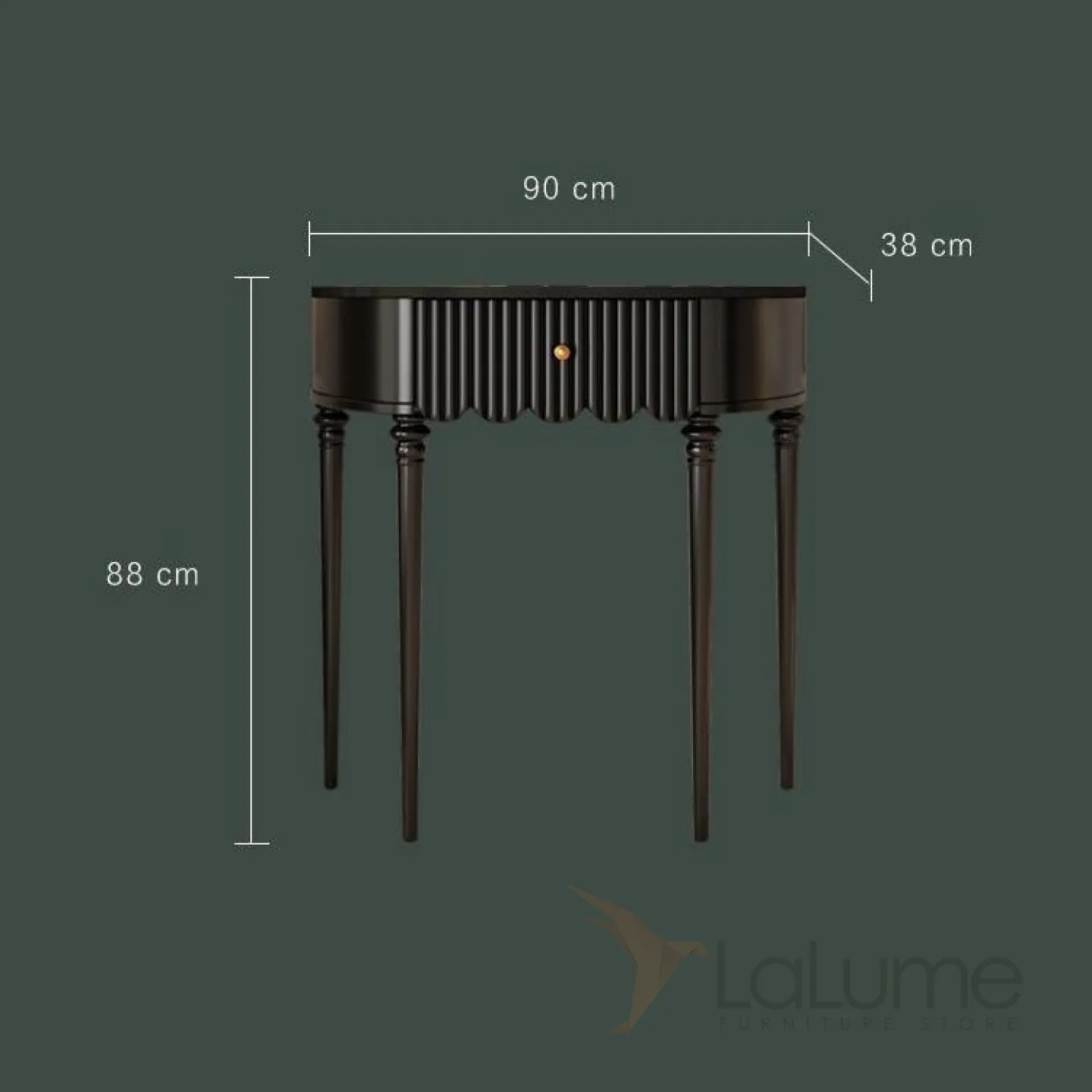 Этот ретро консольный столик из цельного дерева - идеальное дополнение для вашего дома. С его винтажным обликом и прочной конструкцией, он обязательно станет центром внимания в любой комнате. Столик изготовлен из высококачественного цельного дерева, что гарантирует его долговечность и надежность. Богатый темный оттенок дерева подчеркивает винтажный стиль и добавляет теплоту в ваш интерьер. Он оснащен двумя просторными ящиками для хранения, которые идеально подойдут для хранения мелких аксессуаров или документов. Этот ретро консольный столик - не просто удобный предмет мебели, но и стильное дополнение, которое придаст вашему дому уникального шарма.