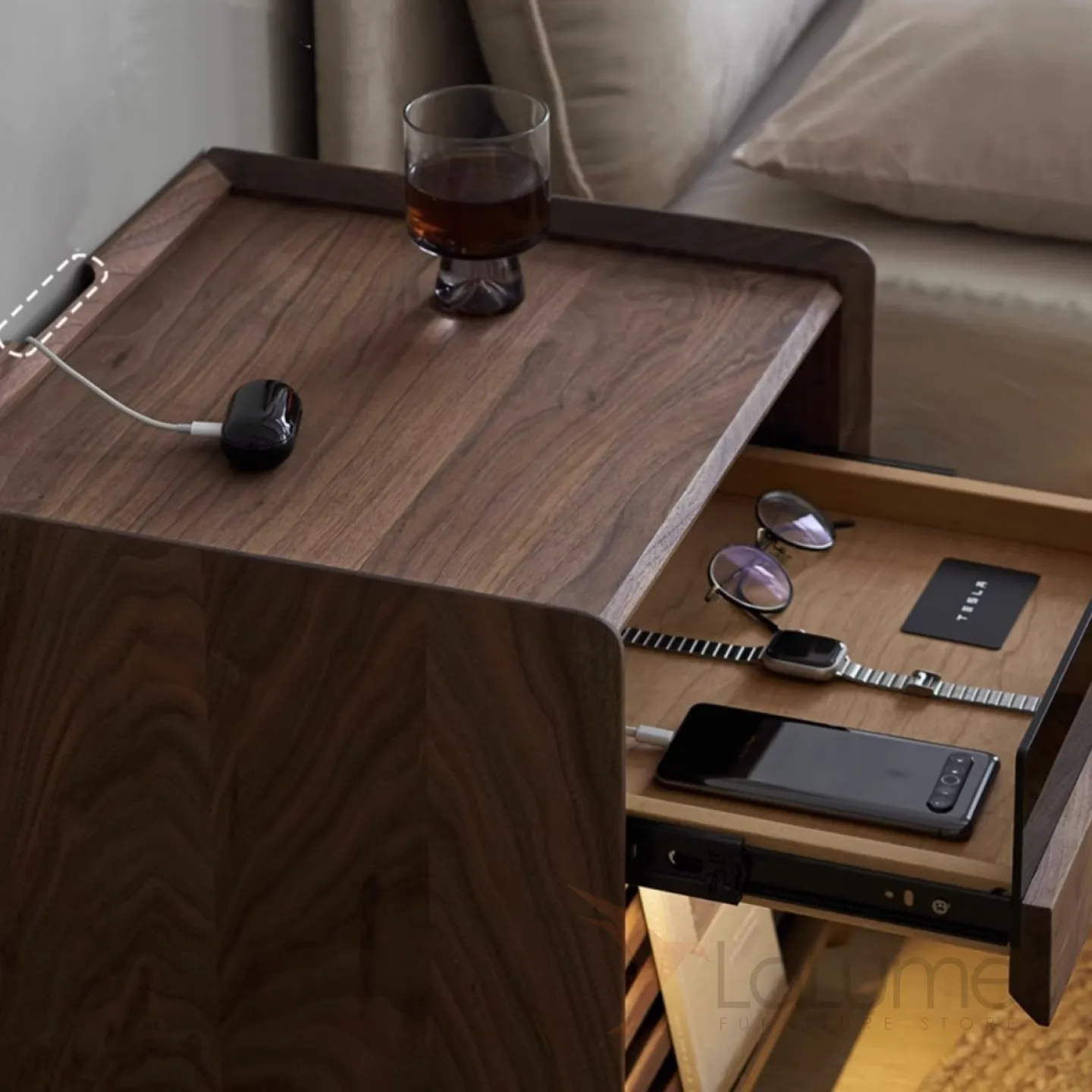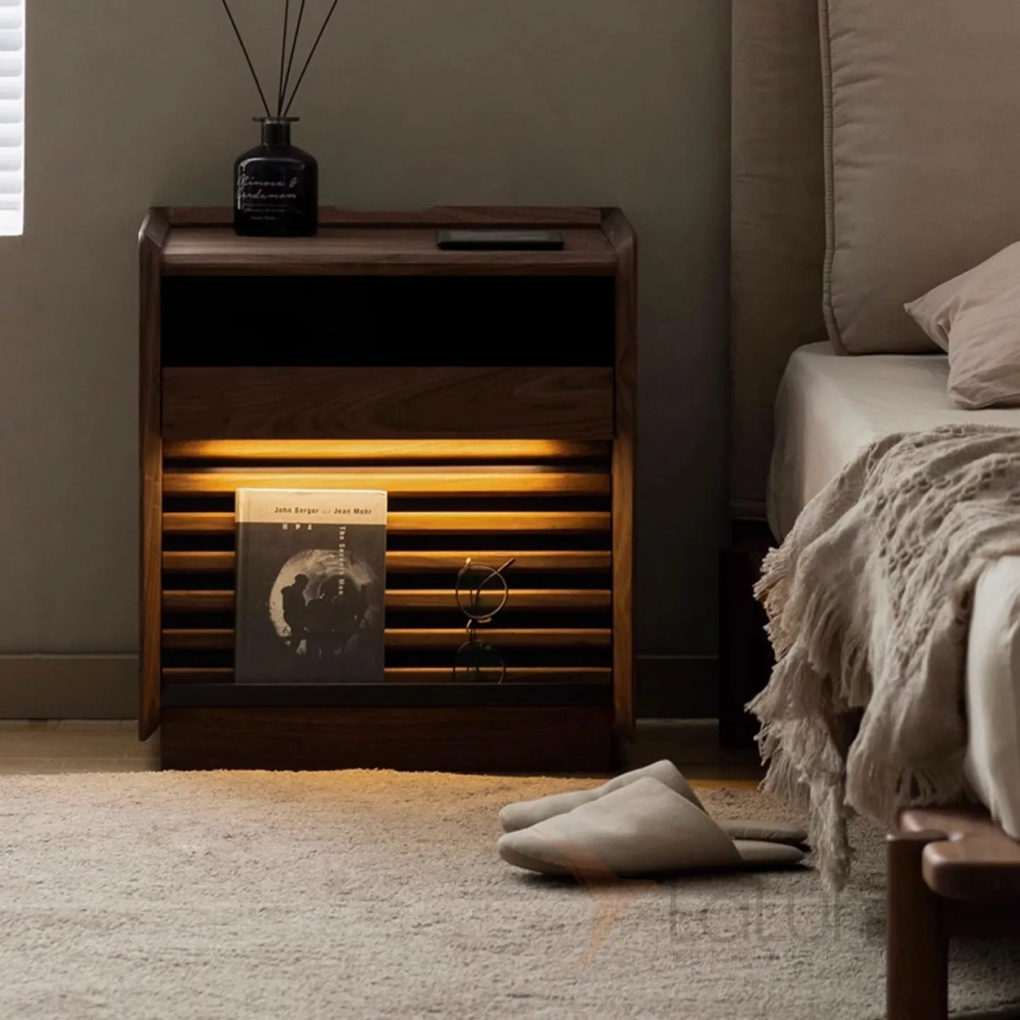 Прикроватная тумбочка из черного ореха с лампой WOODSTIK 35643-29