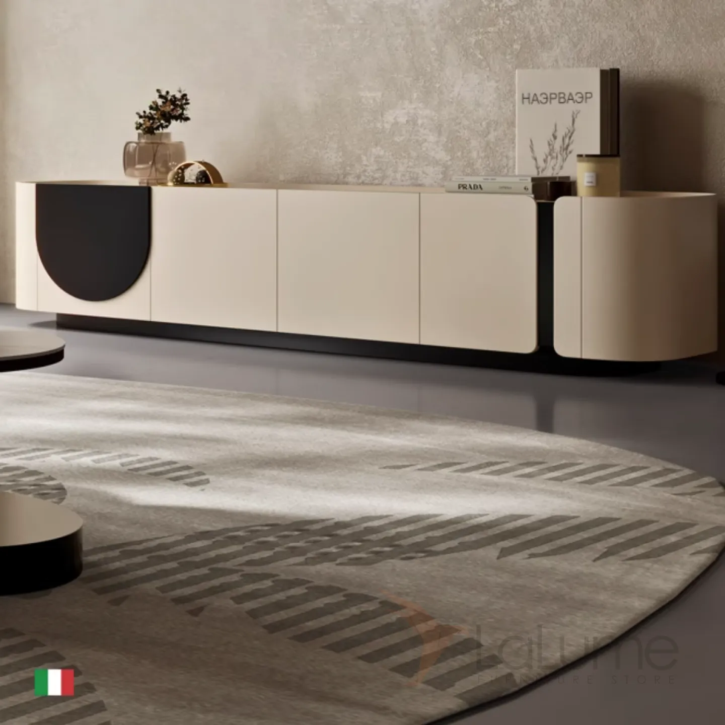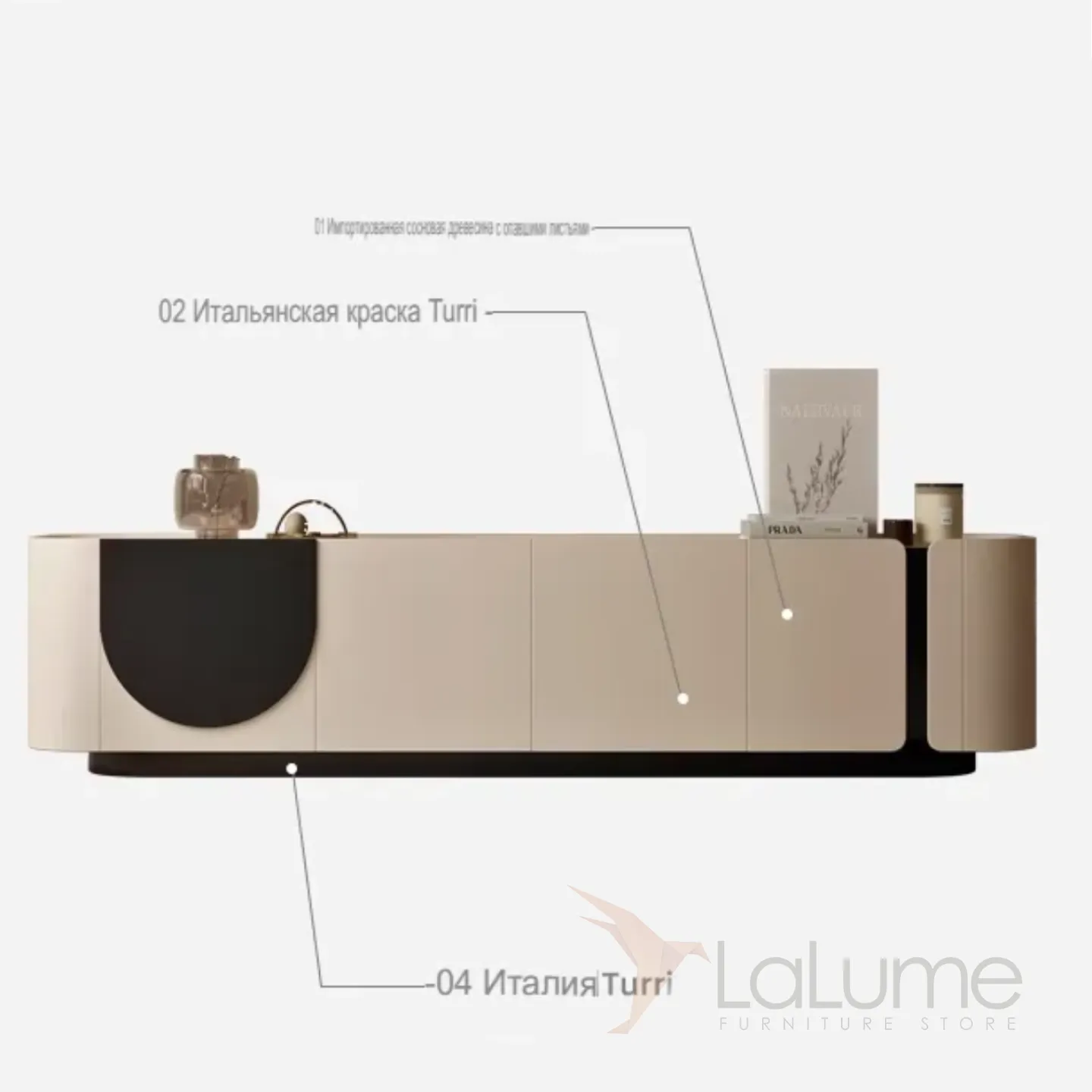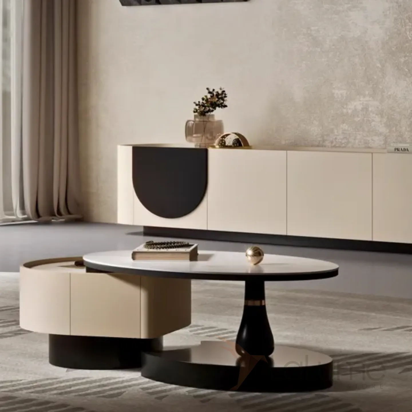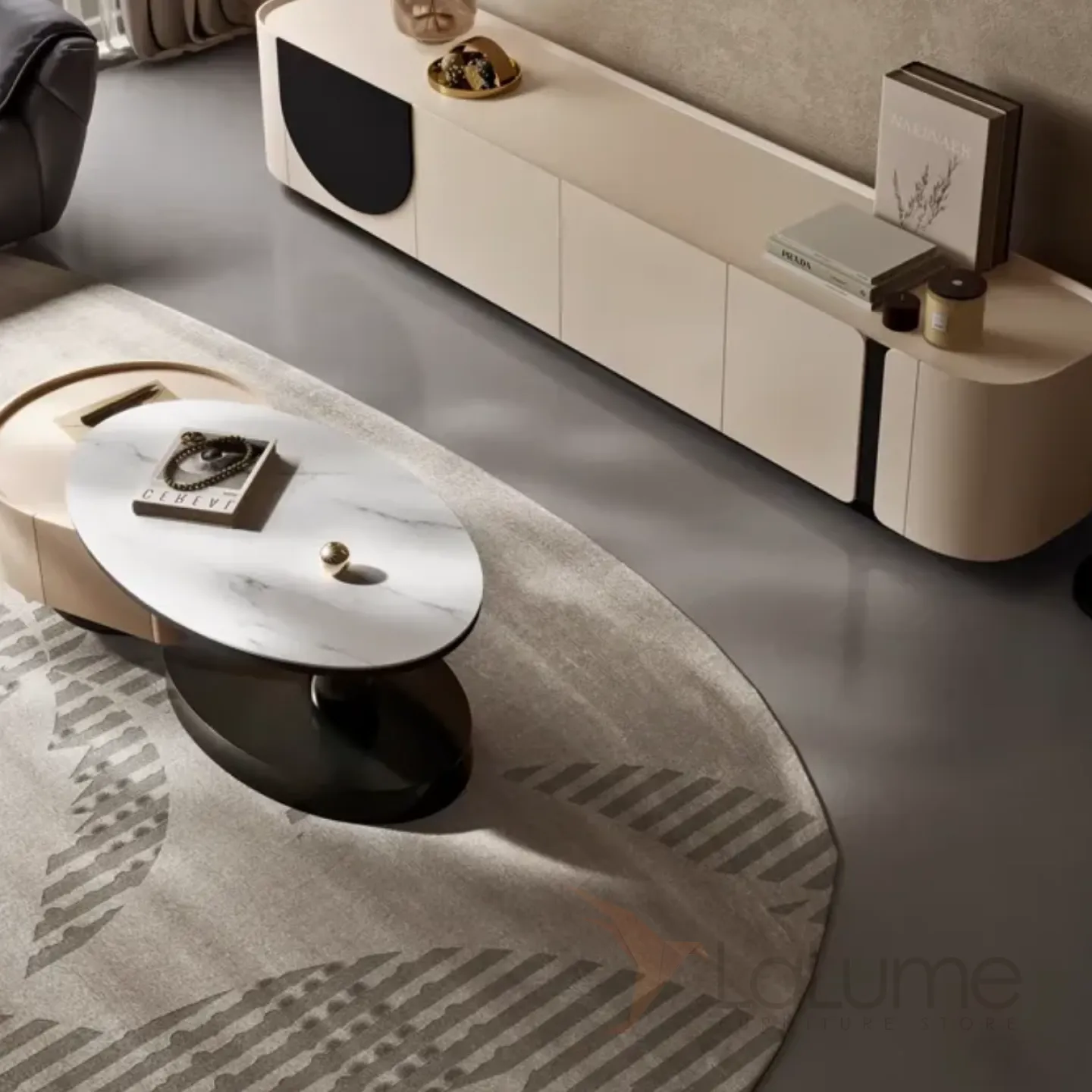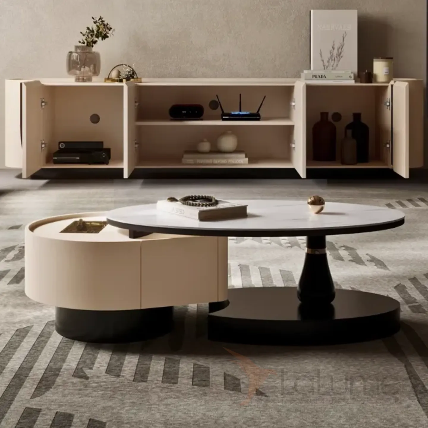 Кожаный шкаф для телевизора в стиле ваби-саби и журнальный столик KBOOS 35651-29