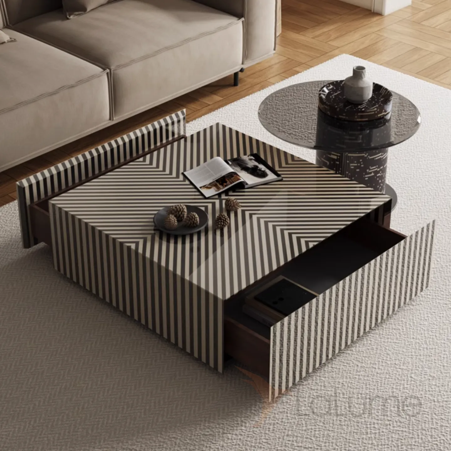 Дизайнерский журнальный столик в полоску под зебру KBOOS 35667-29