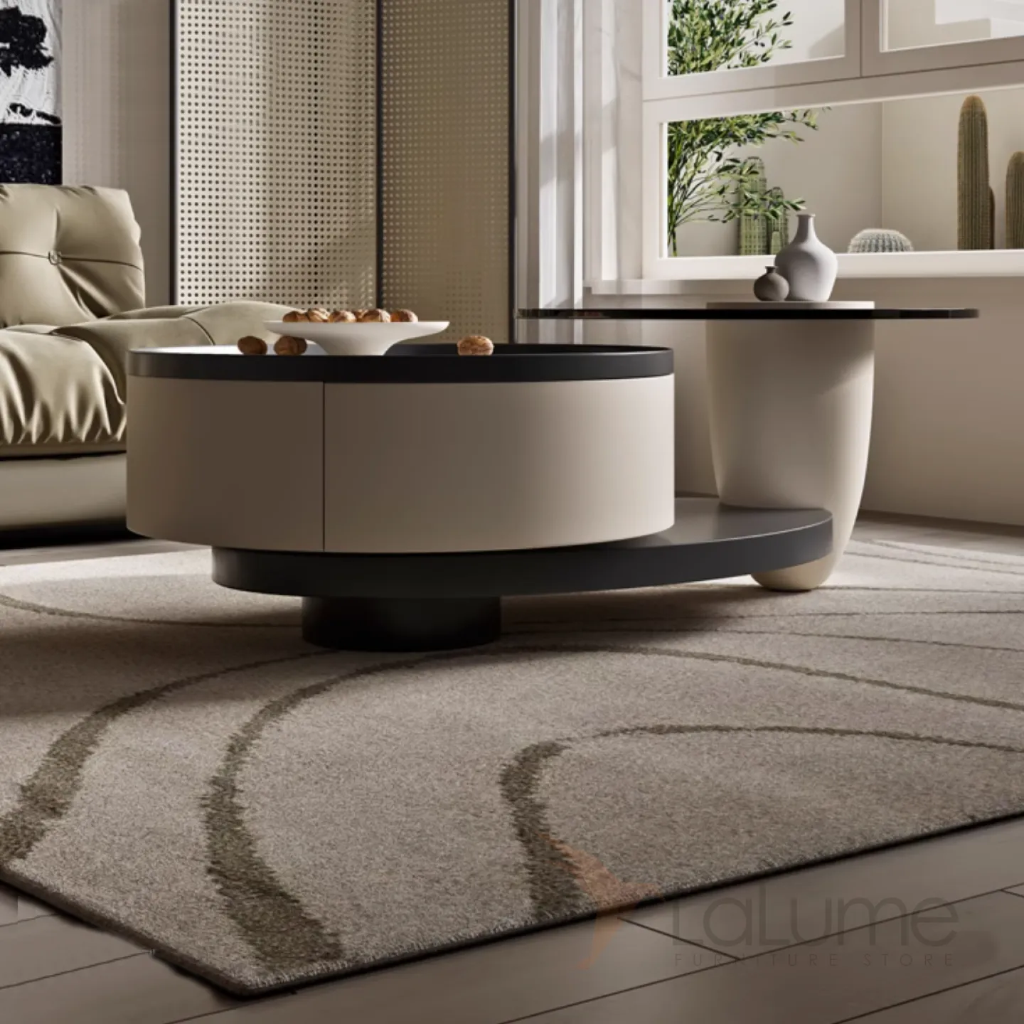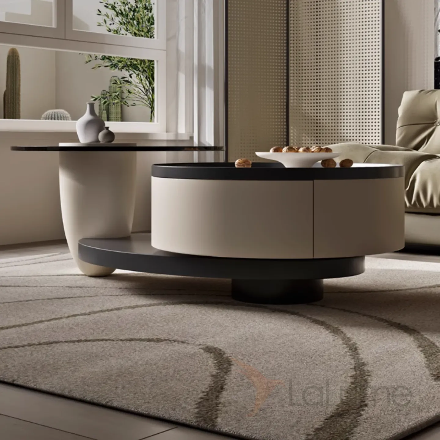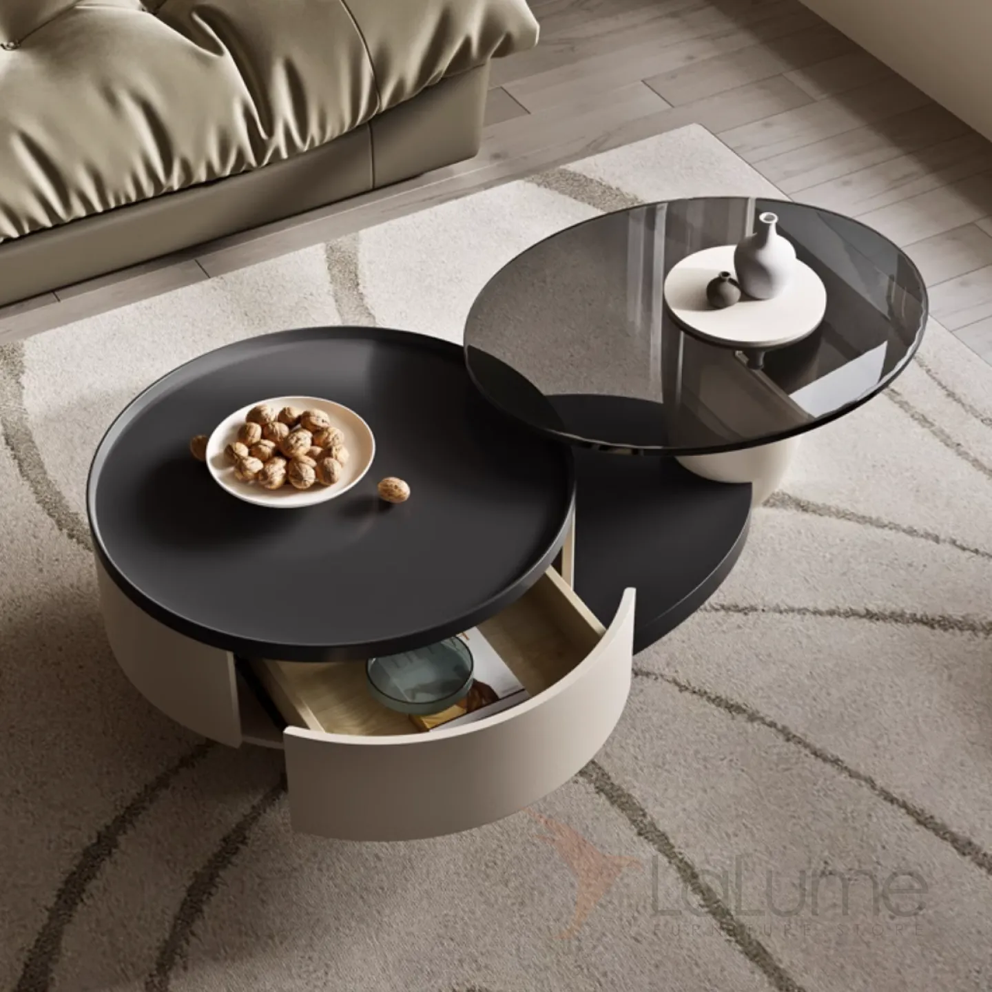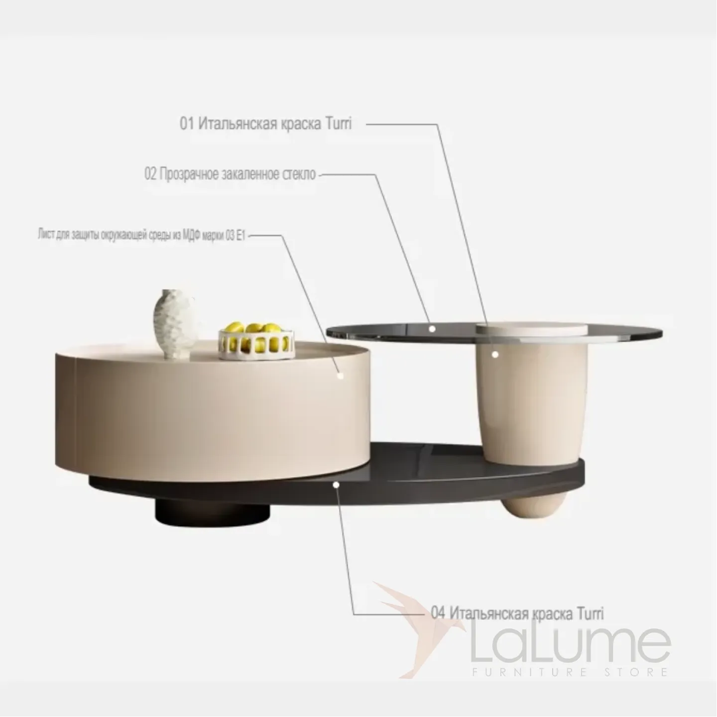 Круглый журнальный столик с каменной тарелкой и стеклом KBOOS 35671-29