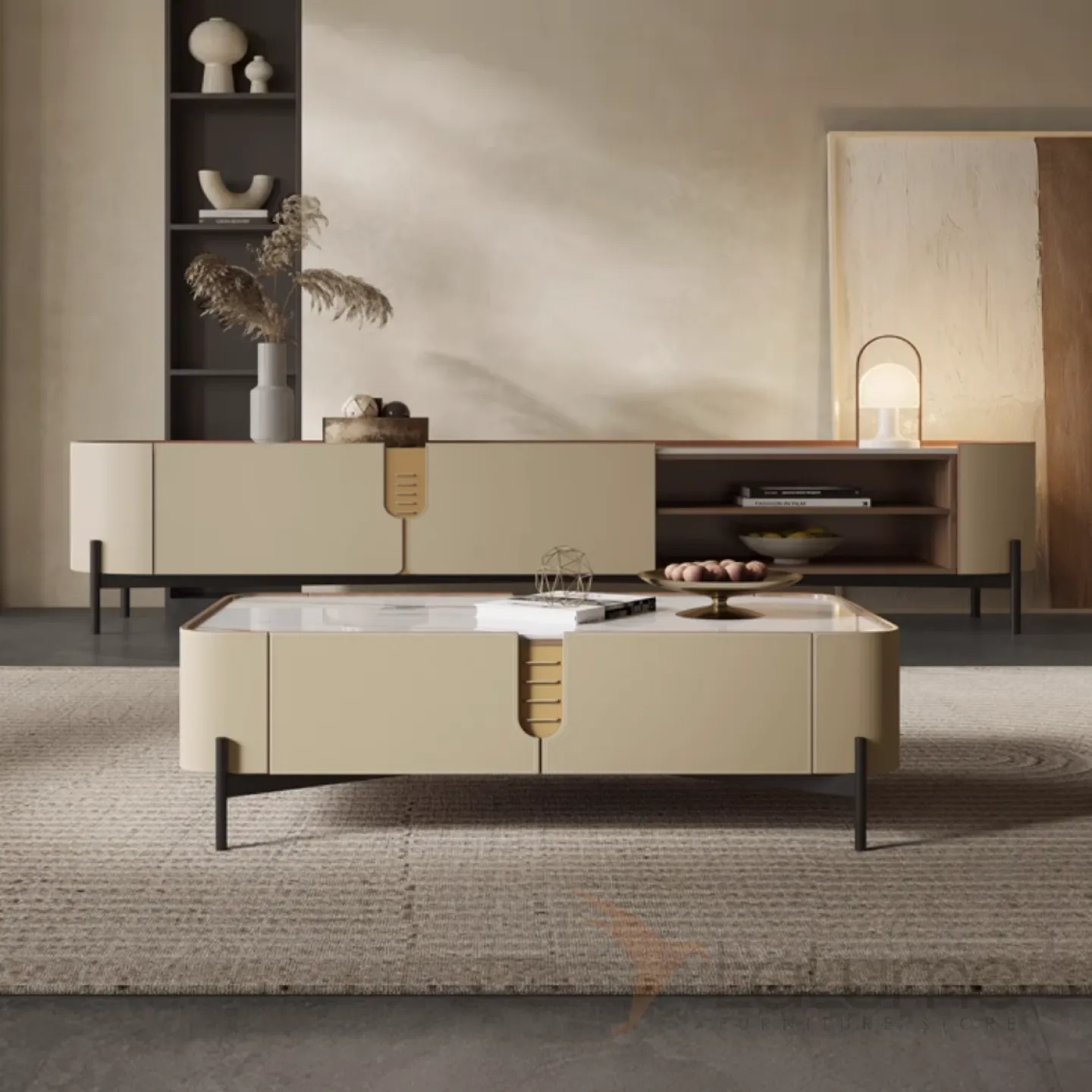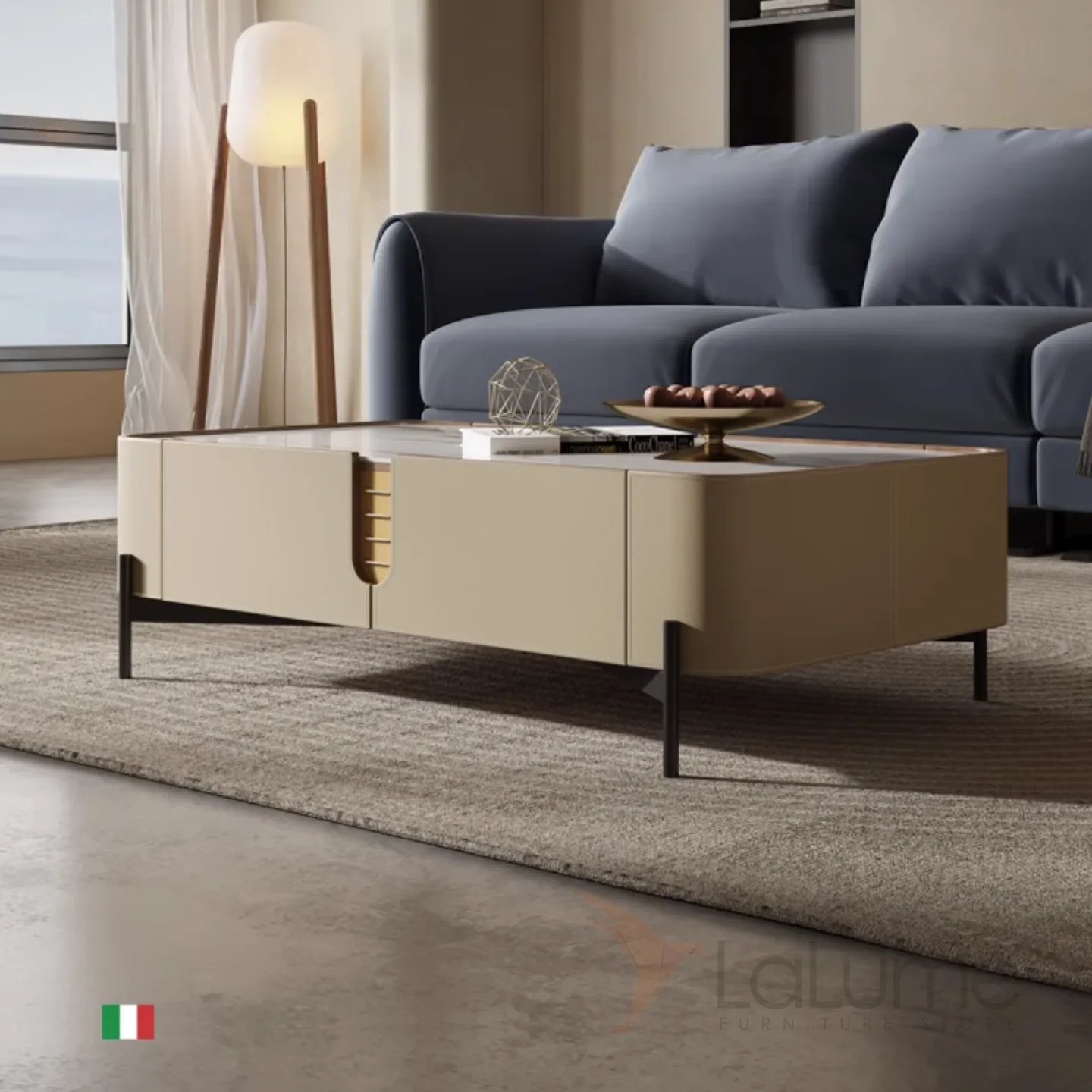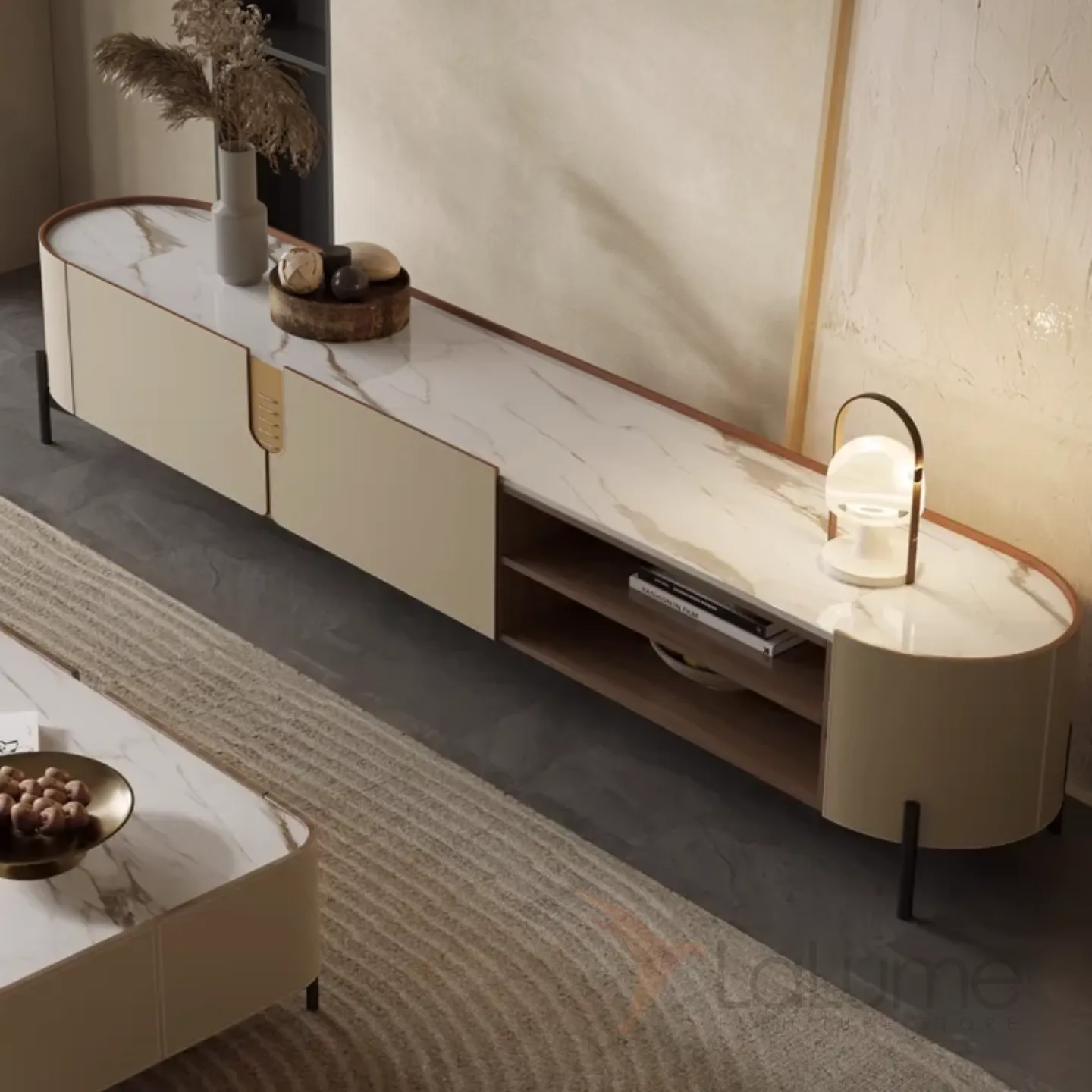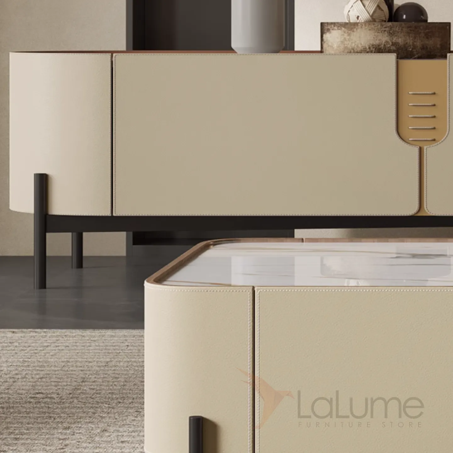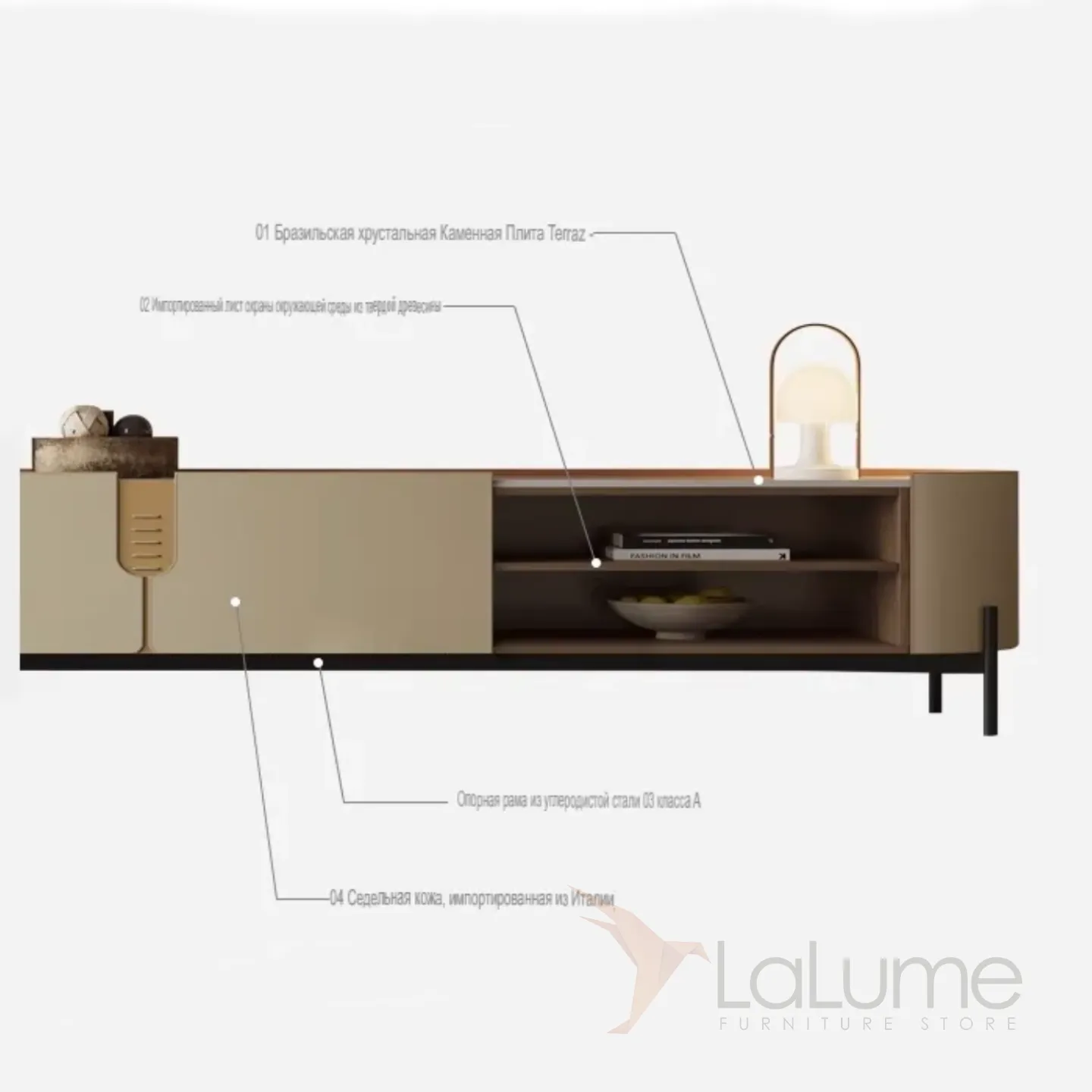 Комод под ТВ из седельной кожи и каменной плиты KBOOS 35672-29