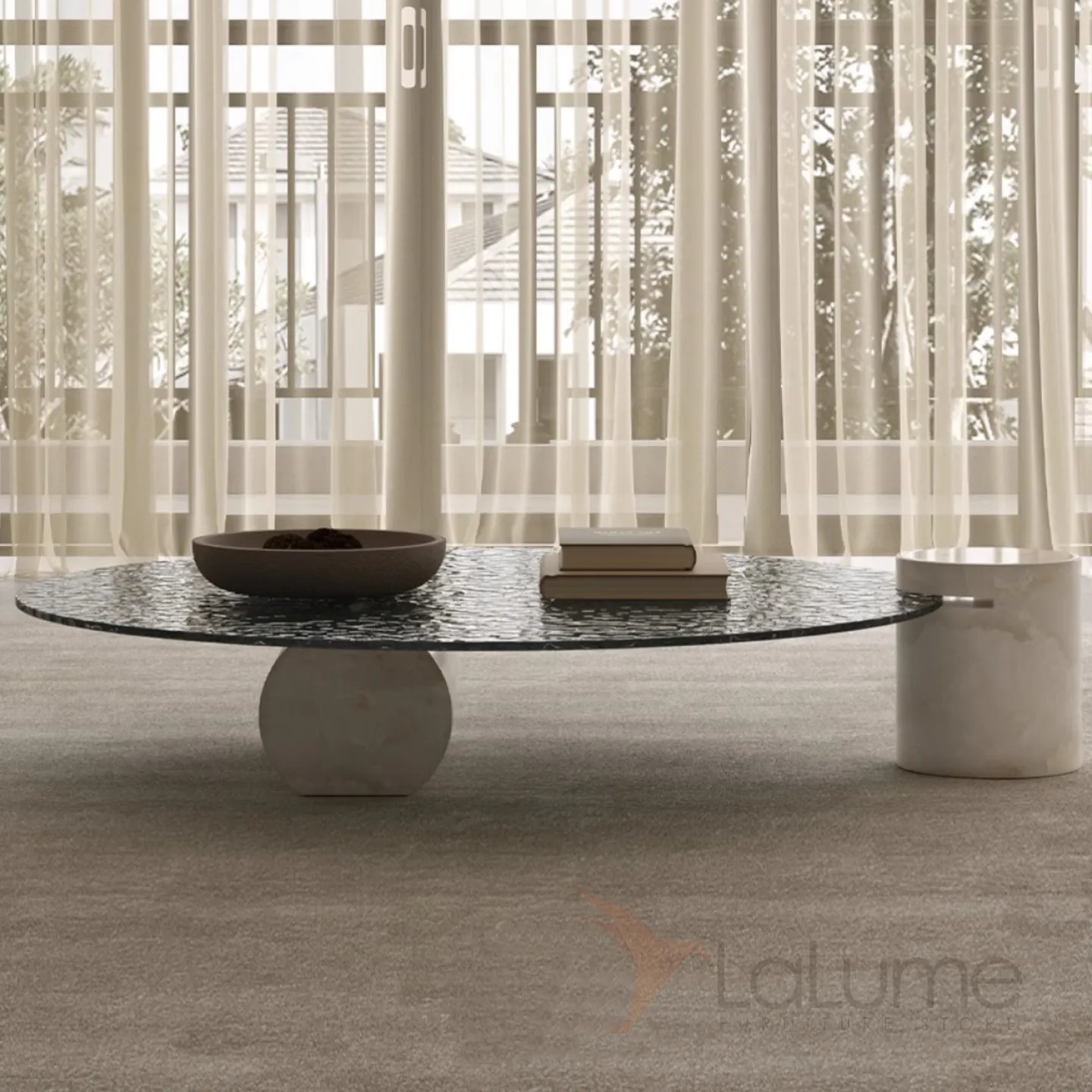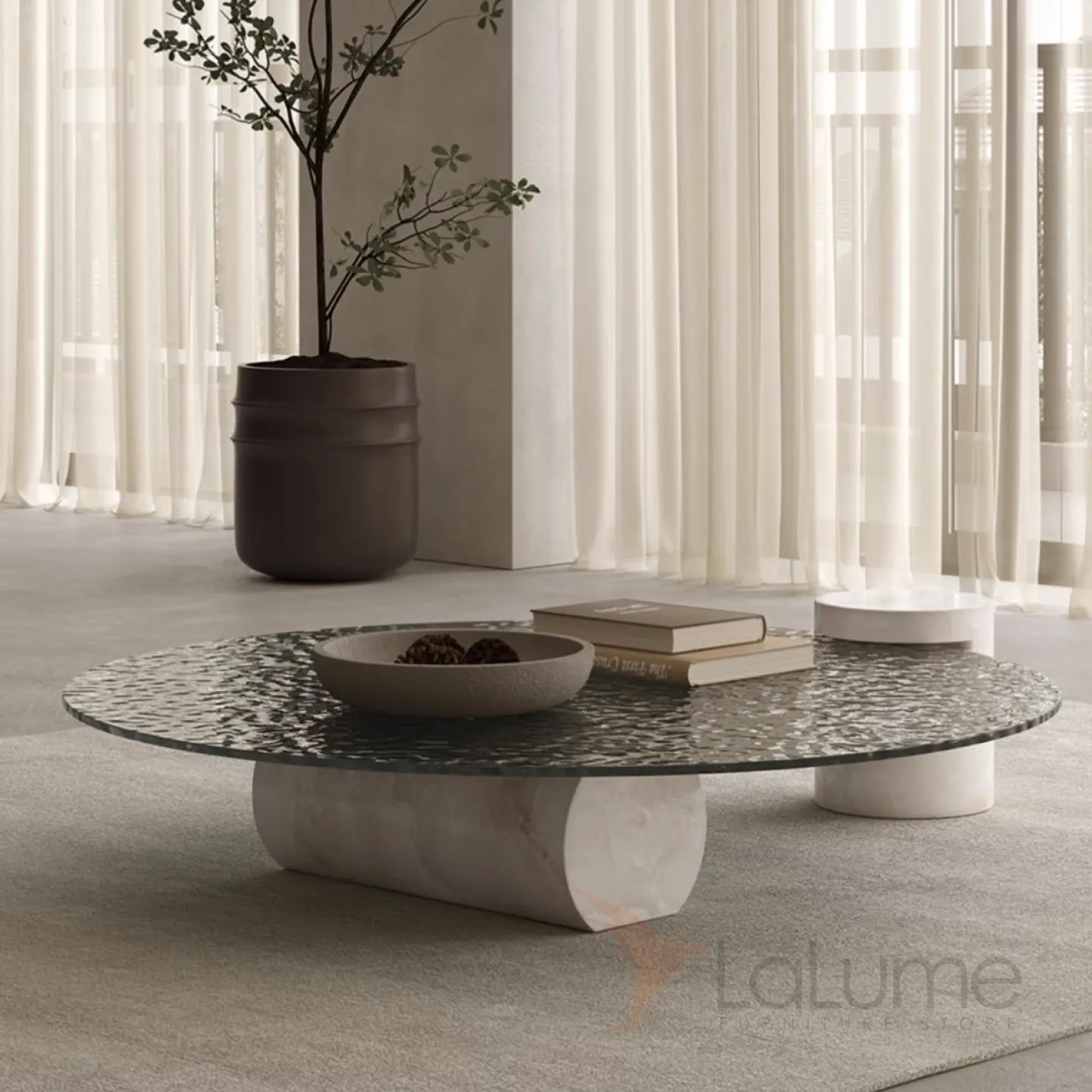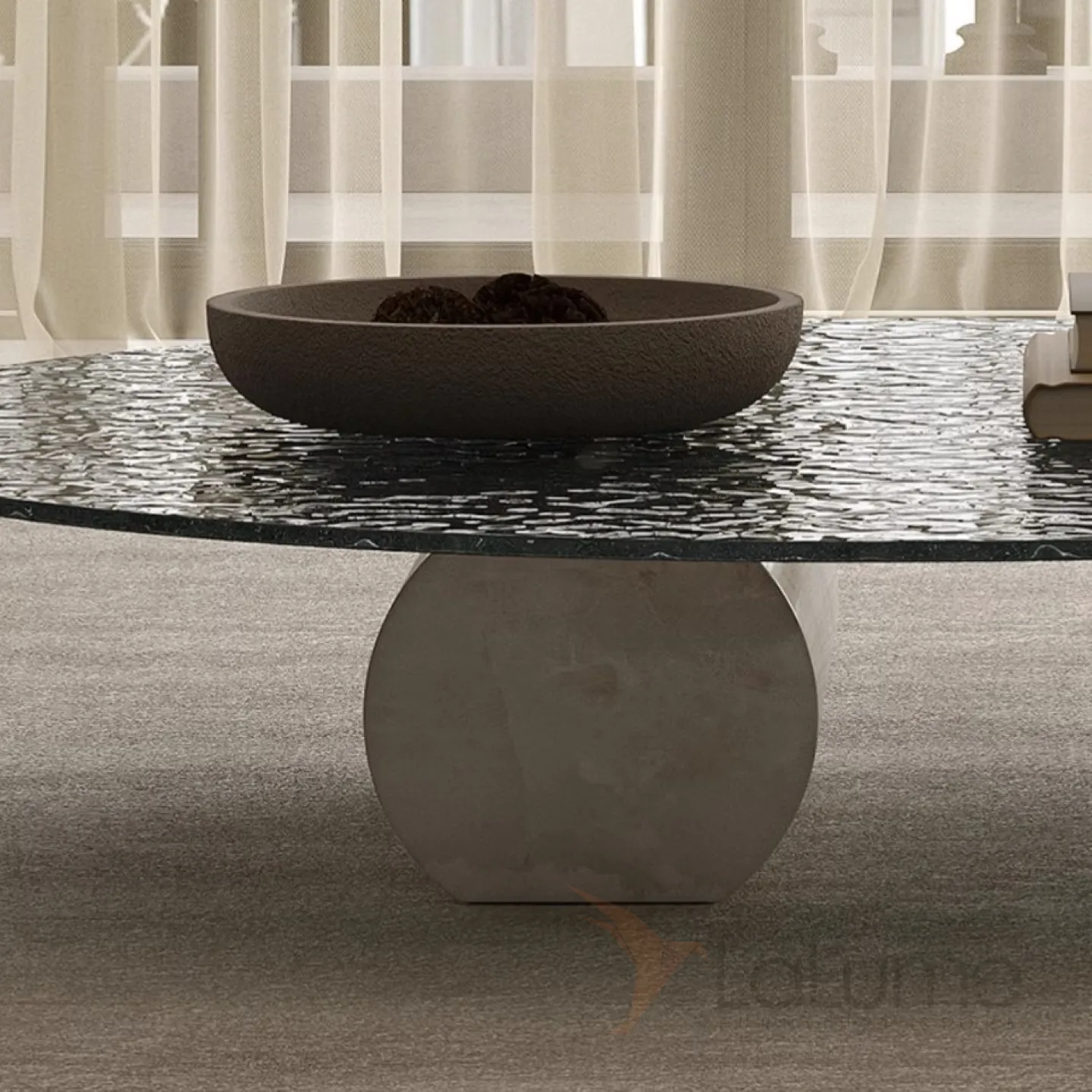 Легкий стеклянный журнальный столик с водной рябью Tide Leader 35740-29