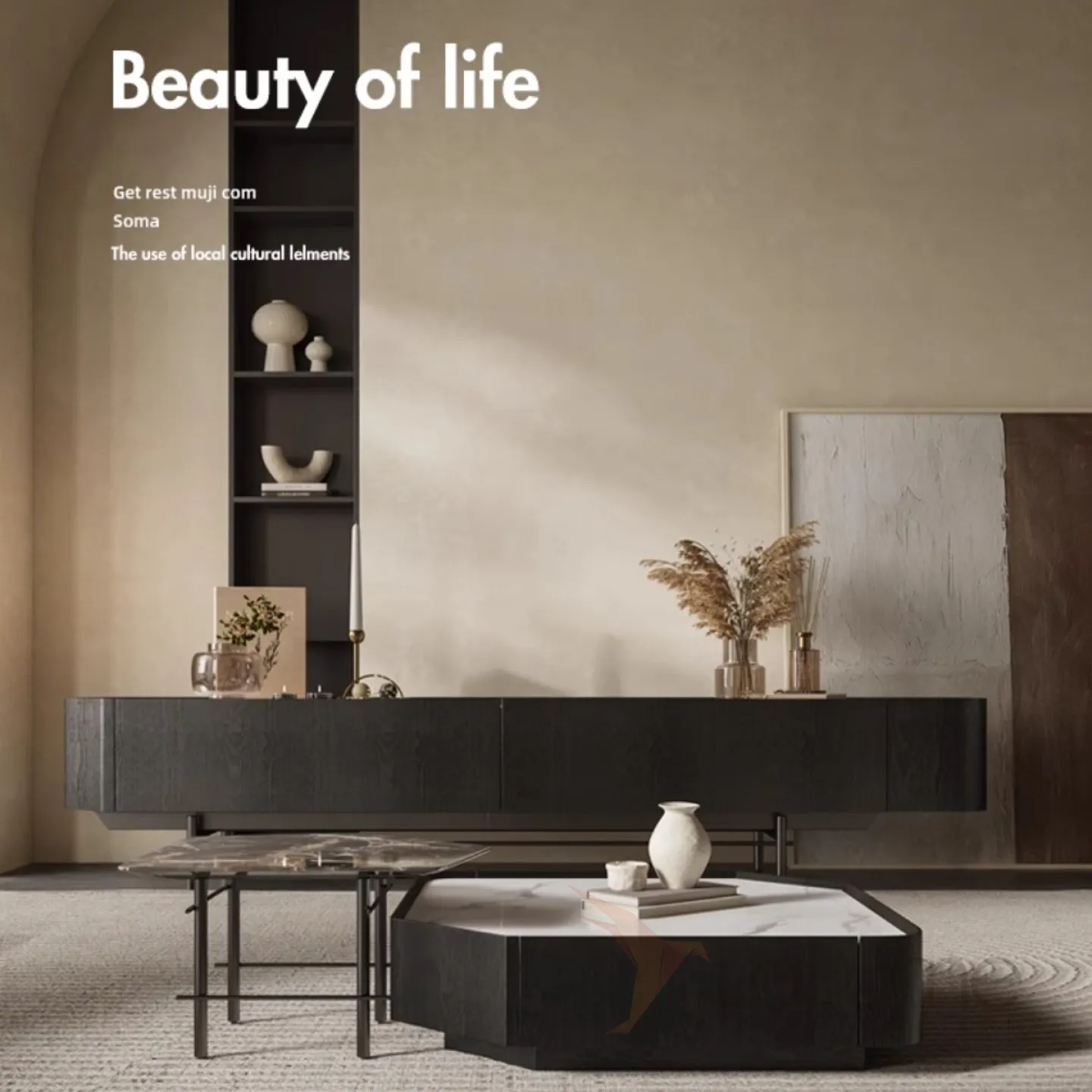 ТВ-шкаф из каменной плиты в стиле Ваби-саби KBOOS 35791-29