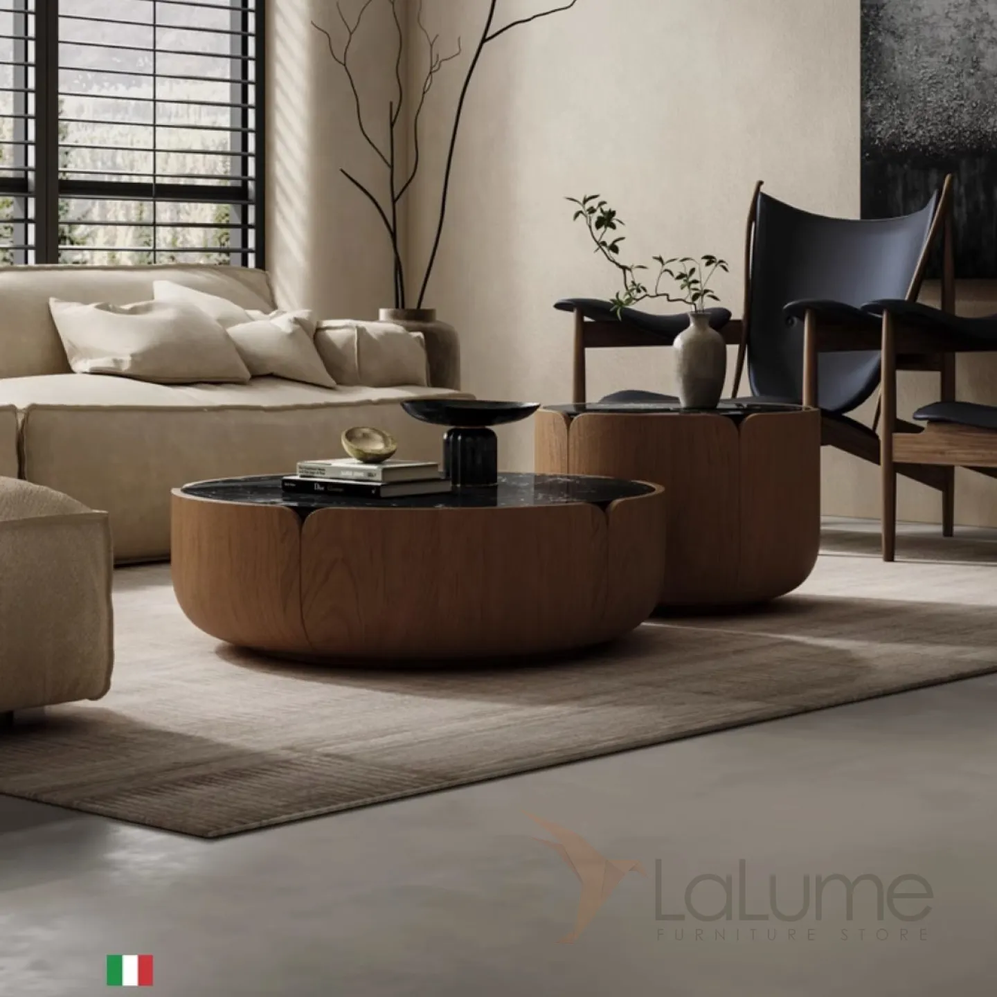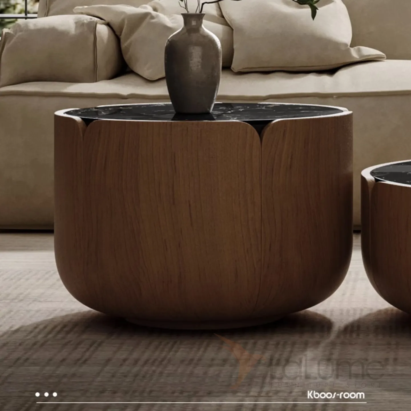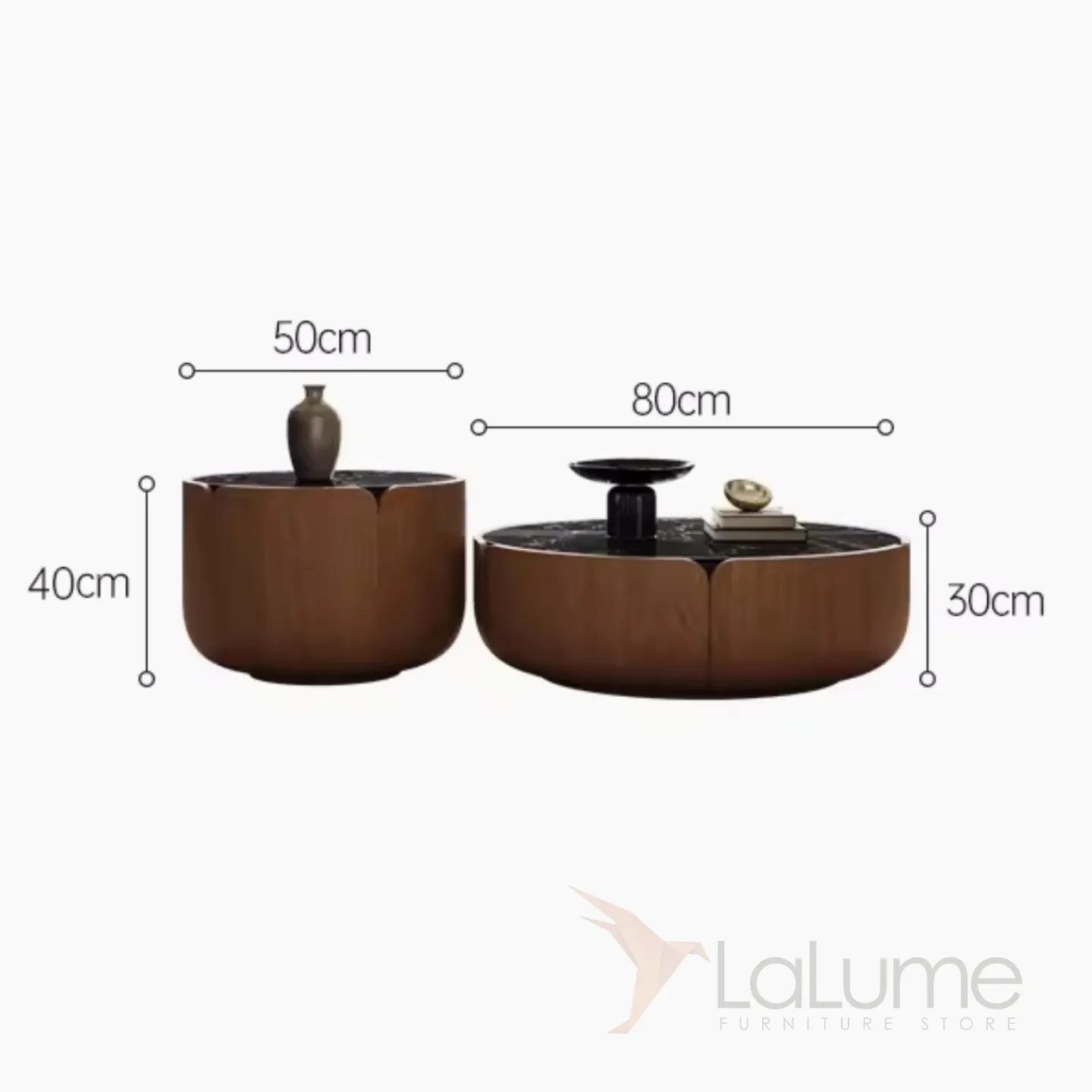 Круглый журнальный столик из орехового дерева и мрамора KBOOS 35798-29