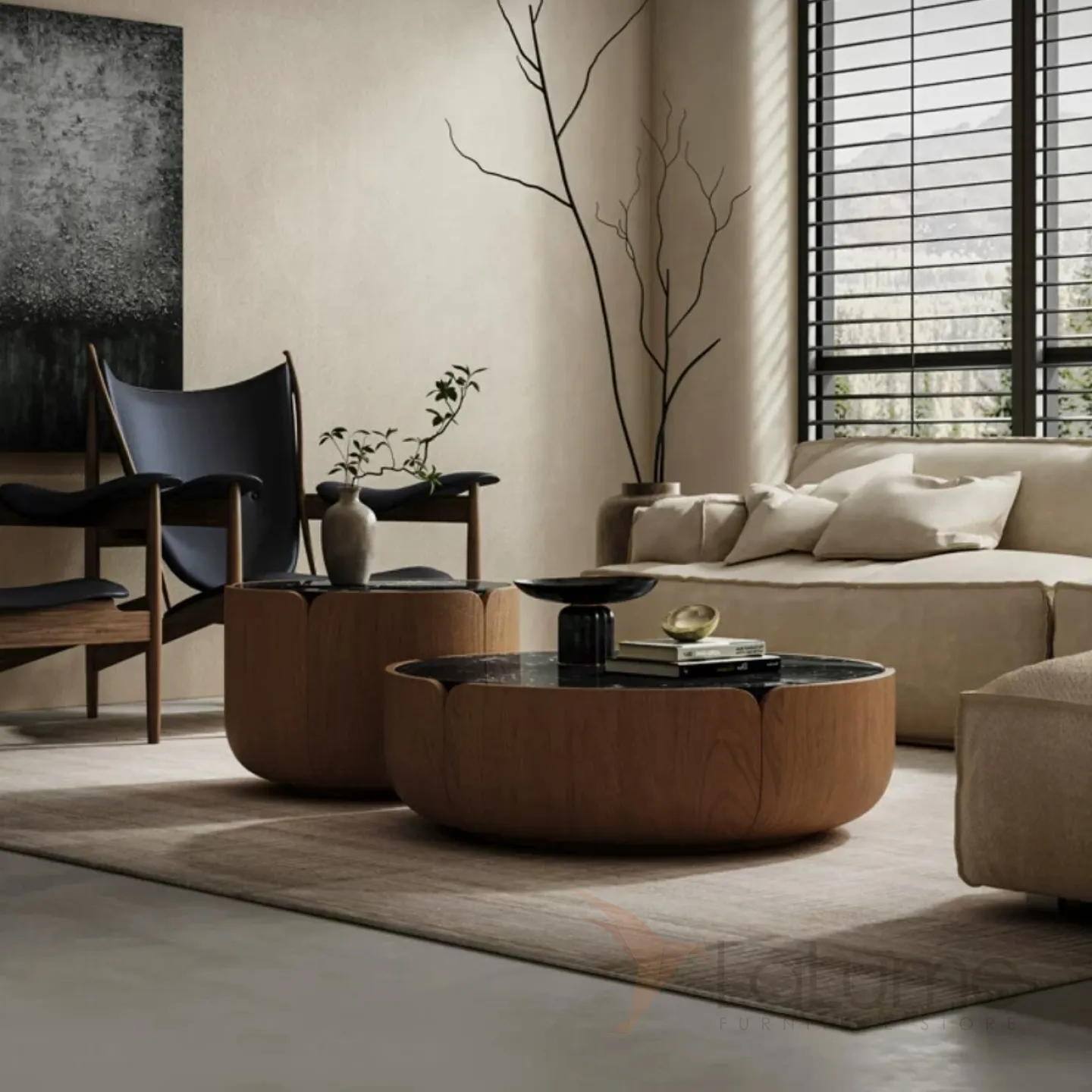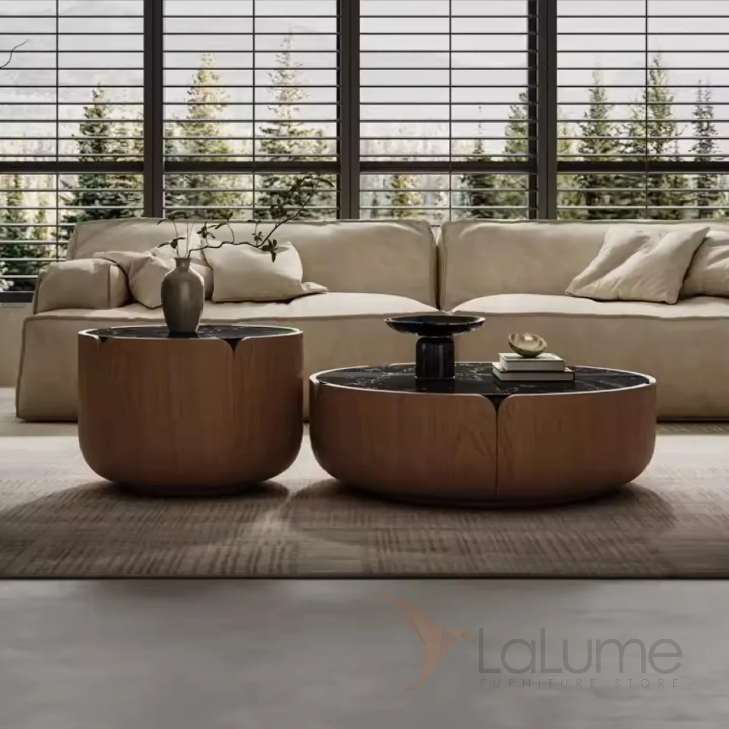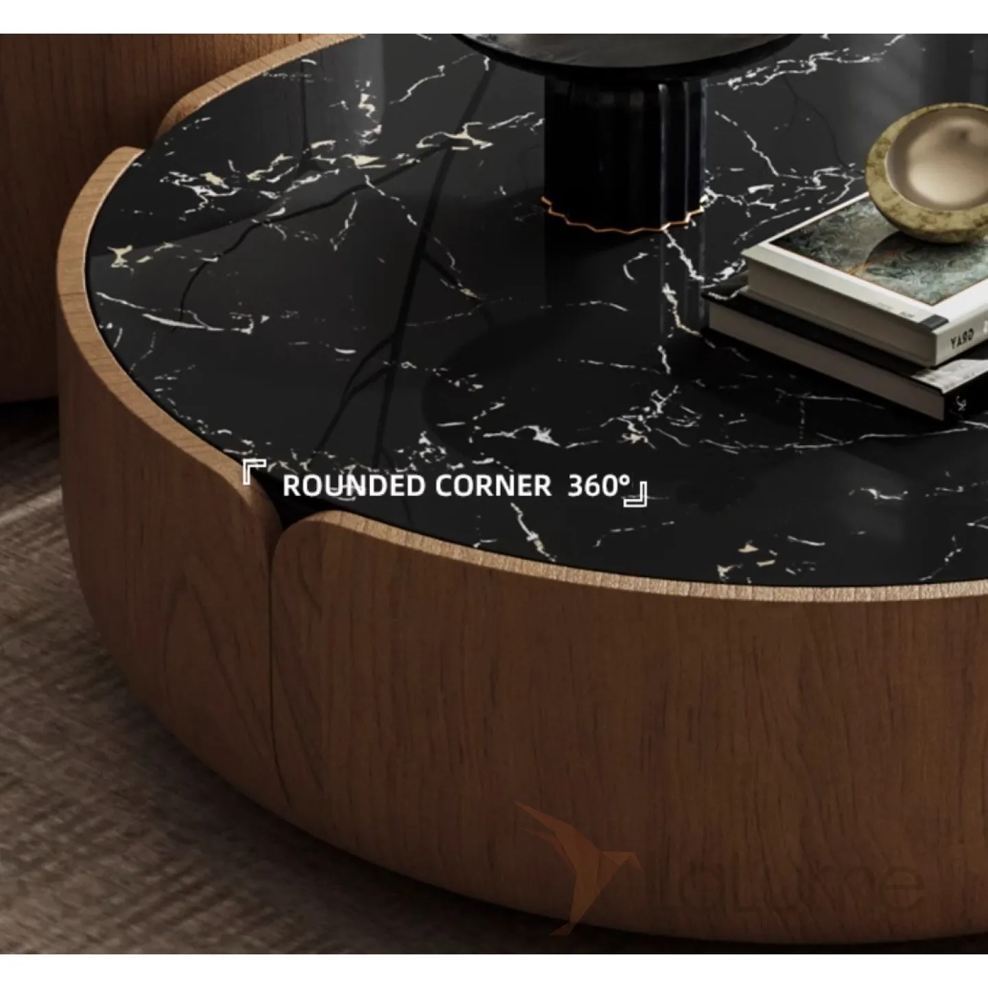 Круглый журнальный столик из орехового дерева и мрамора KBOOS 35798-29