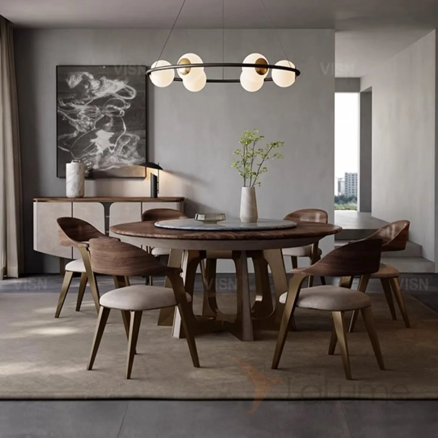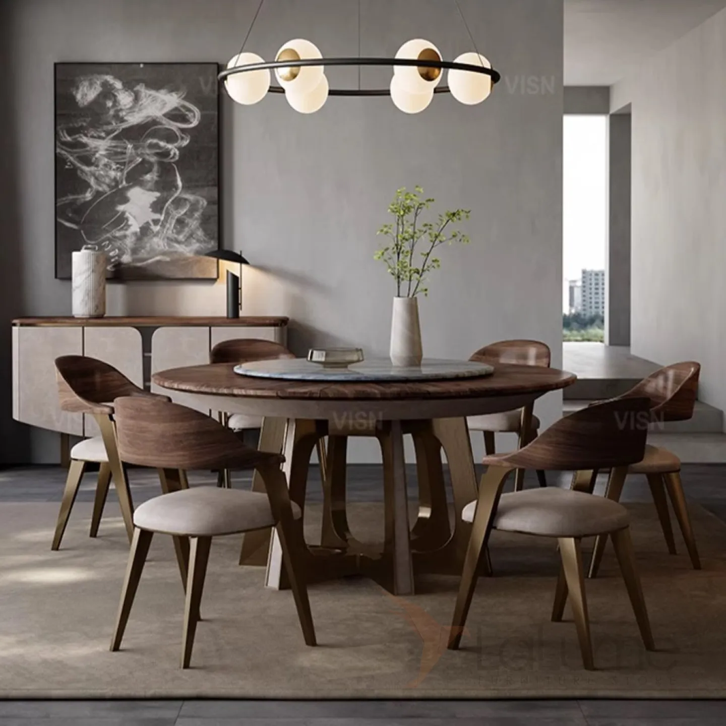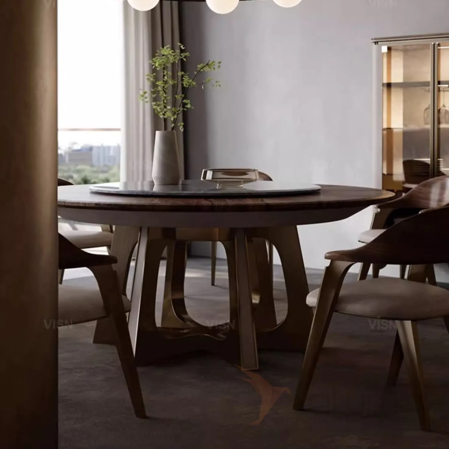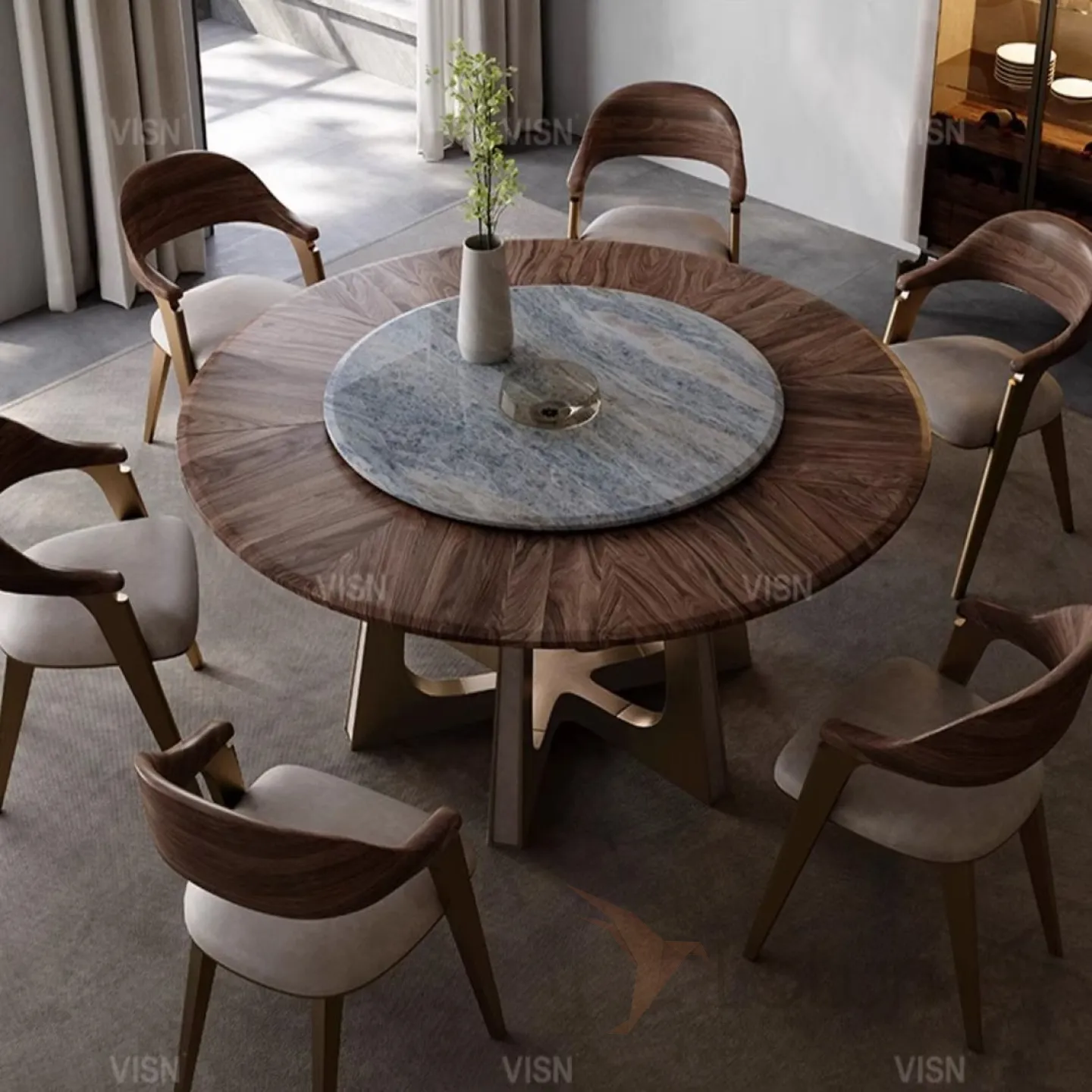 Круглый мраморный электрический обеденный стол LUXURY VISN 35872-29