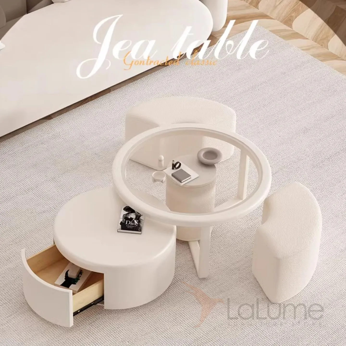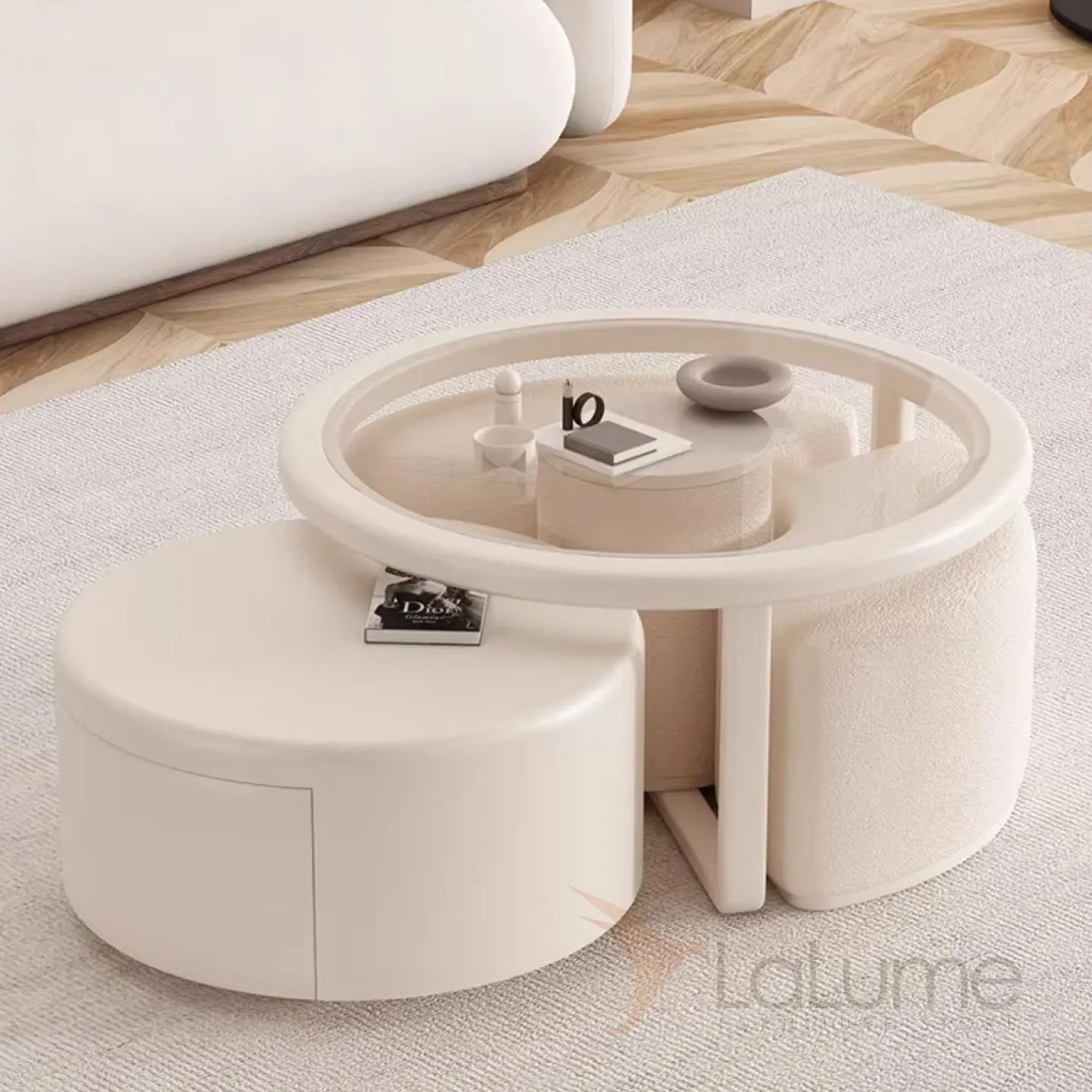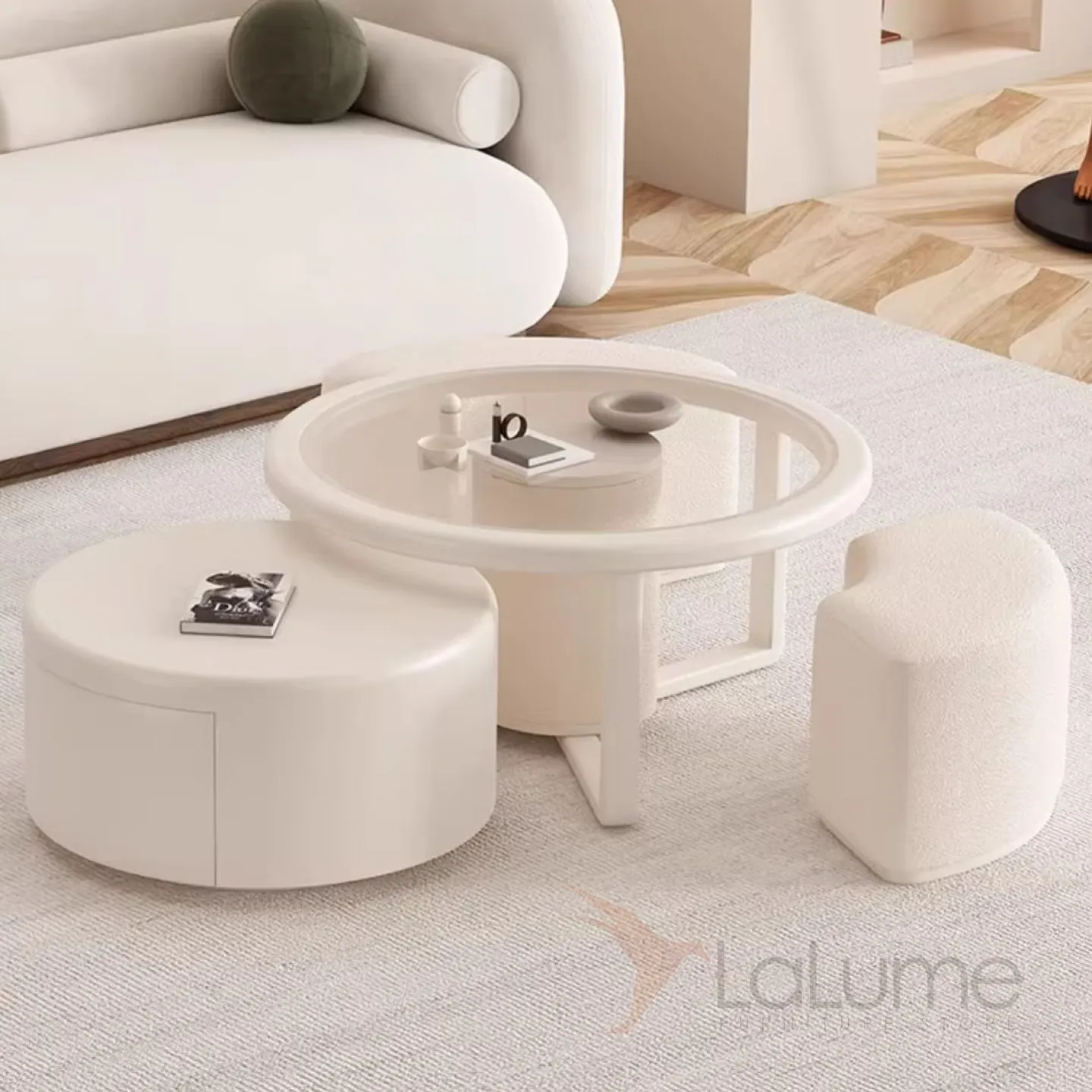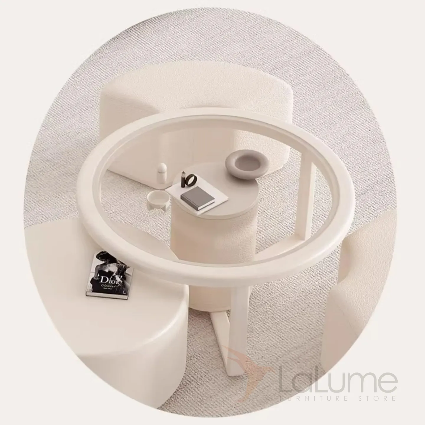 Круглый кремовый журнальный столик из массива дерева LanLan 35925-29