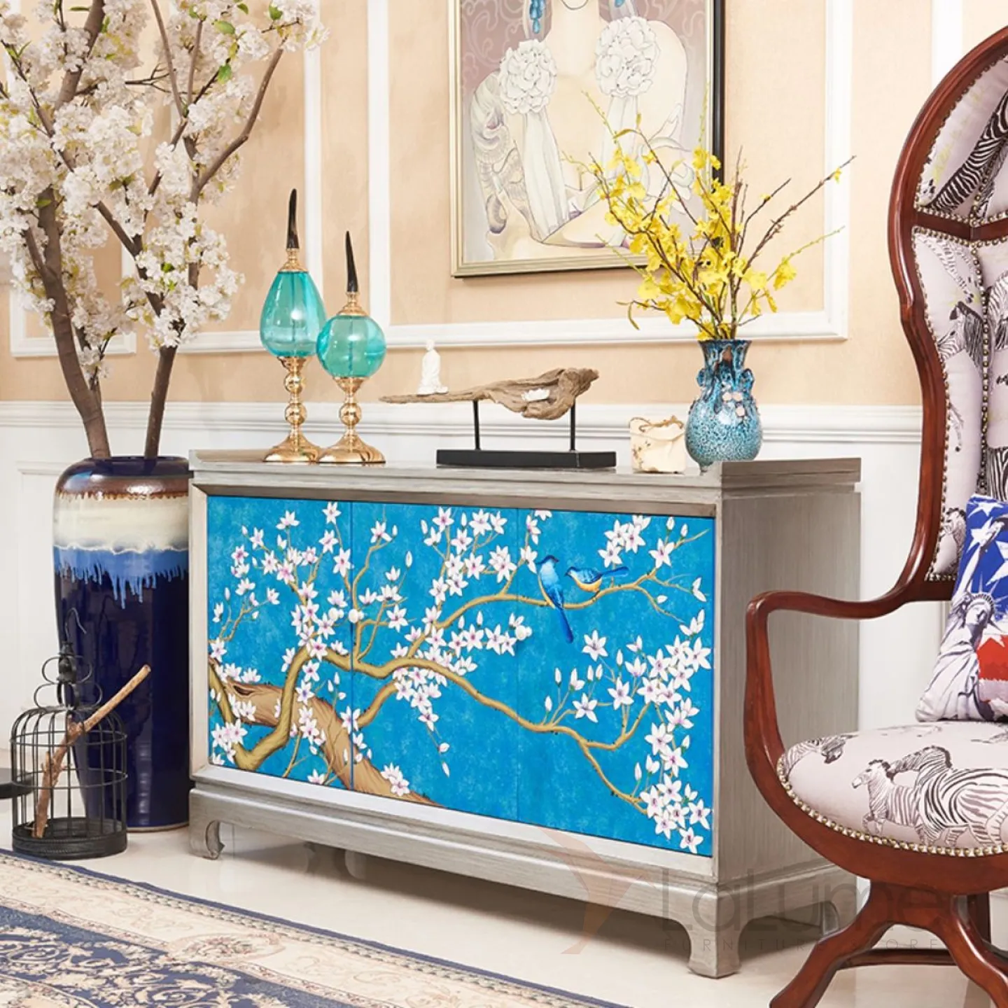 Роскошный расписной комод из массива дерева Creative Life 35993-29