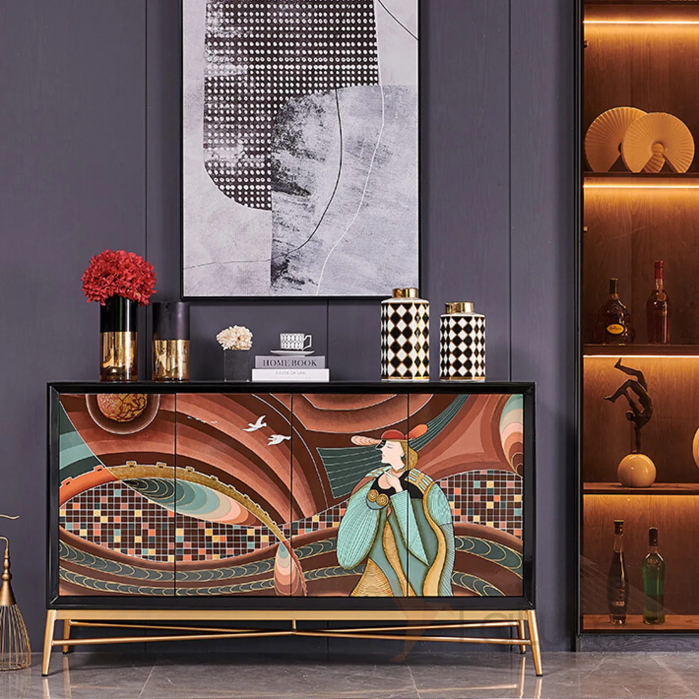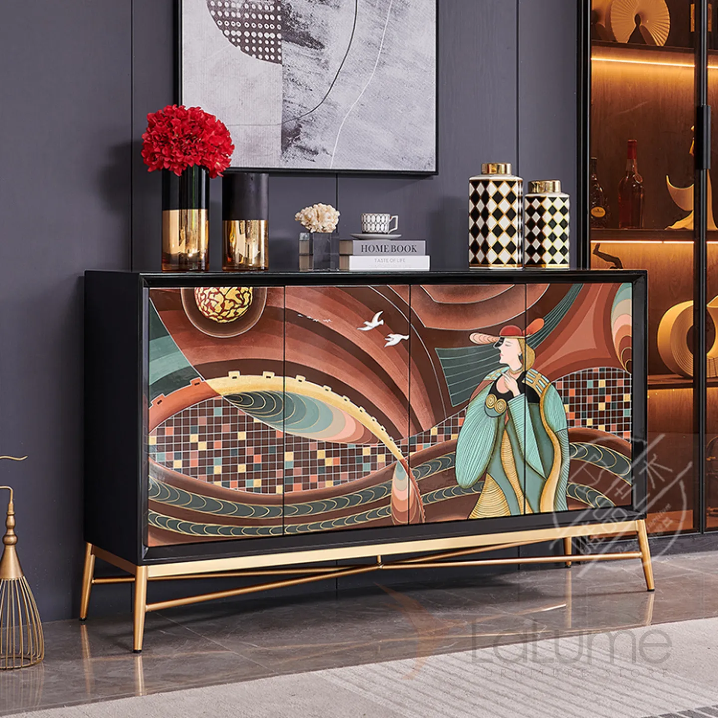 Роскошный расписной комод из массива дерева Creative Life 36005-29