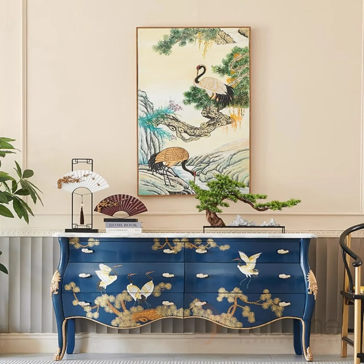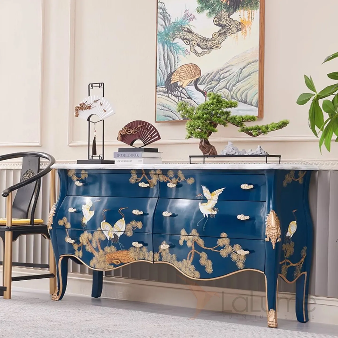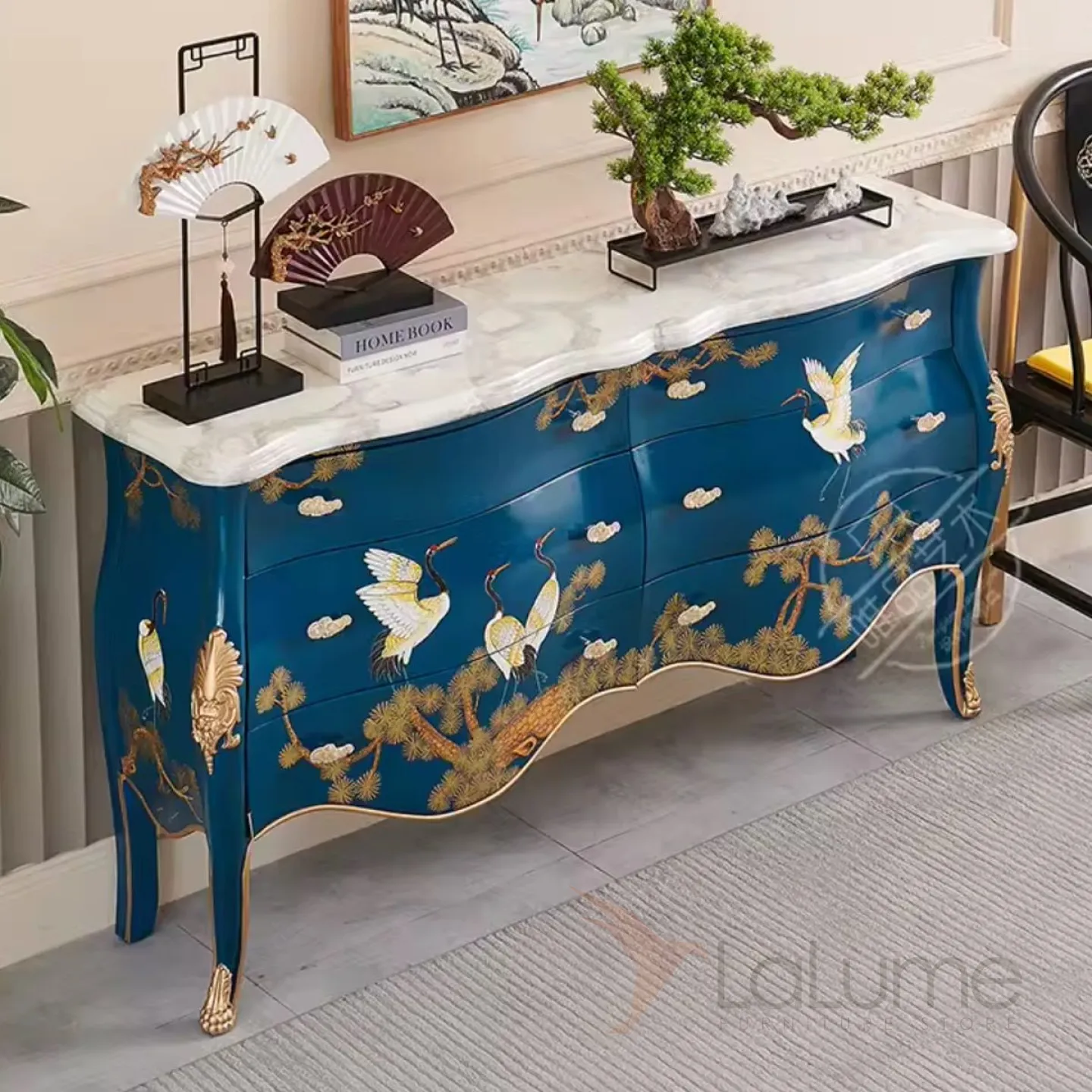 Расписной комод из массива дерева и мрамора Creative Life 36020-29