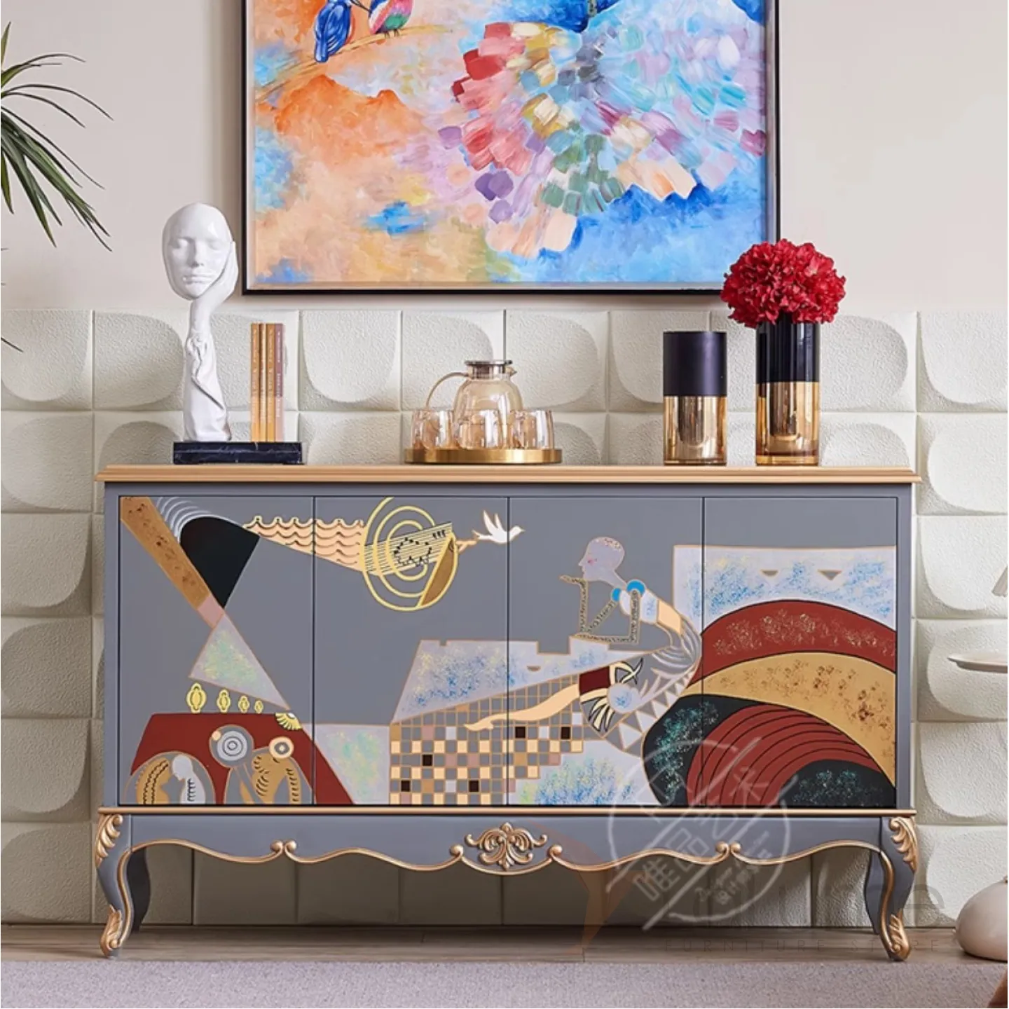 Роскошный расписной шкаф из массива дерева Creative Life 36021-29