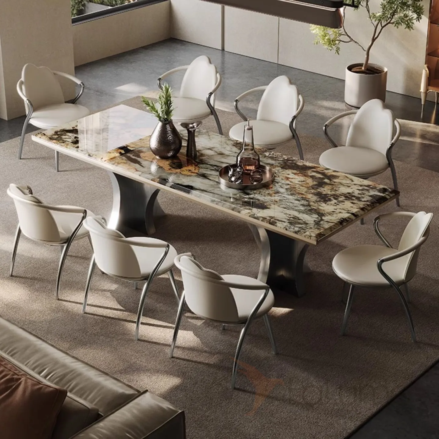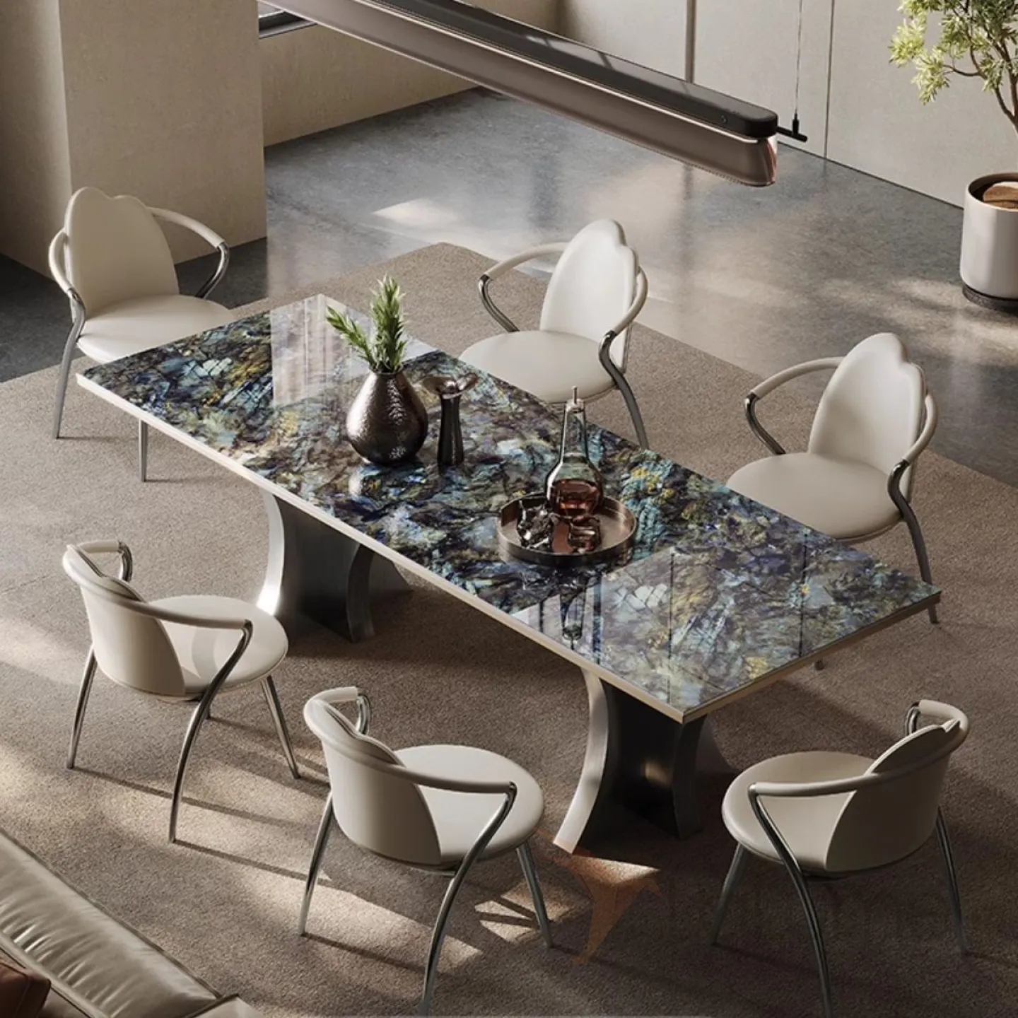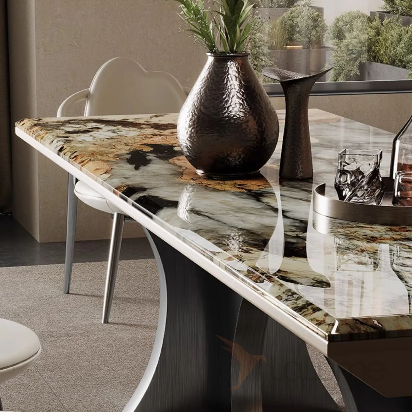 Роскошный каменный обеденный стол из нержавеющей стали BANG 36024-29