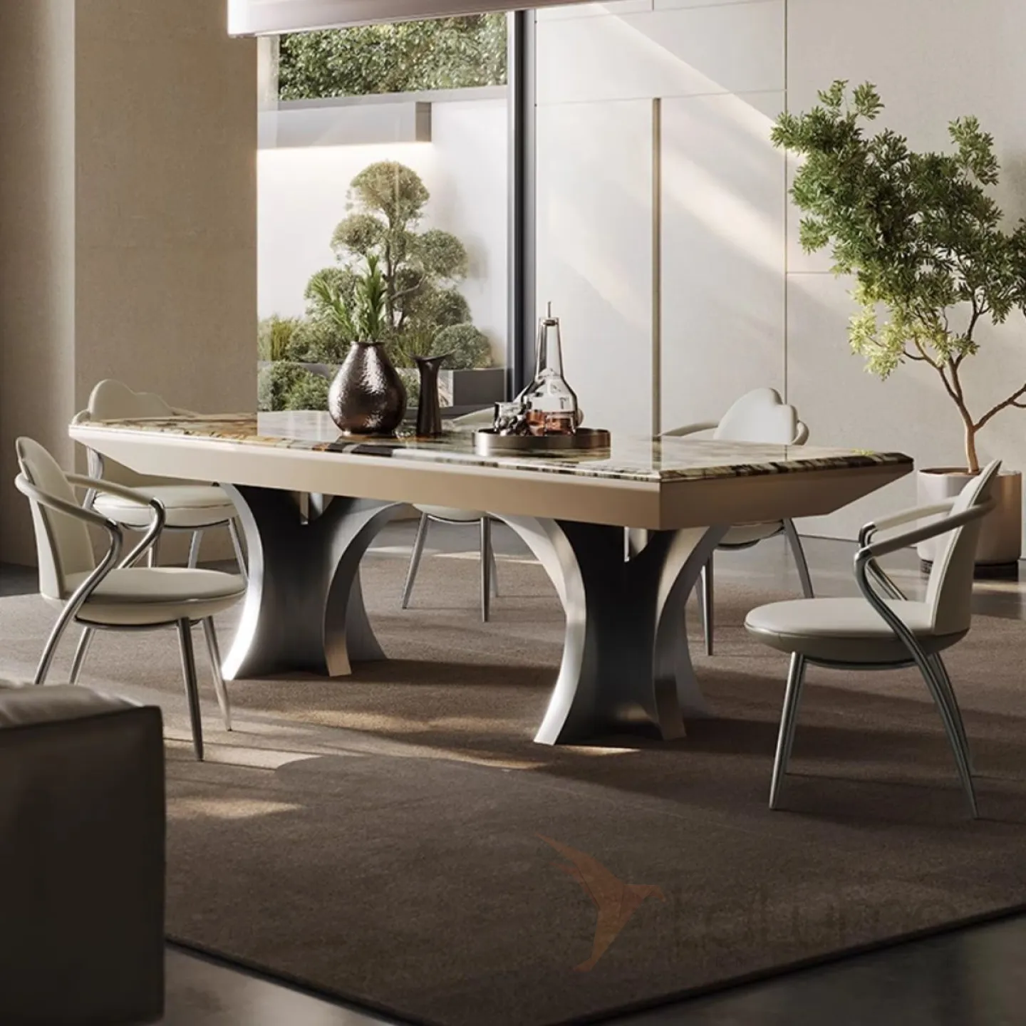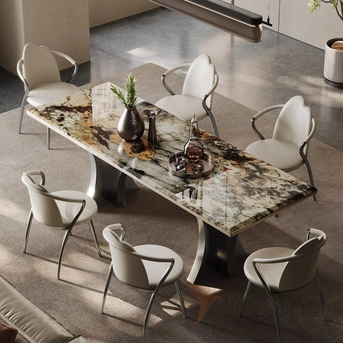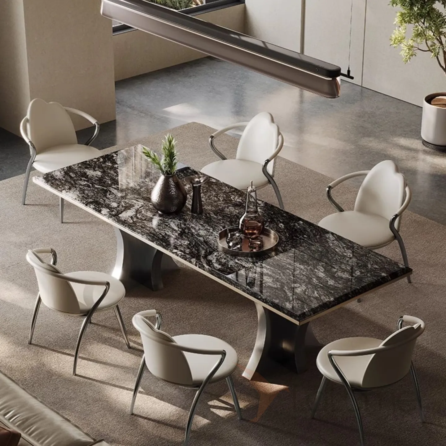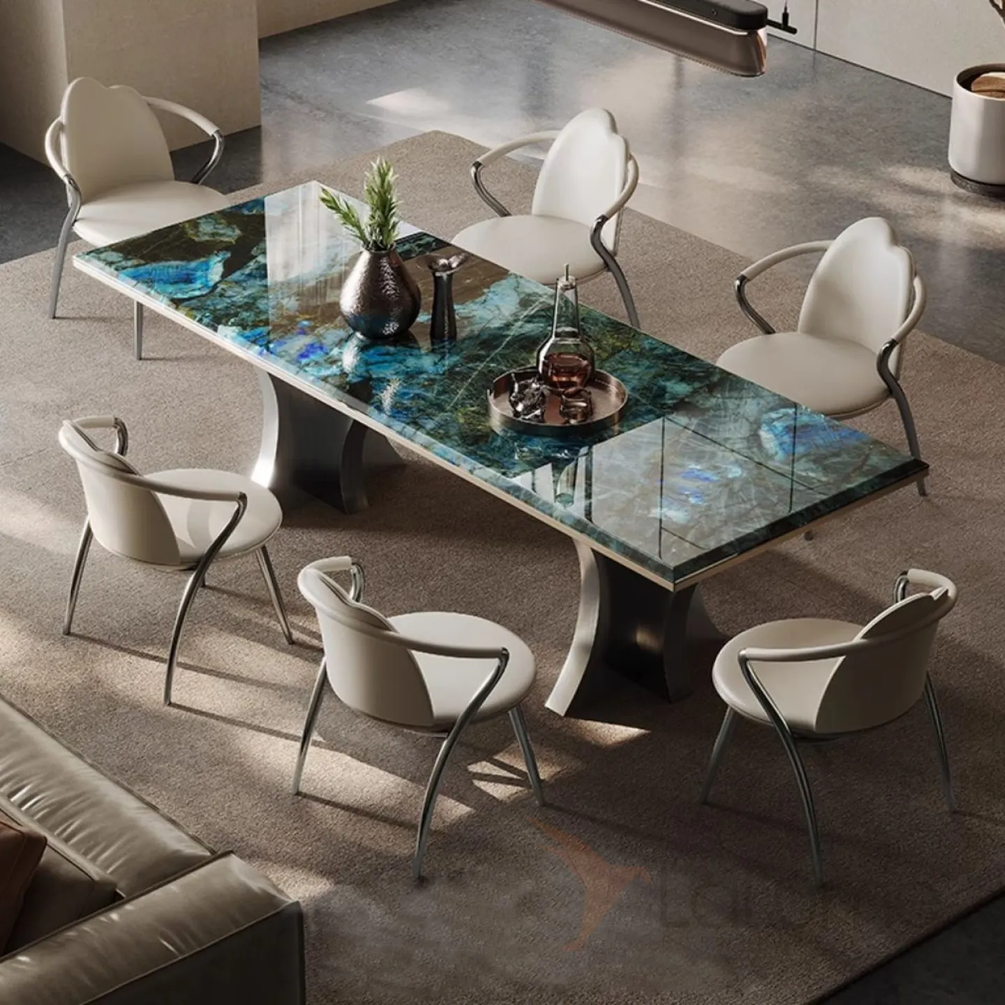 Роскошный каменный обеденный стол из нержавеющей стали BANG 36024-29