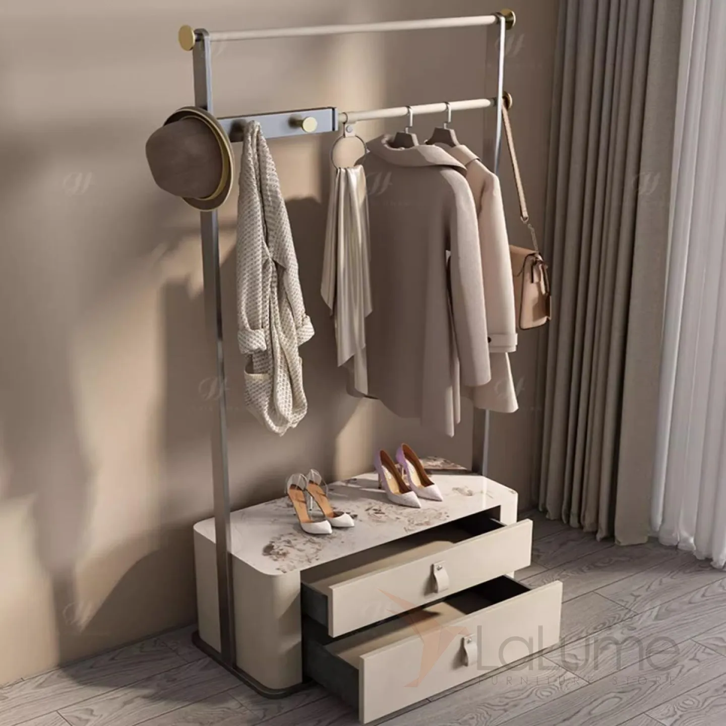 Легкая роскошная вешалка для одежды, комод с выдвижными ящиками HappyF 36528-29