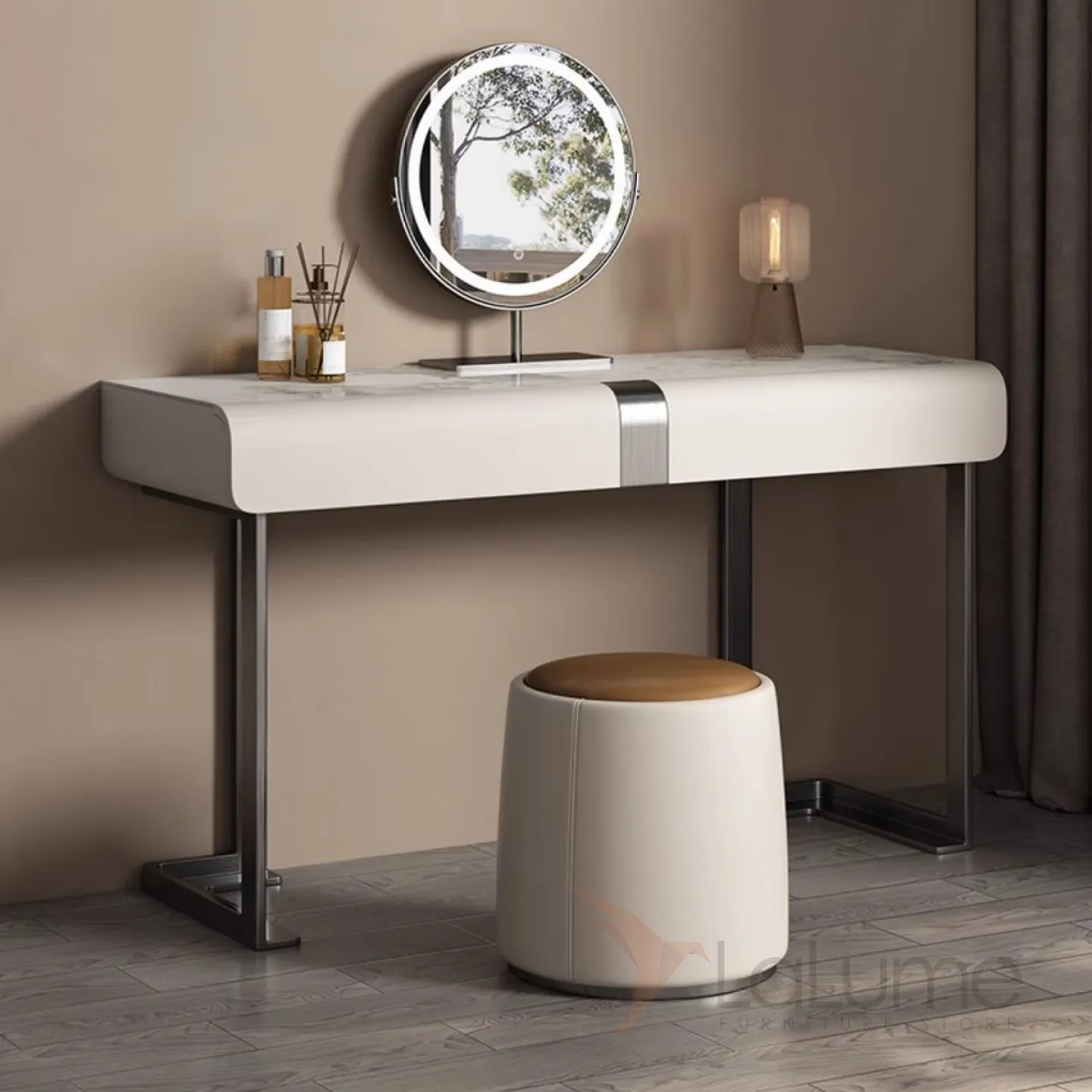 Дизайнерский туалетный столик из высококачественной кожи и нержавеющей стали HappyF 36557-29