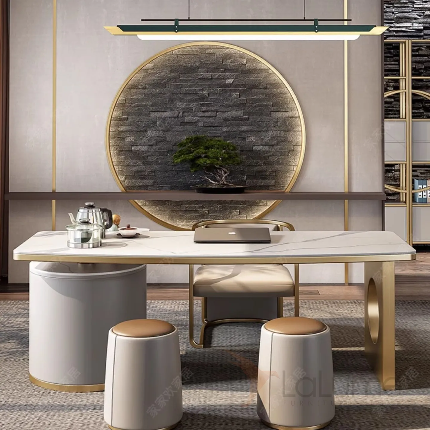 Чайный столик из натурального камня и нержавеющей стали HappyF 36575-29