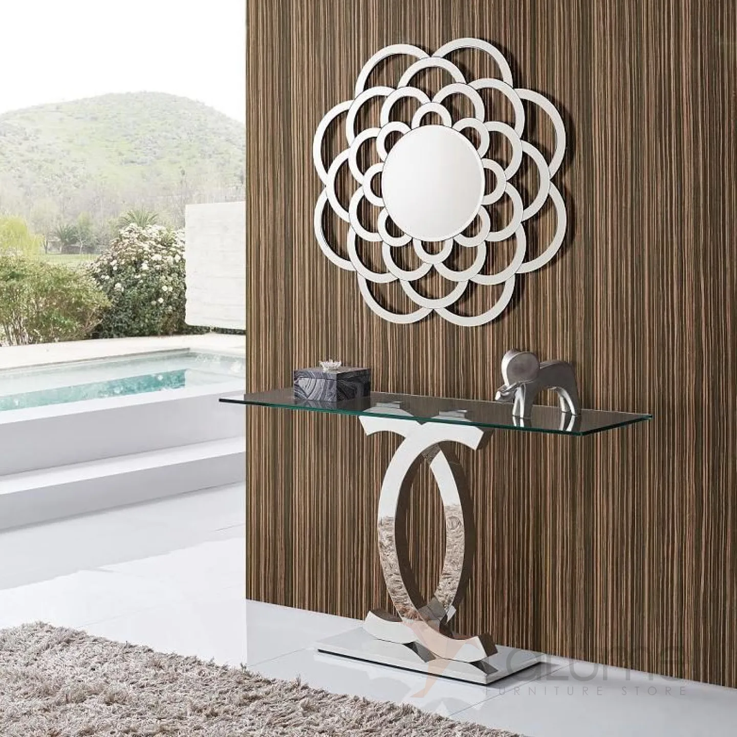 Хромированный металлл, каленое стекло.