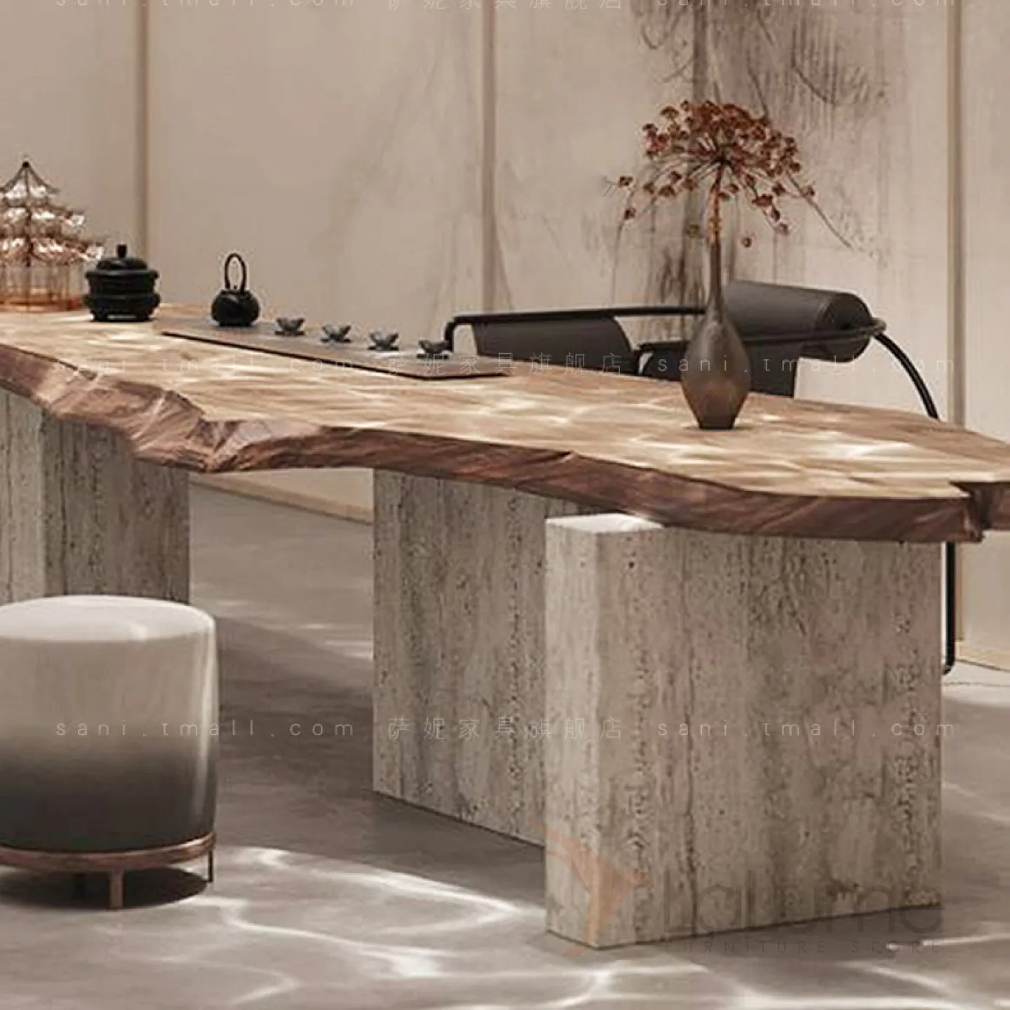 Необычный дизайнерский чайный столик в стиле Ваби-саби MAJESTIC 37311-29