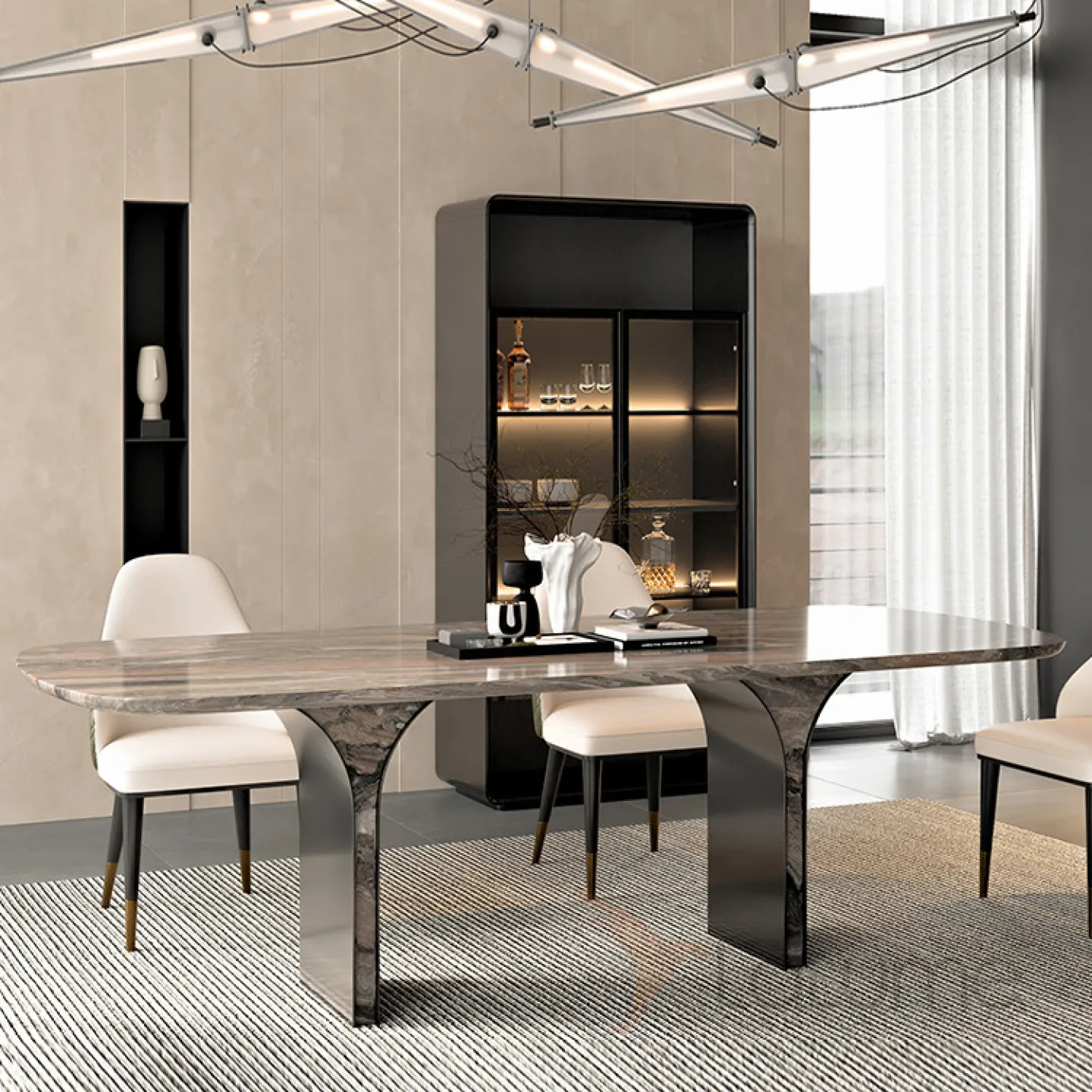 Легкий роскошный обеденный стол из натурального мрамора MSS 37374-29