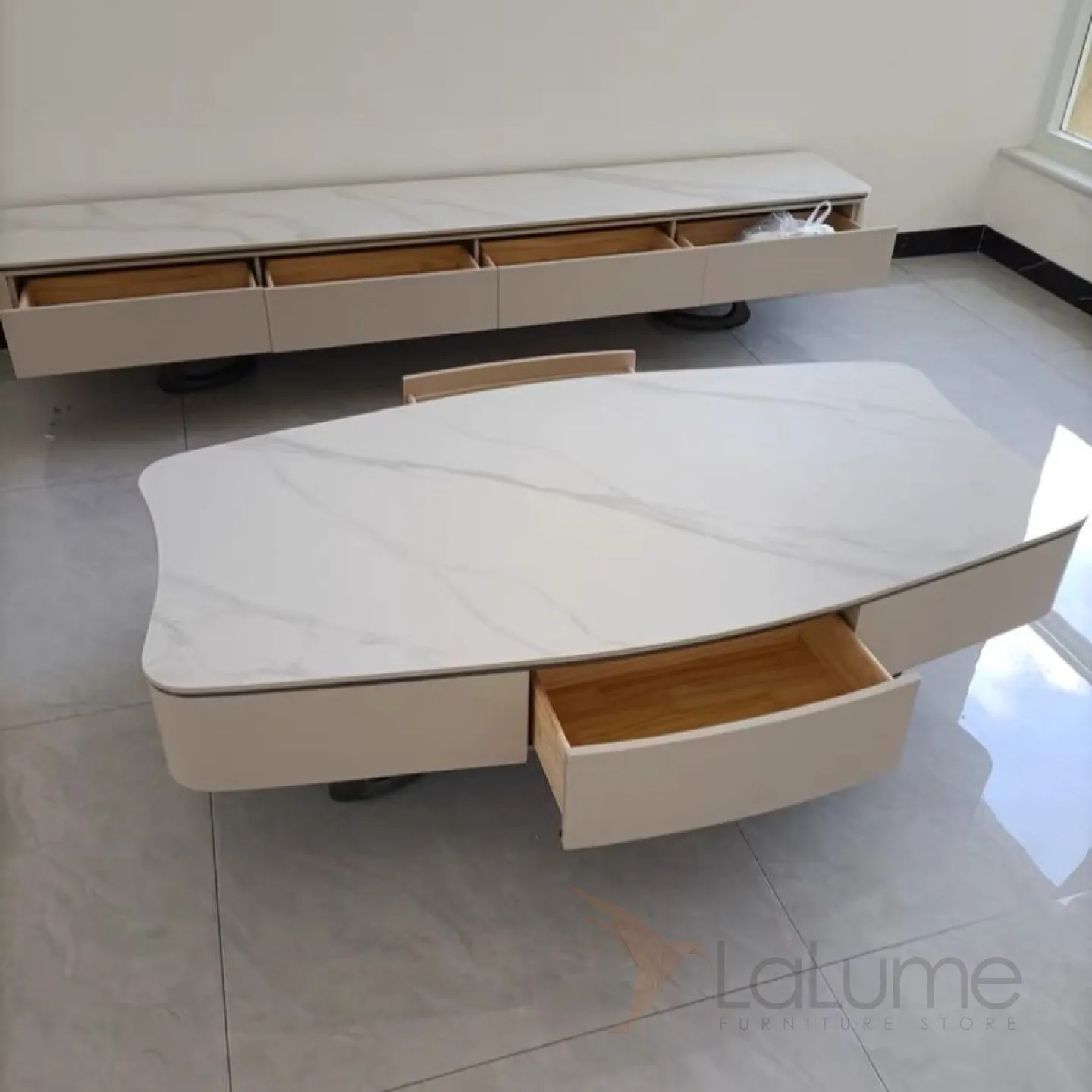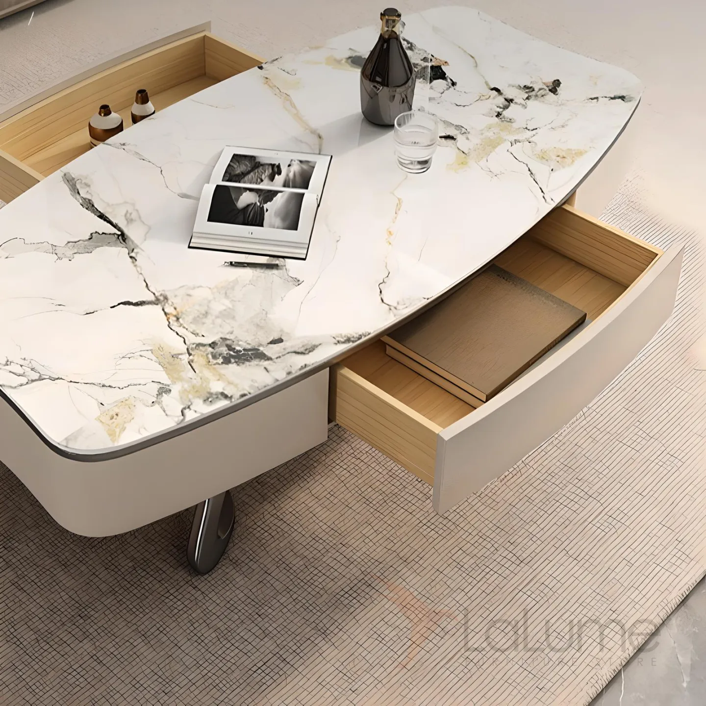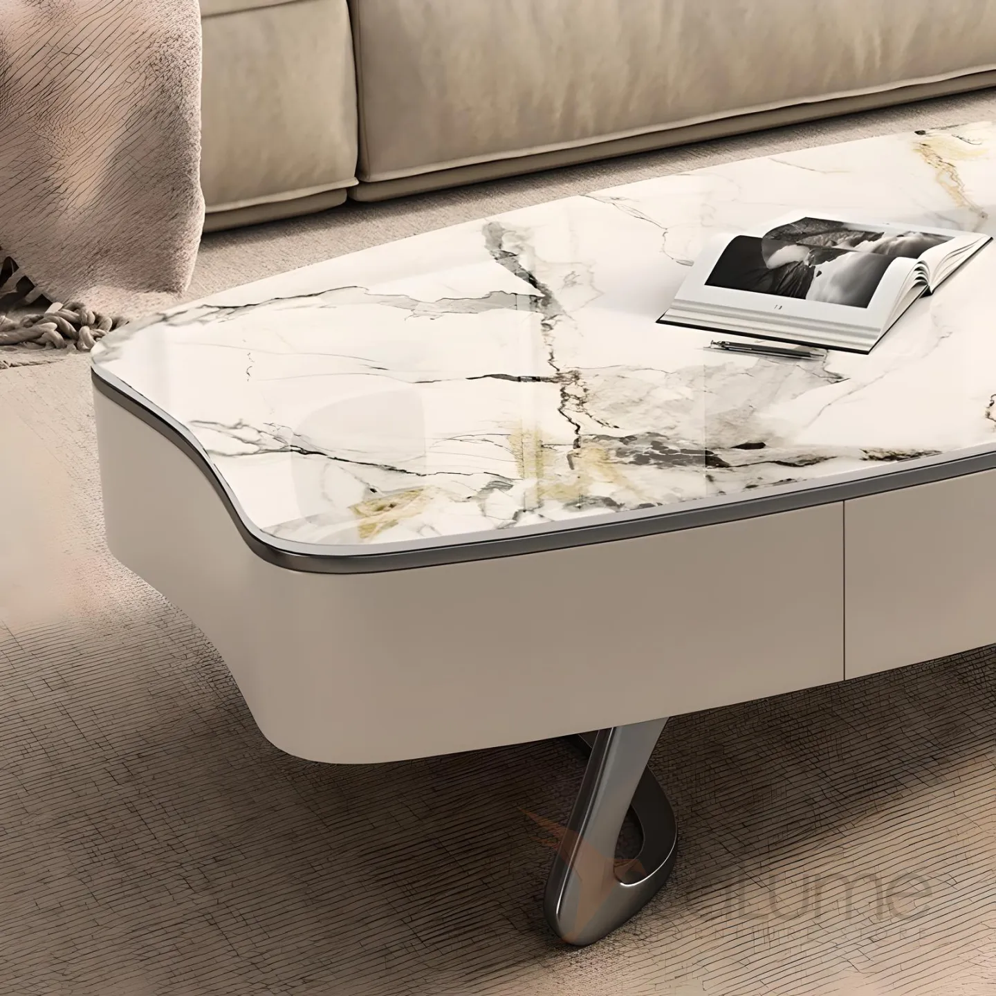 Кроме того, каменная плита, из которой сделан столик, обладает высокой устойчивостью к влаге и царапинам, что делает его идеальным выбором для использования в гостиной или спальне.