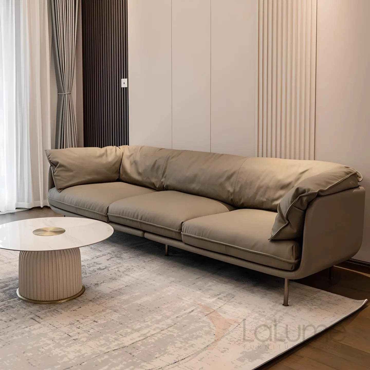 Итальянский кожаный диван Mizeo 37567-30 в минималистичном стиле