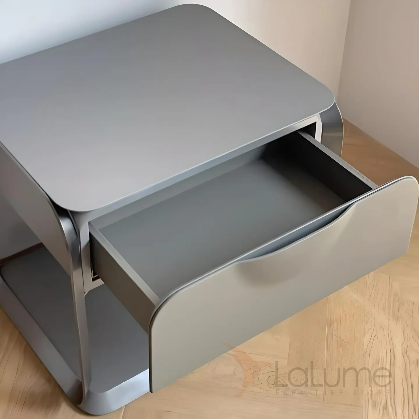 Тумба оснащена вместительным шкафчиком и полочкой снизу, где удобно хранить различные мелочи, такие как книги, журналы, косметику и другие предметы. Верхняя поверхность также может использоваться для размещения декоративных элементов или ночника.