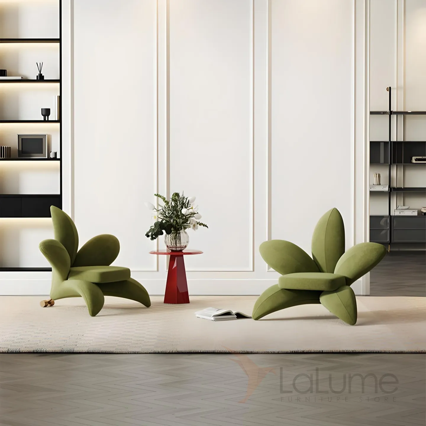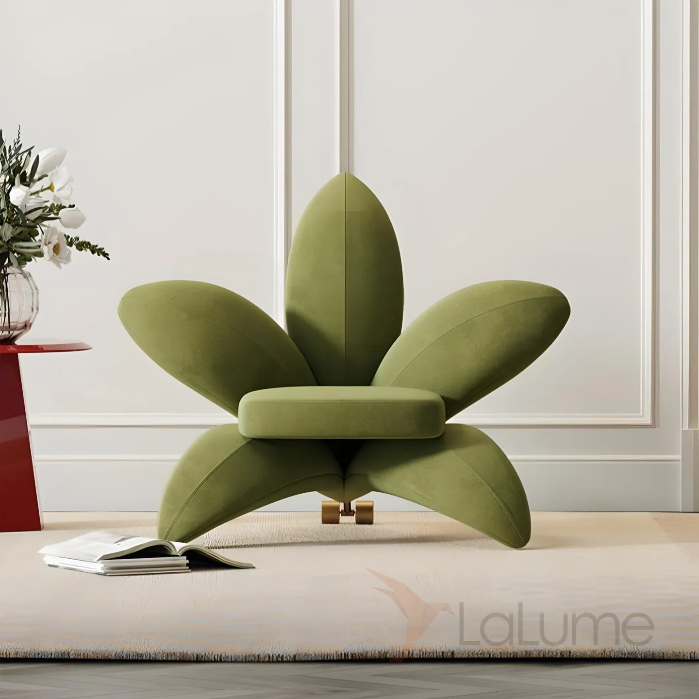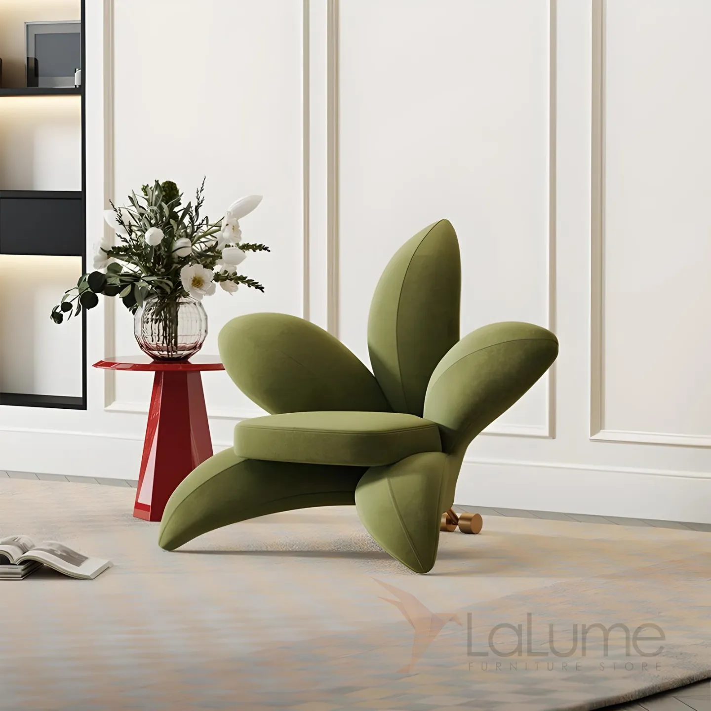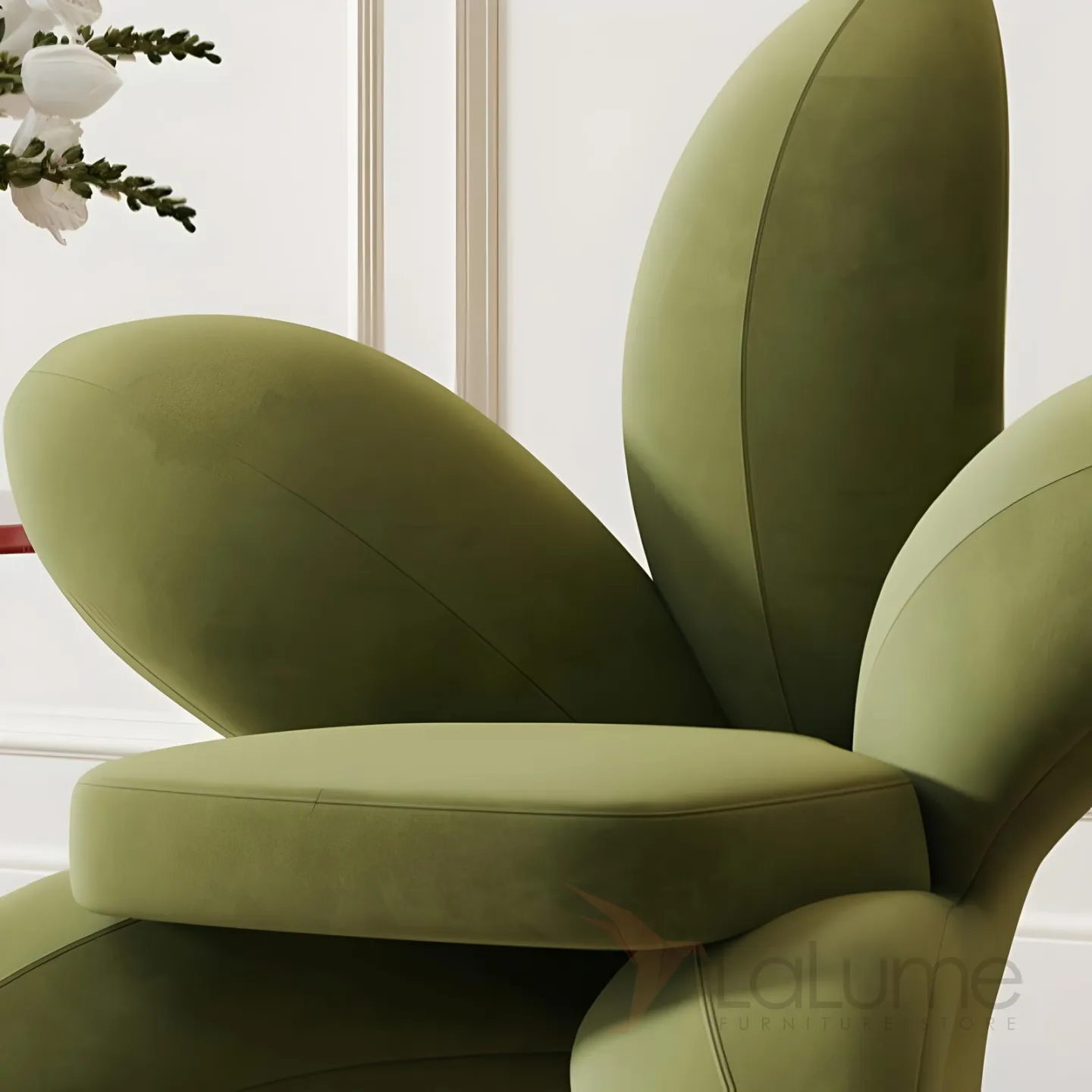 Цветочное кресло Mufandi 37651-30 — это воплощение элегантности и комфорта. Оно выполнено из высококачественного бархата зелёного цвета, который добавляет интерьеру тепла.