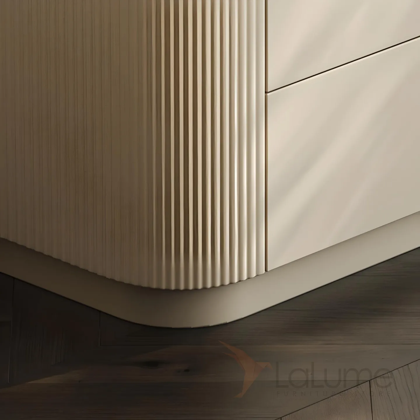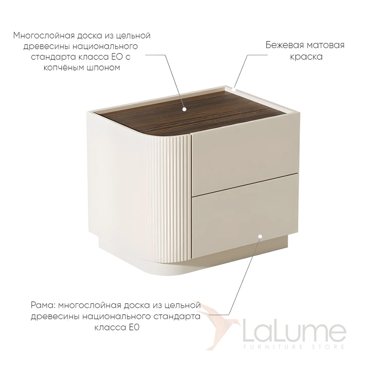 Тумба имеет прямоугольную форму и выполнена из массива дерева, что придает ему прочность и долговечность. Элегантный бежевый цвет, подчеркивает её оригинальный дизайн.