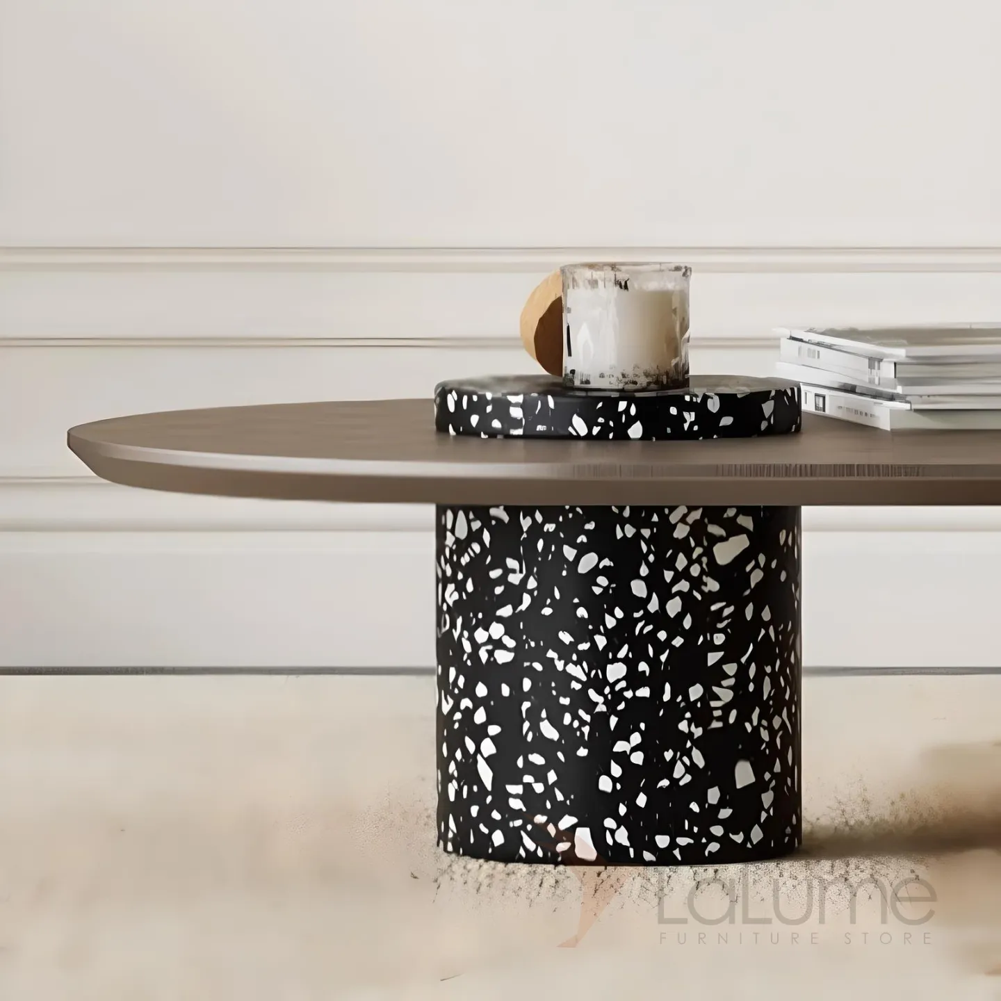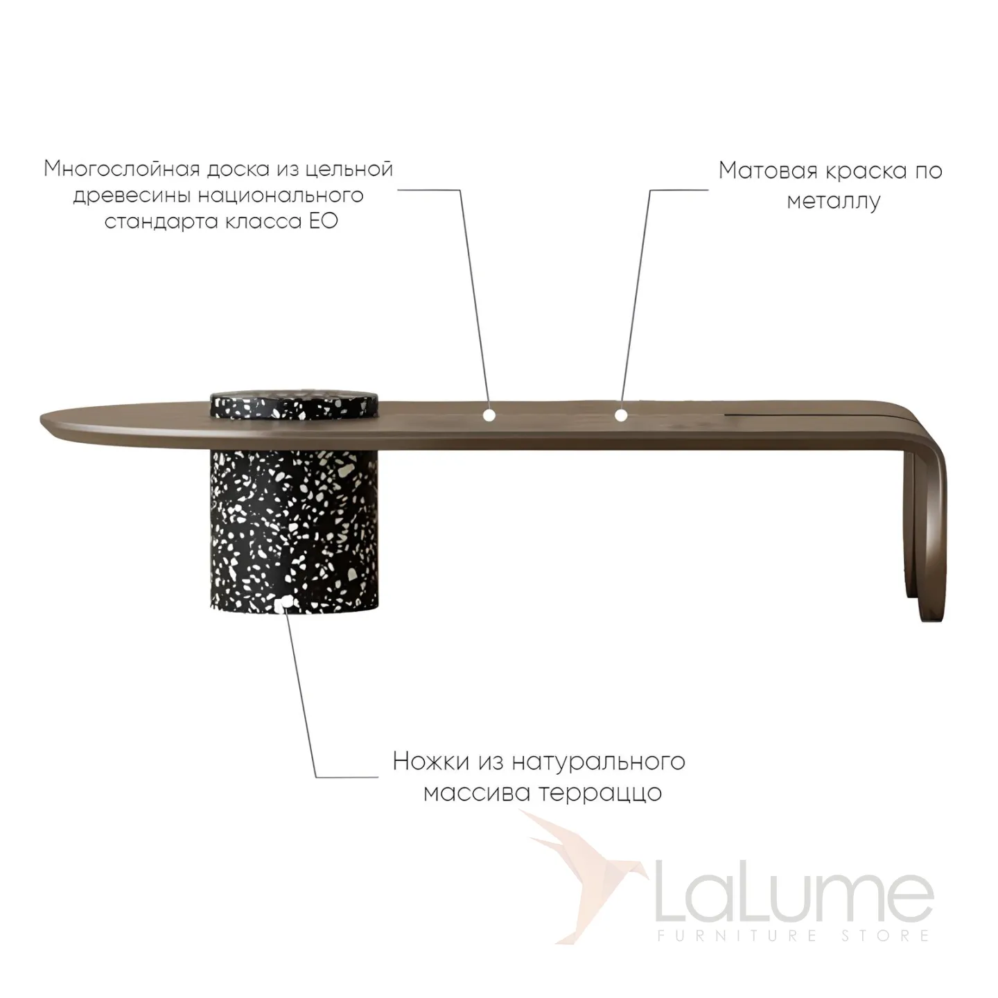 Материалы, из которых изготовлен столик, отличаются высоким качеством и долговечностью. Массив дерева обеспечивает прочность и надежность конструкции, а массив терраццо придает оригинальный внешний вид.