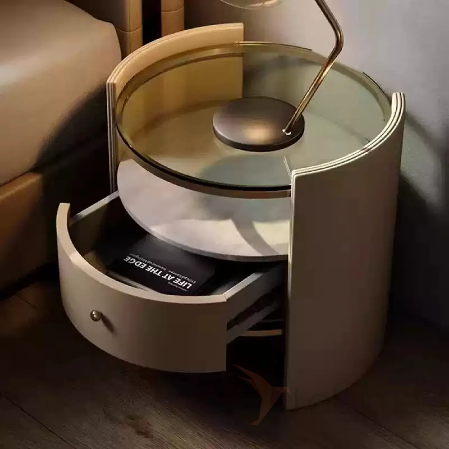 Прикроватная тумба из массива дерева с мраморной и стеклянной столешницей. В выдвижном ящике удобно хранить вещи.