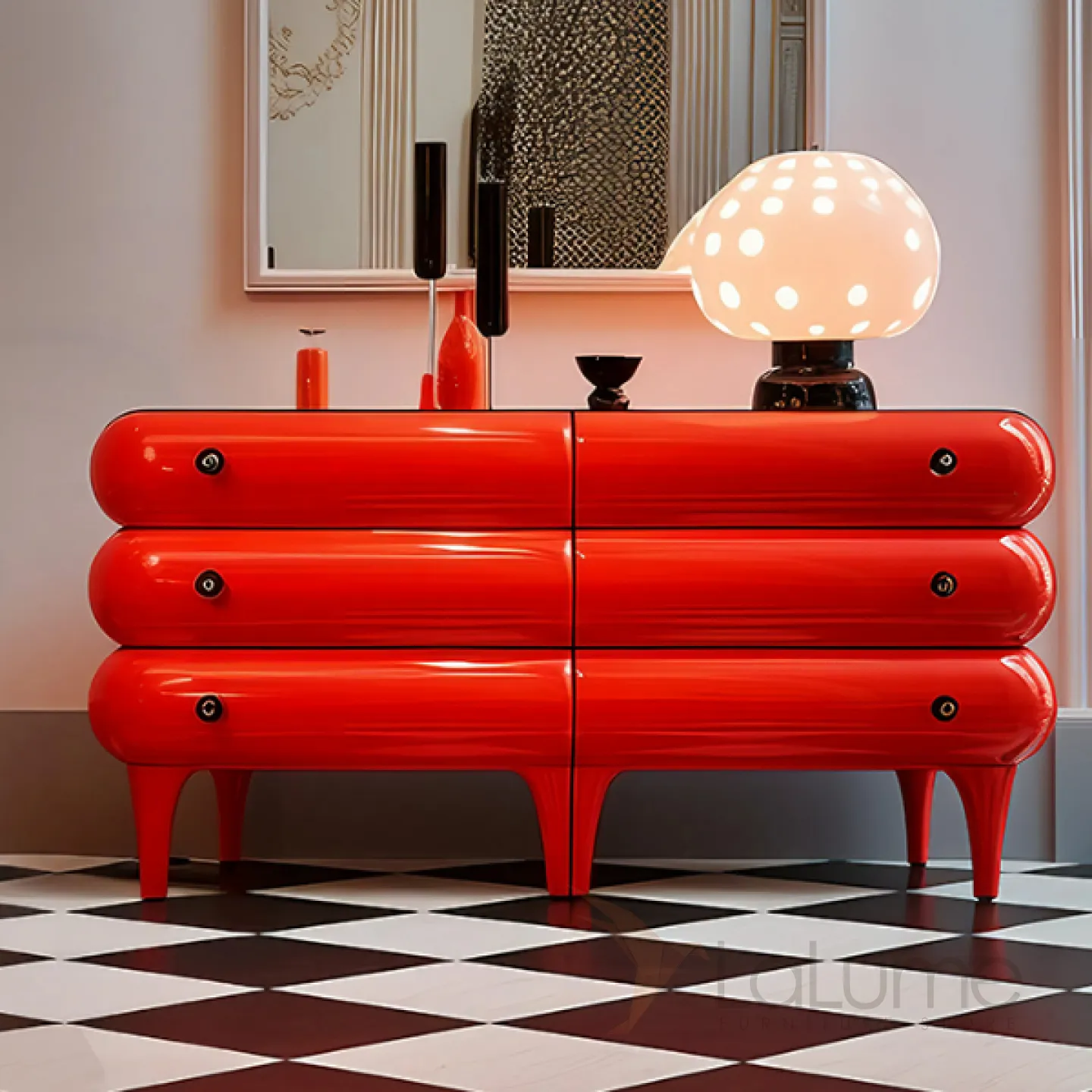 Стильный и оригинальный буфет, выполненный из высококачественной древесины, станет настоящим украшением вашего интерьера. Его яркий красный цвет и плавные линии привлекут внимание и добавят изюминку в обстановку. Буфет оснащён шестью выдвижными ящиками, что делает его ещё более практичным и удобным в использовании.