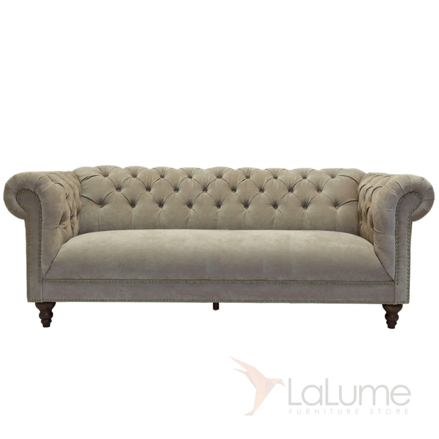 Диван велюровый бежевый трехместный Button Beige от LaLume