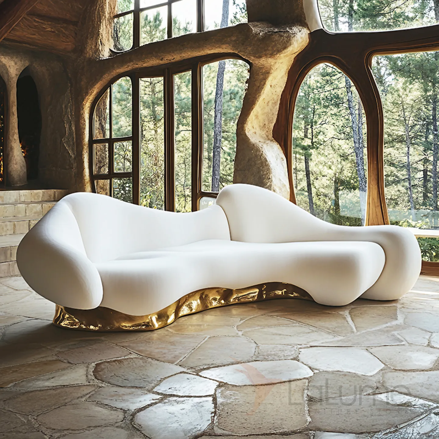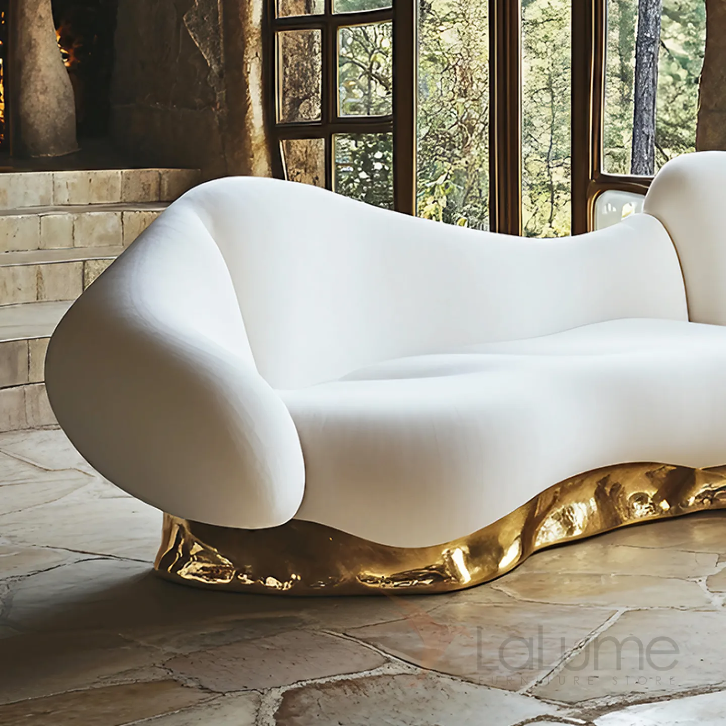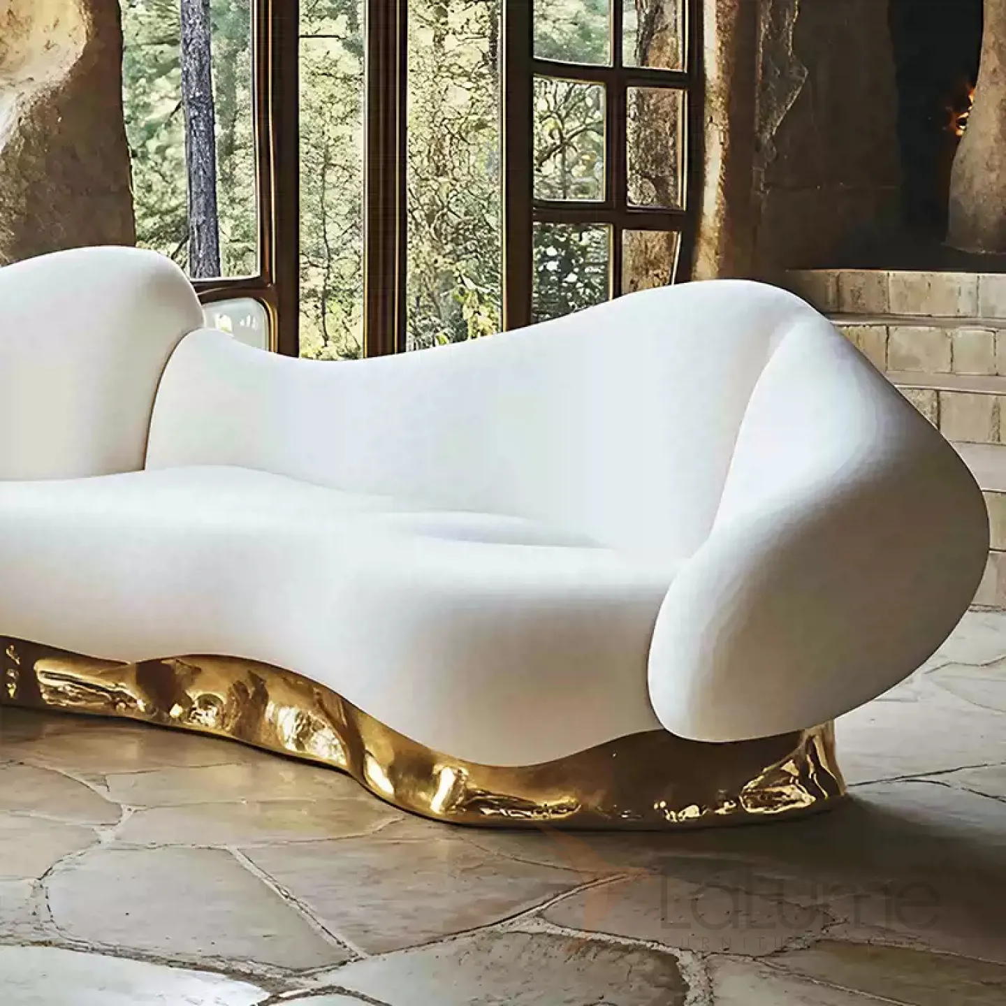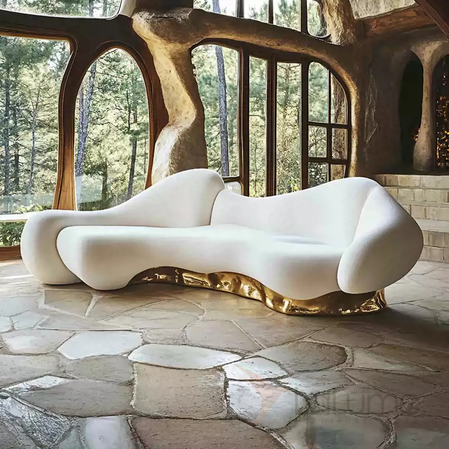 Диван, который станет центром притяжения в вашей гостиной, отличается утончённым дизайном. Его плавные линии и изящные изгибы придают ему особую элегантность. Сочетание белого и золотого оттенков в отделке создаёт атмосферу роскоши.