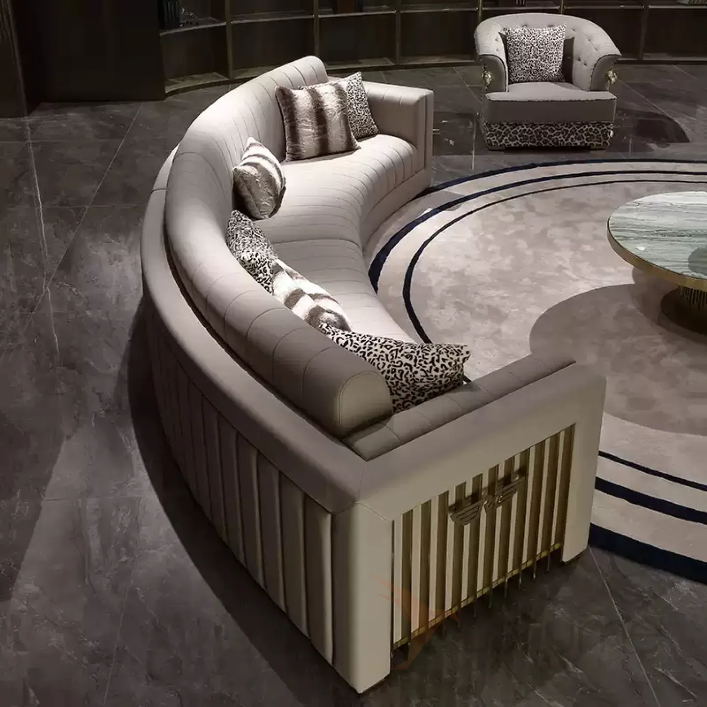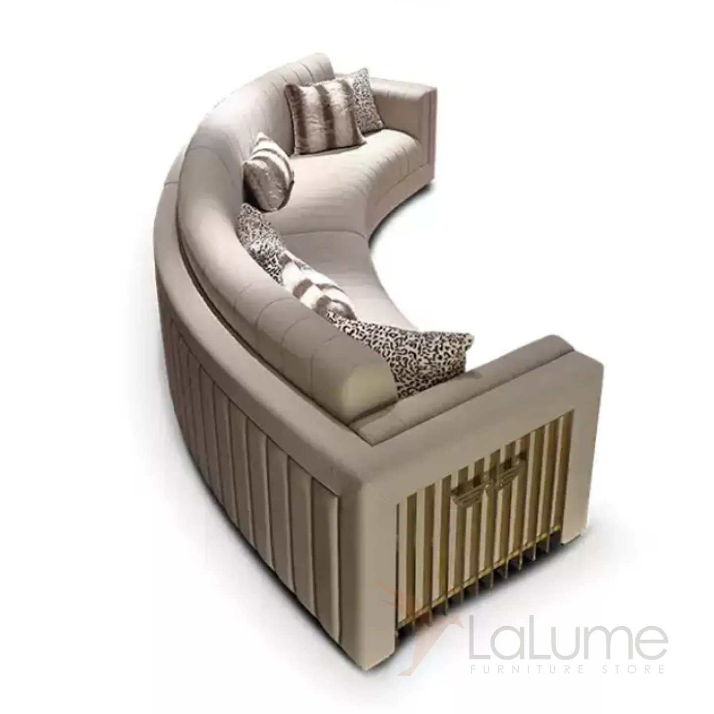 Уникальный диван в форме дуги, изготовленный из натуральной воловьей кожи и красного дерева, станет великолепным украшением вашего интерьера. Его удобная спинка и сиденье подарят вам наслаждение после напряженного рабочего дня.
