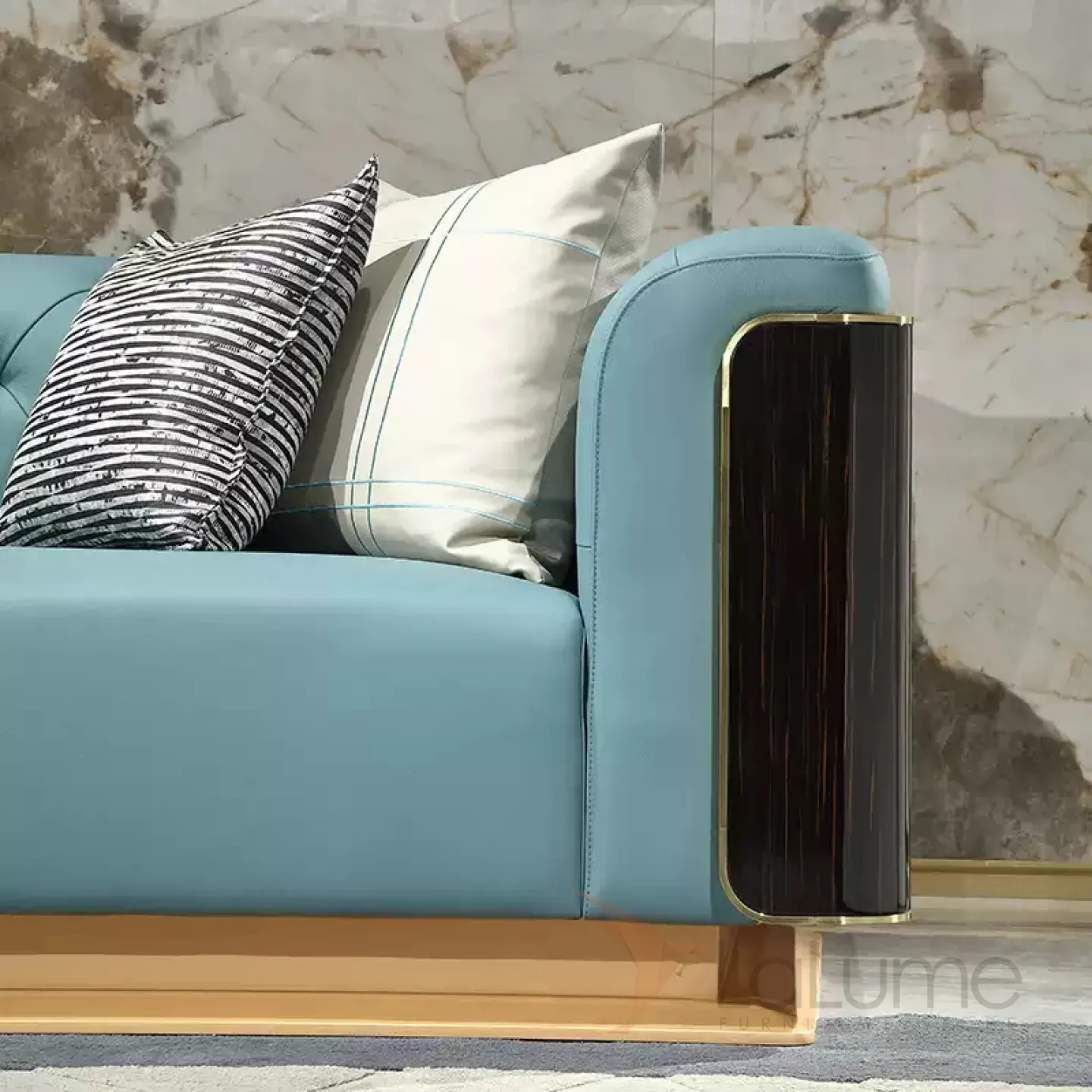 Диван, выполненный из натуральной кожи и украшенный высококачественным шпоном красного дерева, станет украшением вашего дома. Изысканные золотистые элементы придают ему роскошный и оригинальный вид. Эргономичный дизайн дивана обеспечивает максимальный комфорт, а в комплекте идут подушки, которые сделают ваш отдых ещё более приятным. Вы можете выбрать модель на 2, 3 или 4 места в зависимости от ваших потребностей.